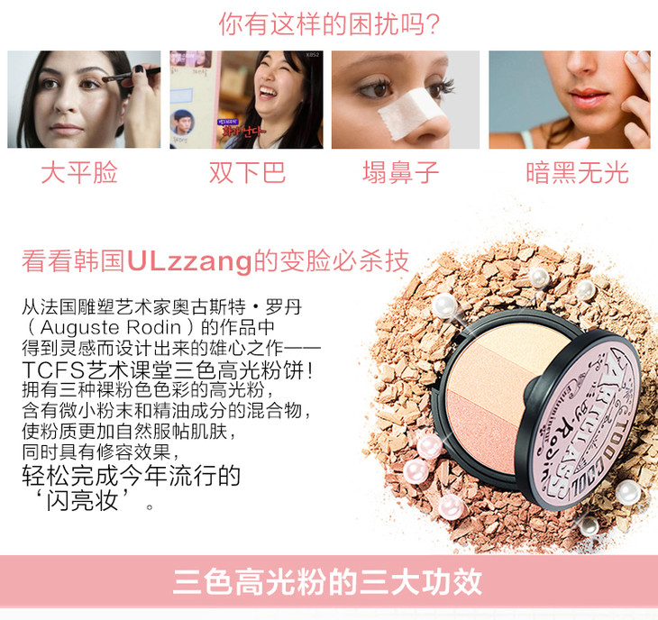 韩国专柜too cool for school三色阴影粉修容高光粉9.5g 鼻影侧影!🌸不幹硬 不暗淡 輕盈感保濕可以提亮肤色 鼻子 发际线部位🎉透明度高 光滑塑造自然肌肤,🔥让脸部看起来更小 ,更有轮廓想要脸庞精致轮廓分明立体,🌺怎么能少了它!塑造完美鵝蛋臉!