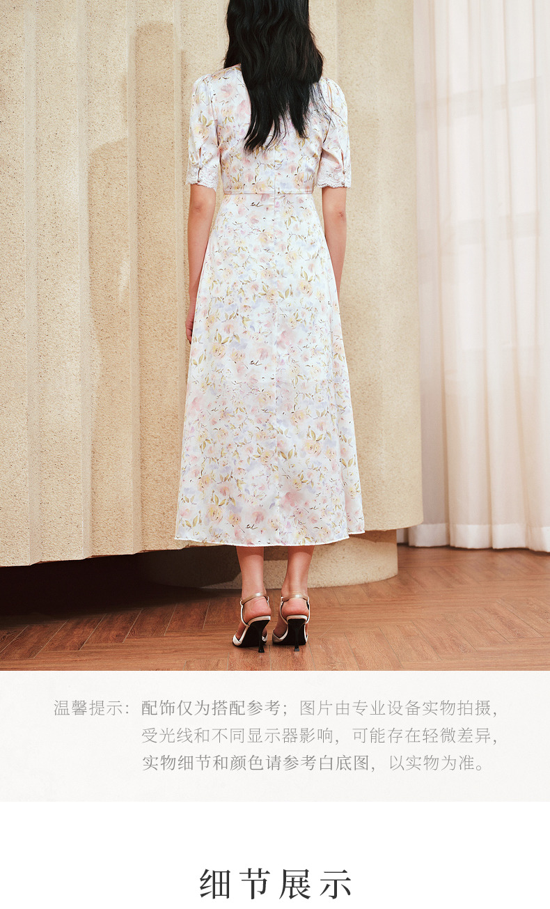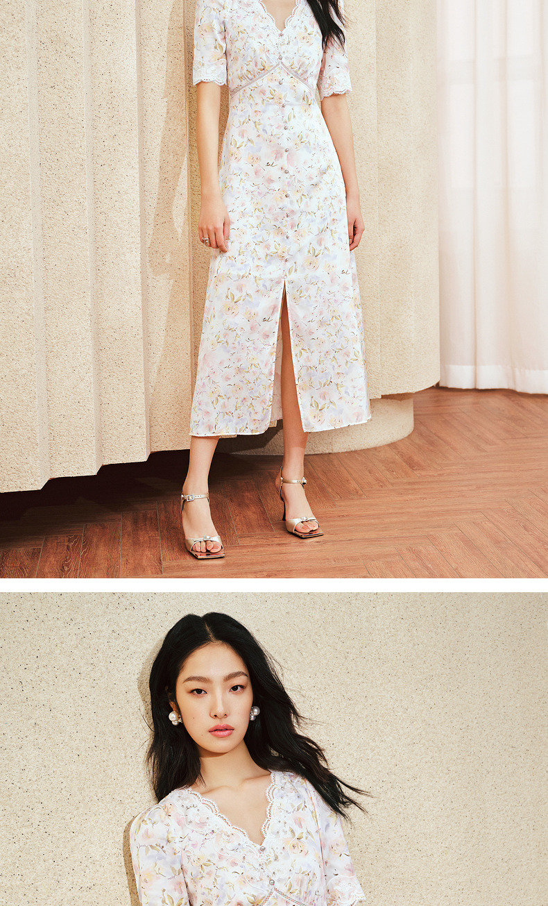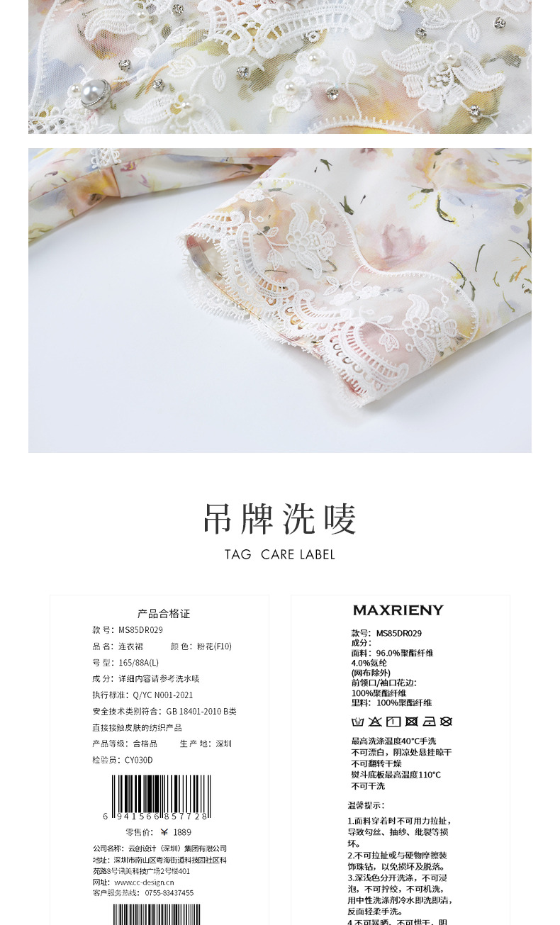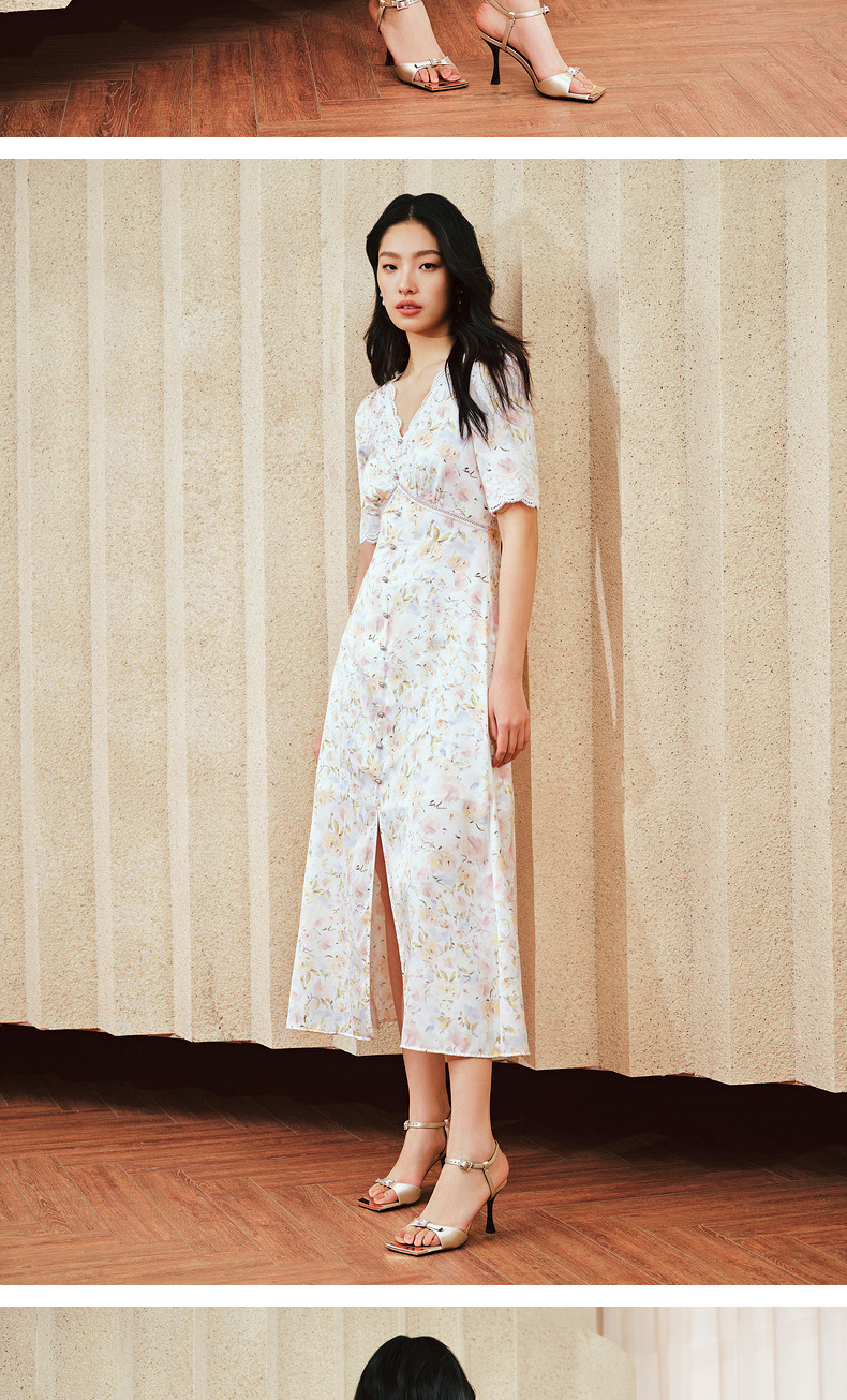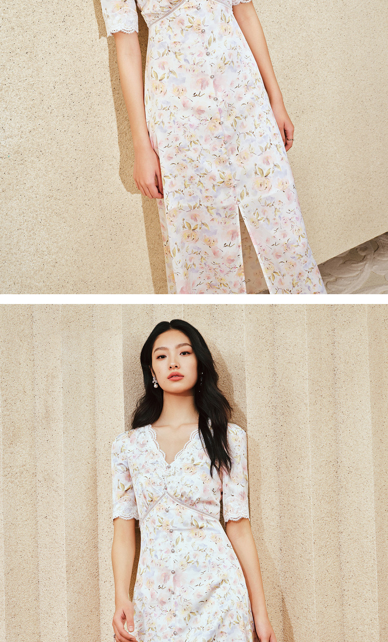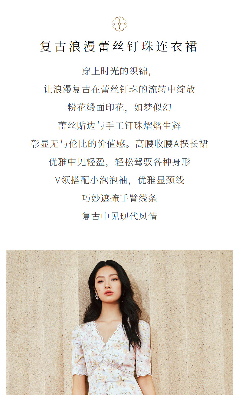 MAXRIENY浪漫复古氛围感蕾丝钉珠连衣裙2024夏季新款V领开叉长裙(货号:MS85DR029)