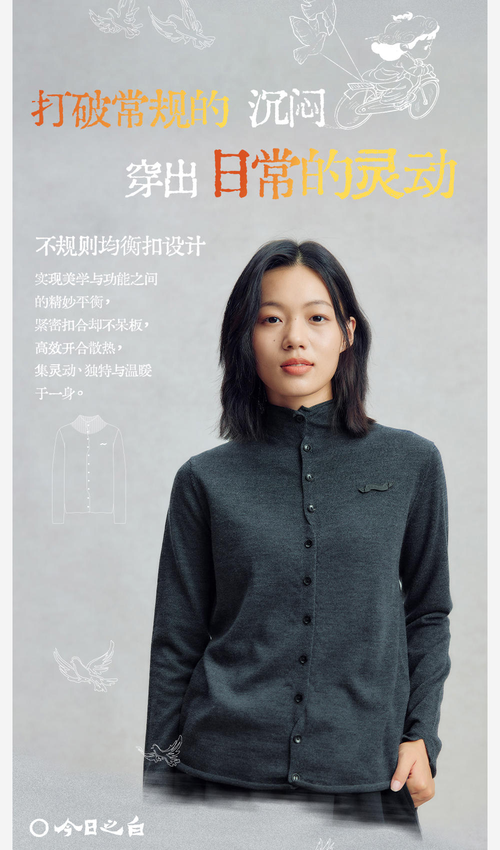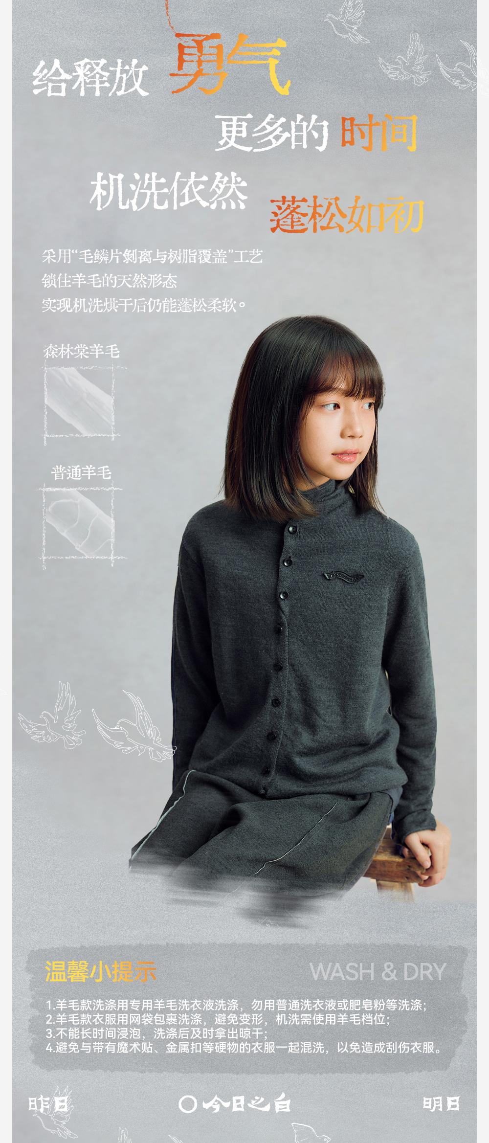 【今日之白系列】森林棠26新款儿童美利奴亲肤吸湿纽扣立领羊毛开衫60625303