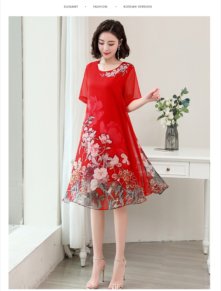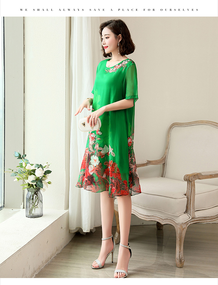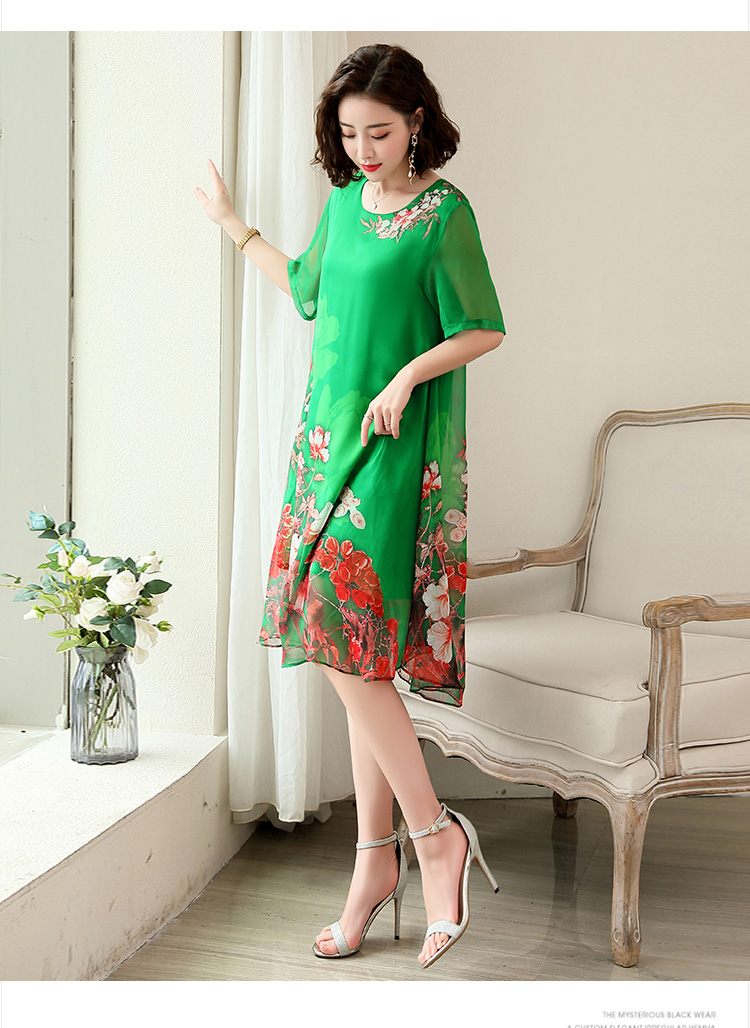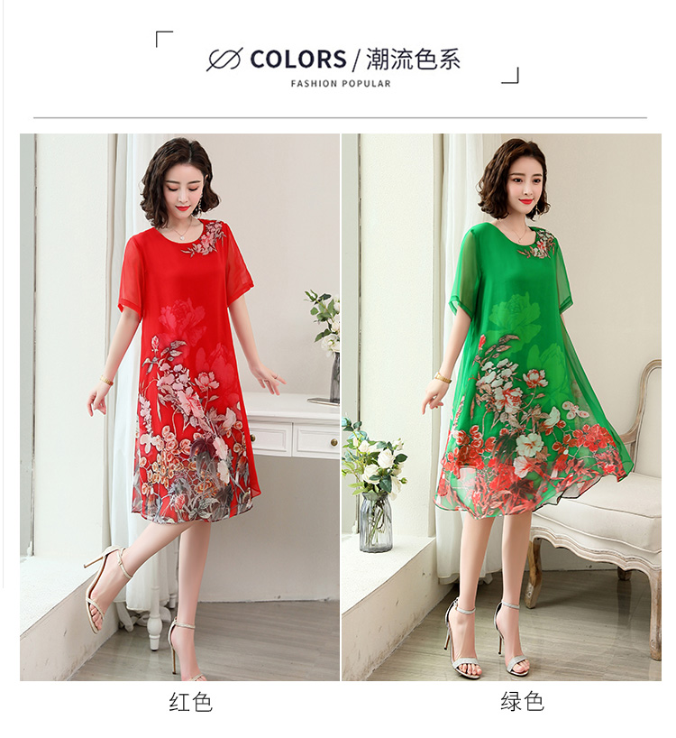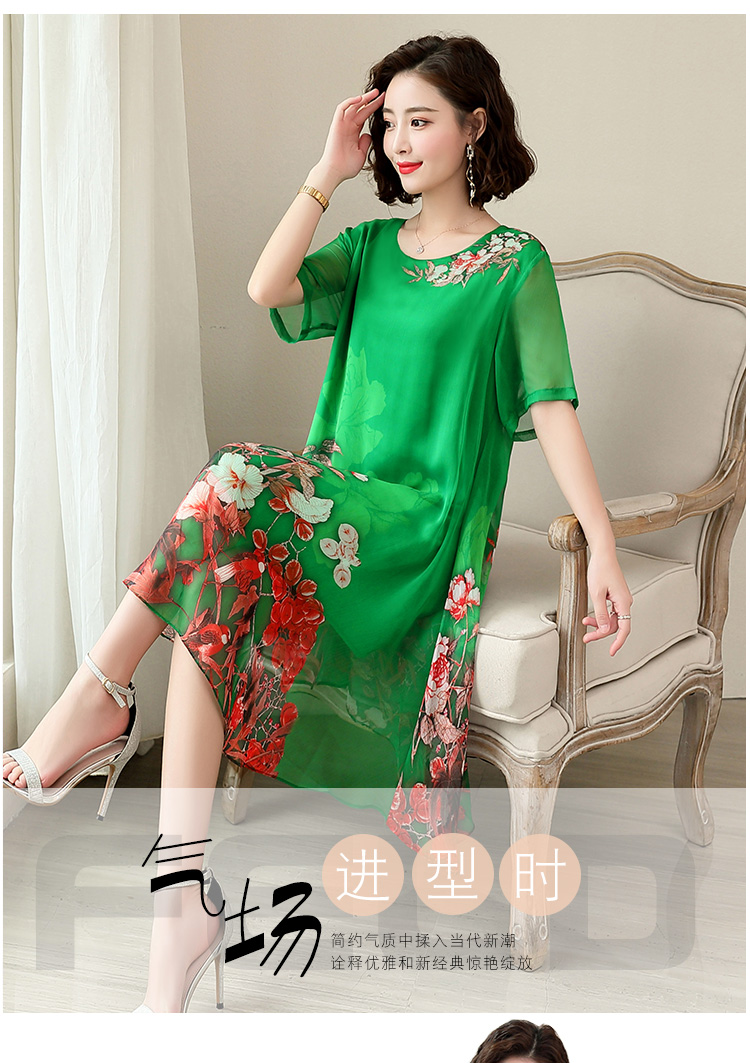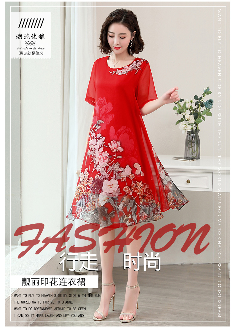WZNH-YYG82480潮流数码印花宽松腰2020年夏季短袖长裙
