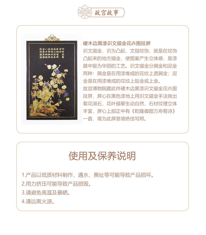 小清新,高品质,雅生活!故宫微店作为故宫博物院的官方微店,秉承着传播故宫文化,分享文创产品的原则,为广大喜爱故宫的观者提供高品质的文化创意产品。