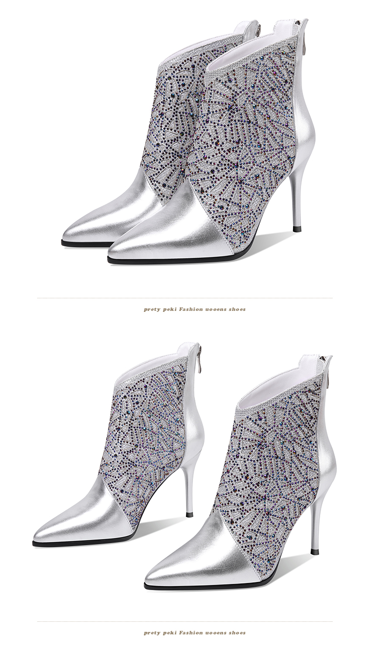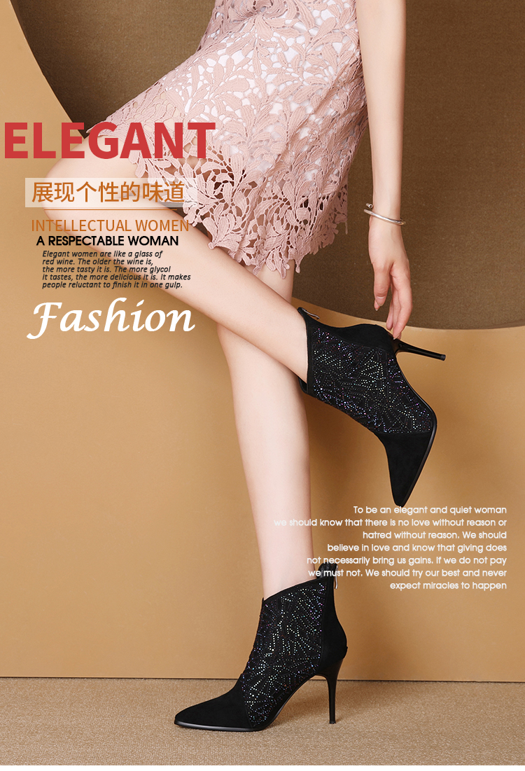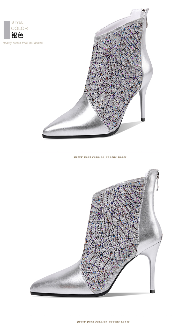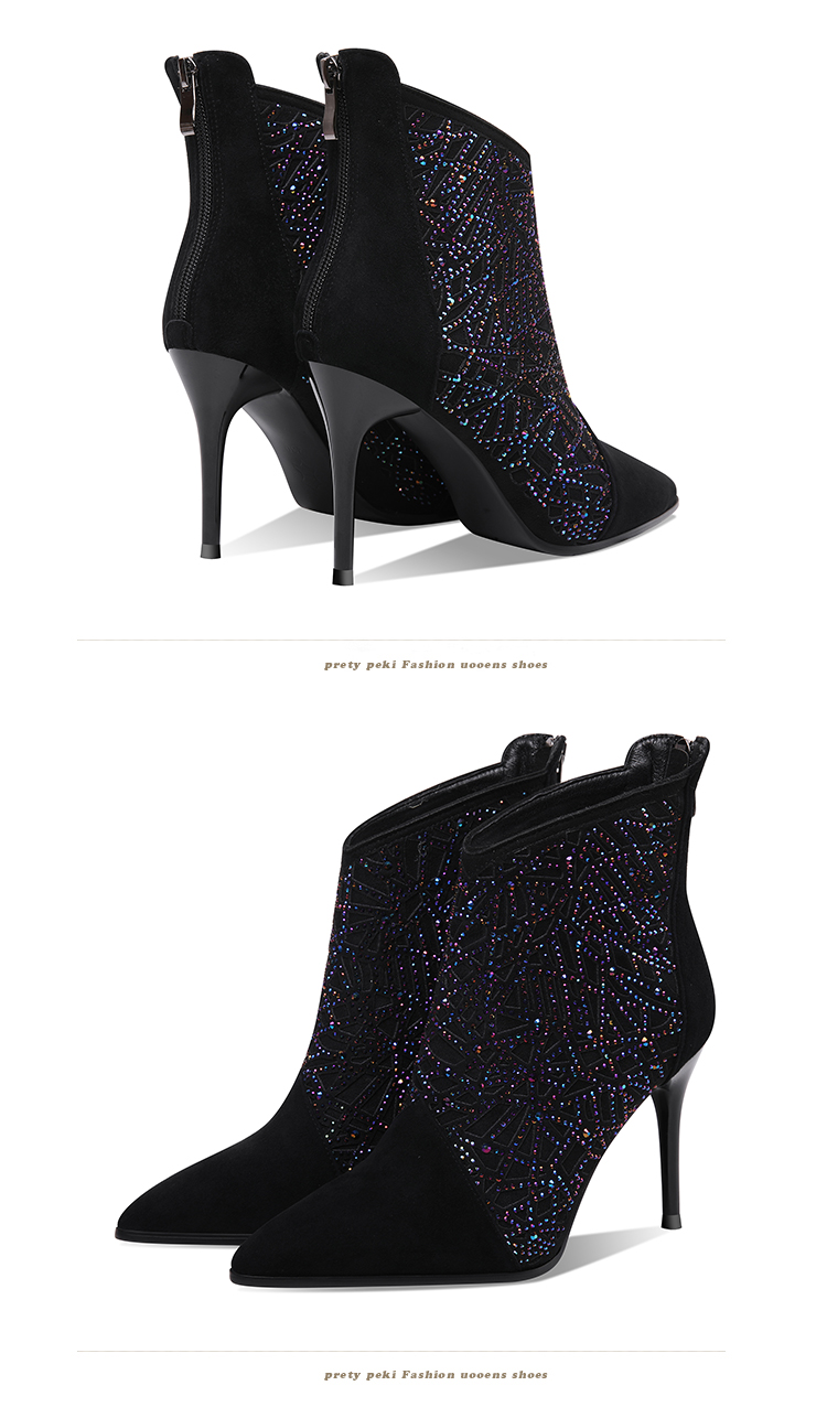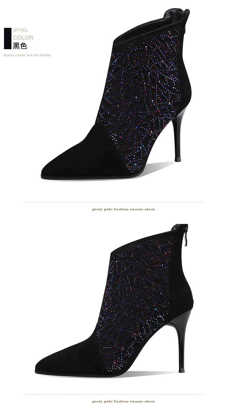 气质优雅,时尚水钻细高跟尖头短靴 JZX-92B-027