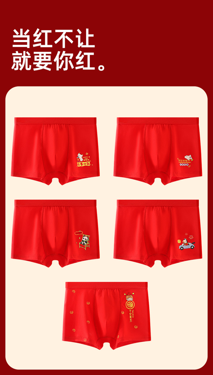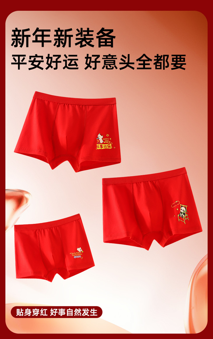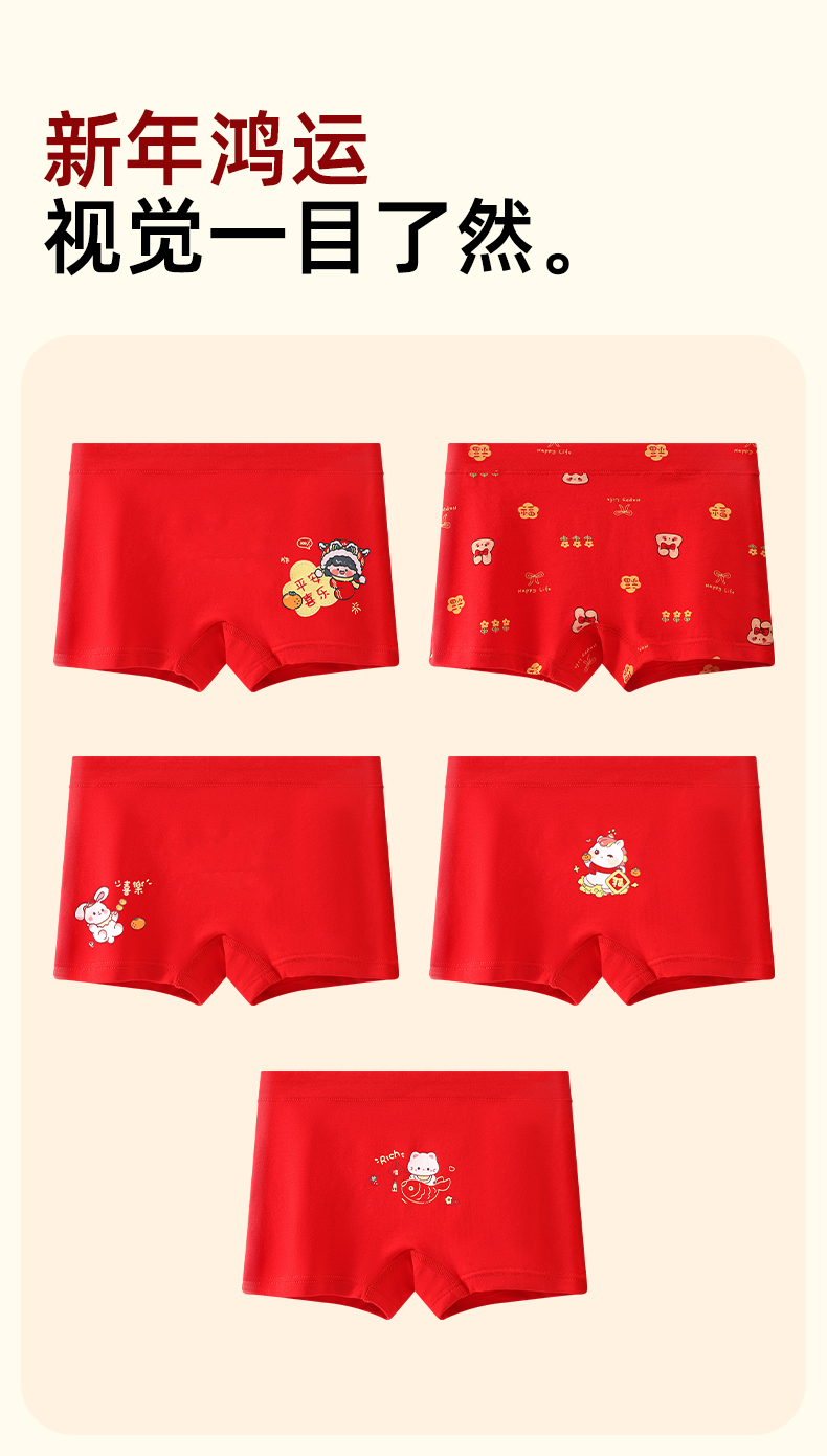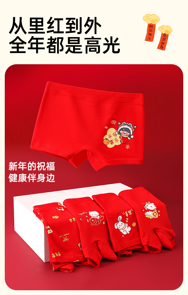 【秒杀】【5条装】2026年马年新年璐童梦儿童A类婴儿棉新年红内裤100A抗菌平角男女孩宝宝中大童四角小童透气短裤xl-4xl