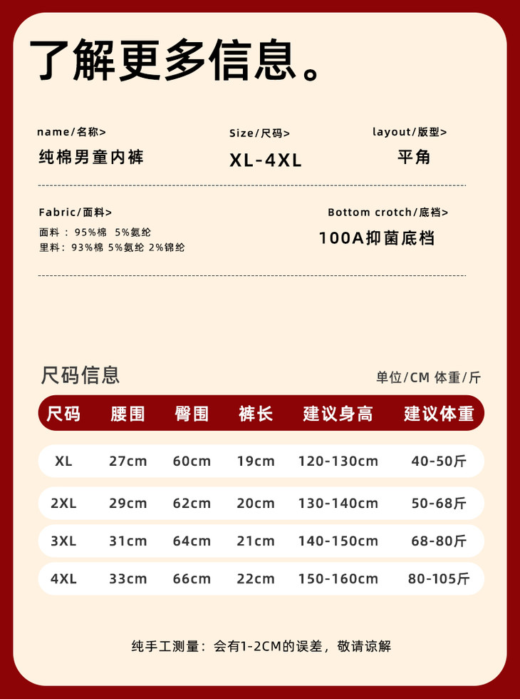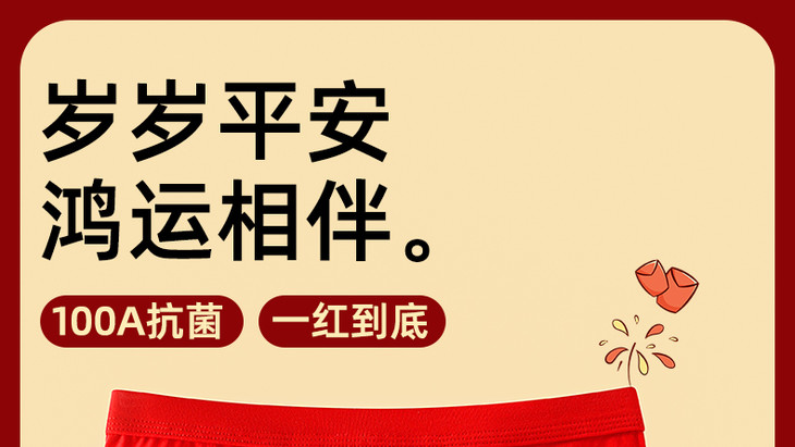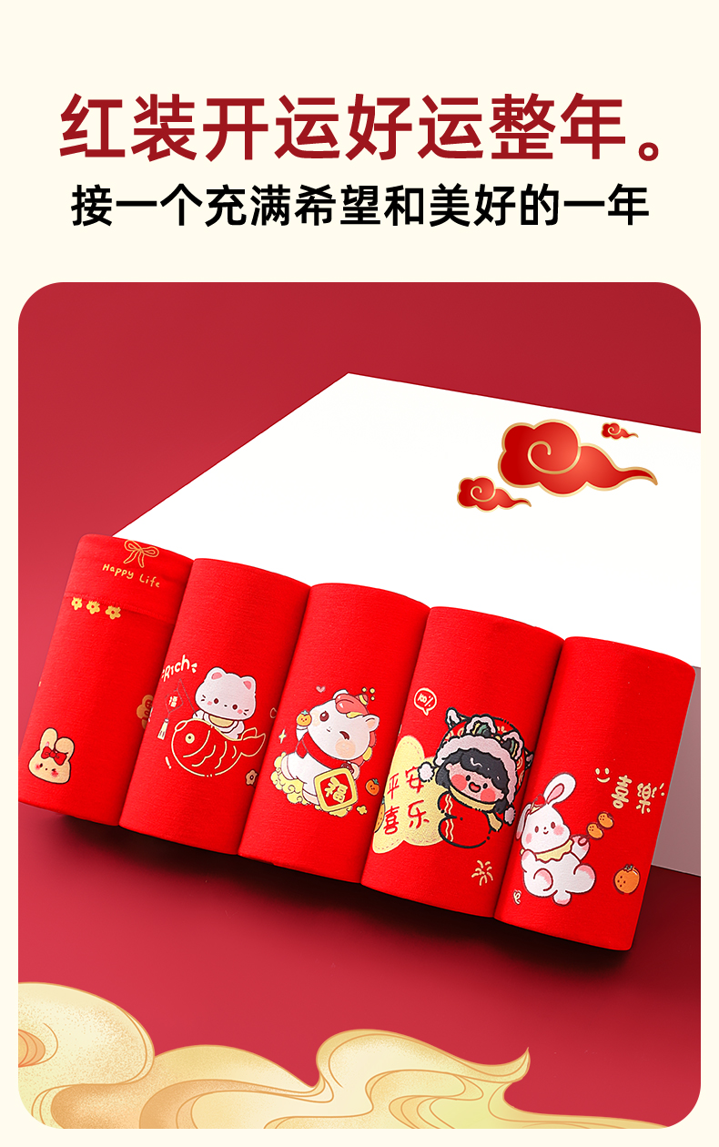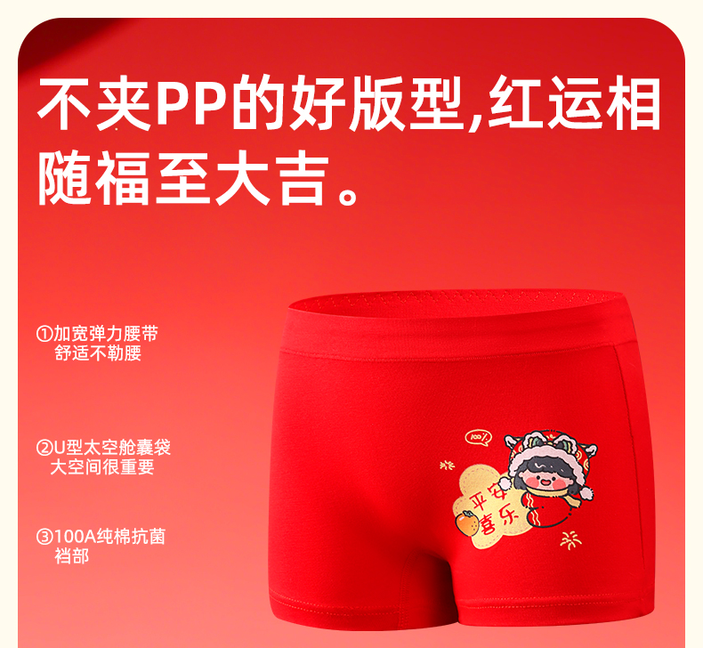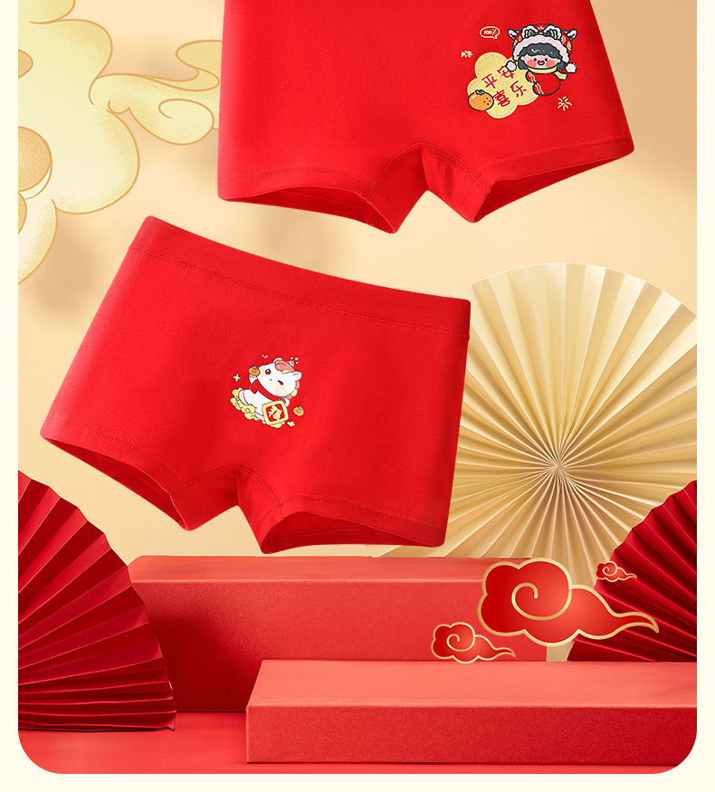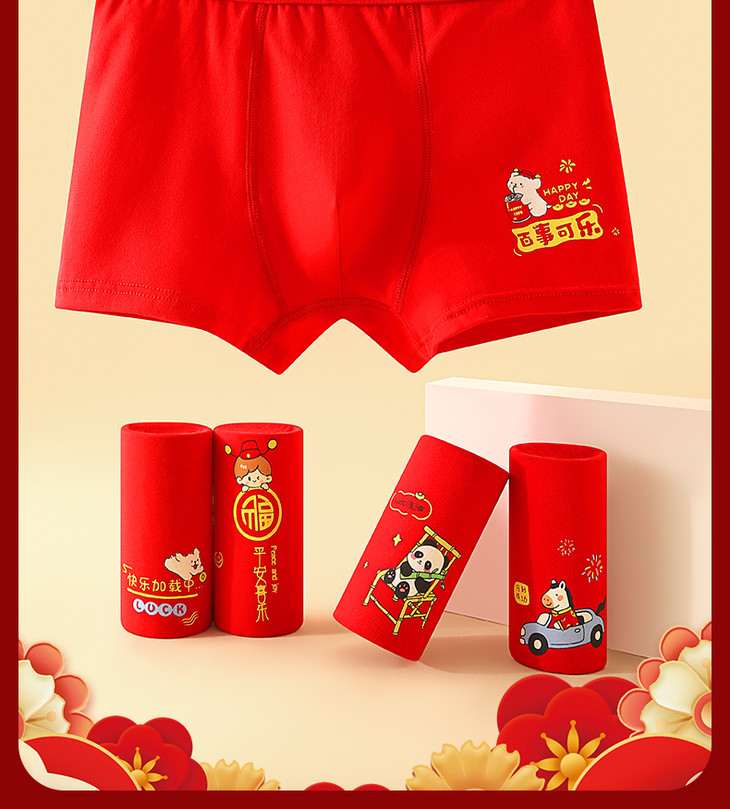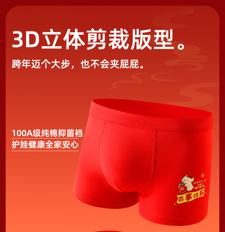 【秒杀】【5条装】2026年马年新年璐童梦儿童A类婴儿棉新年红内裤100A抗菌平角男女孩宝宝中大童四角小童透气短裤xl-4xl