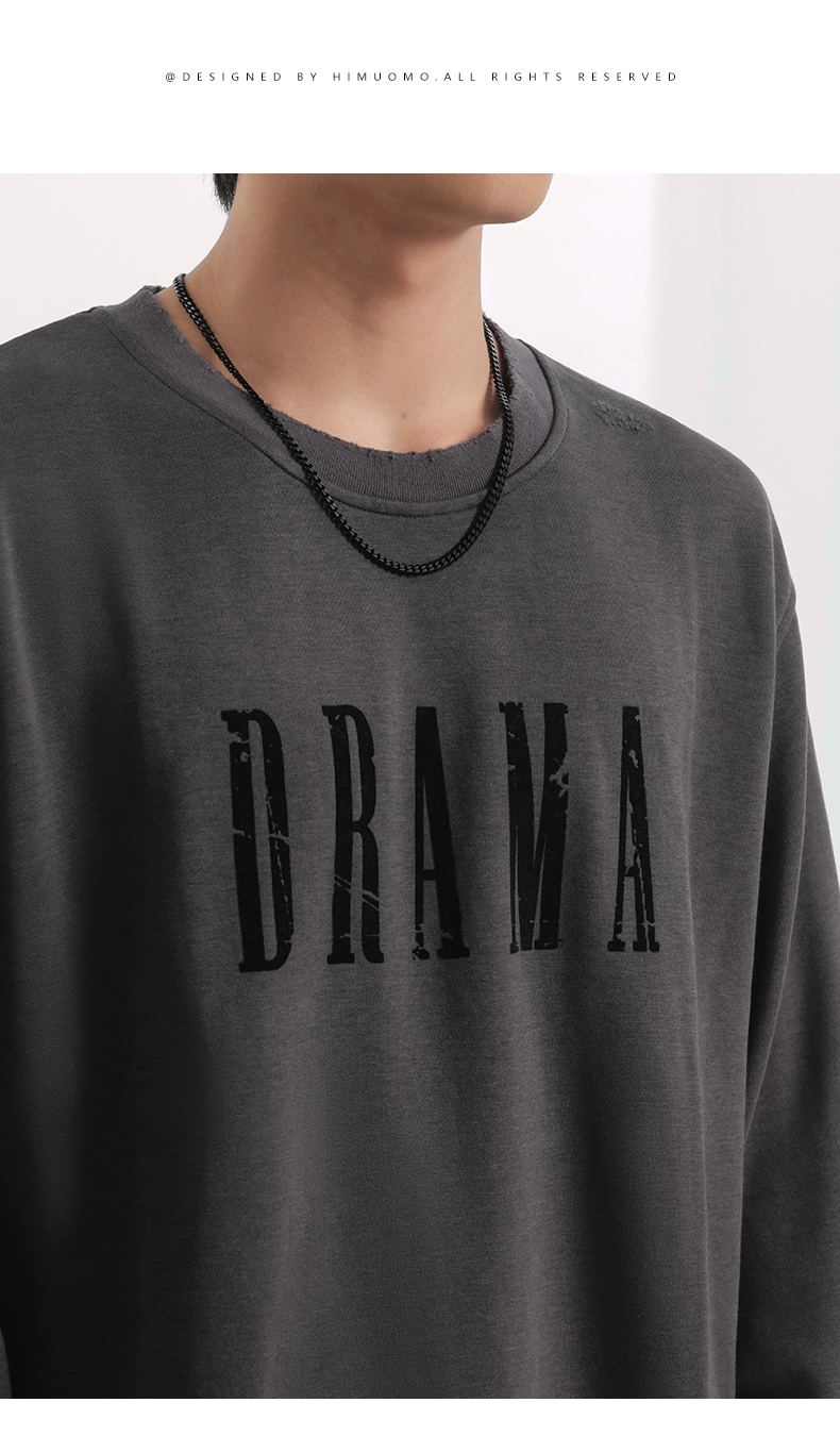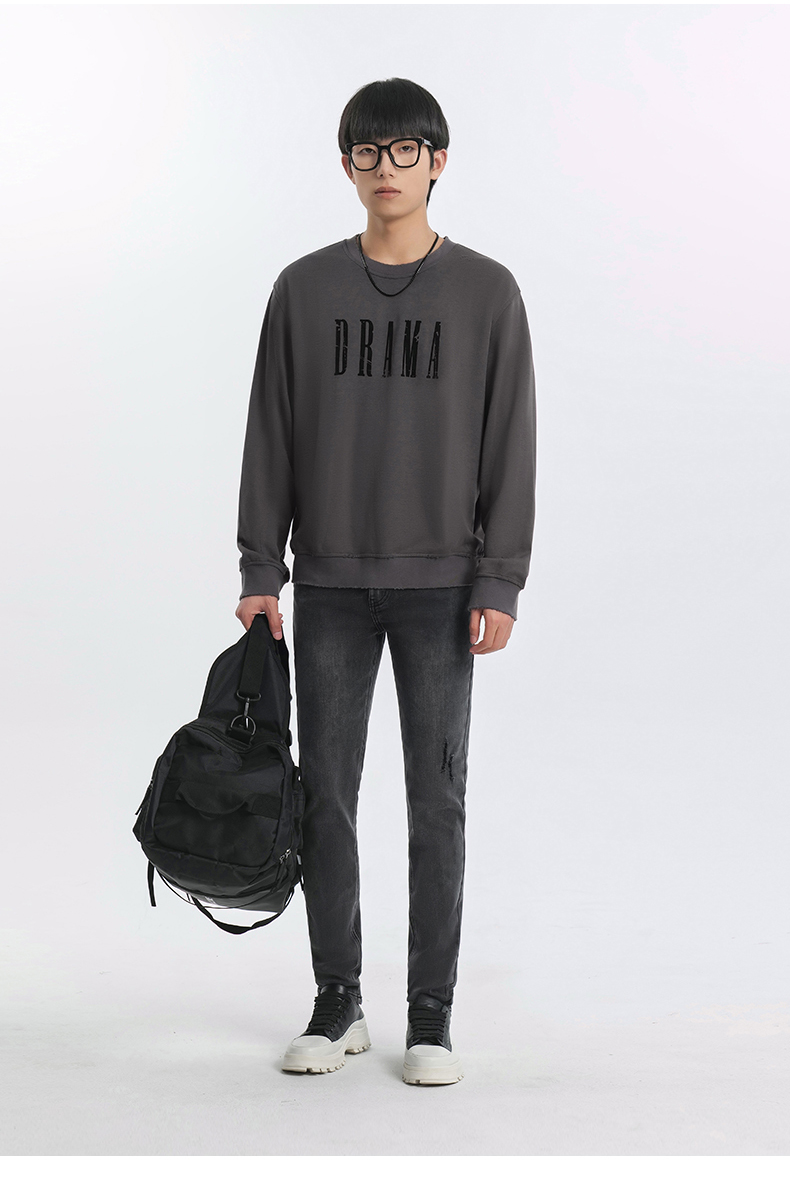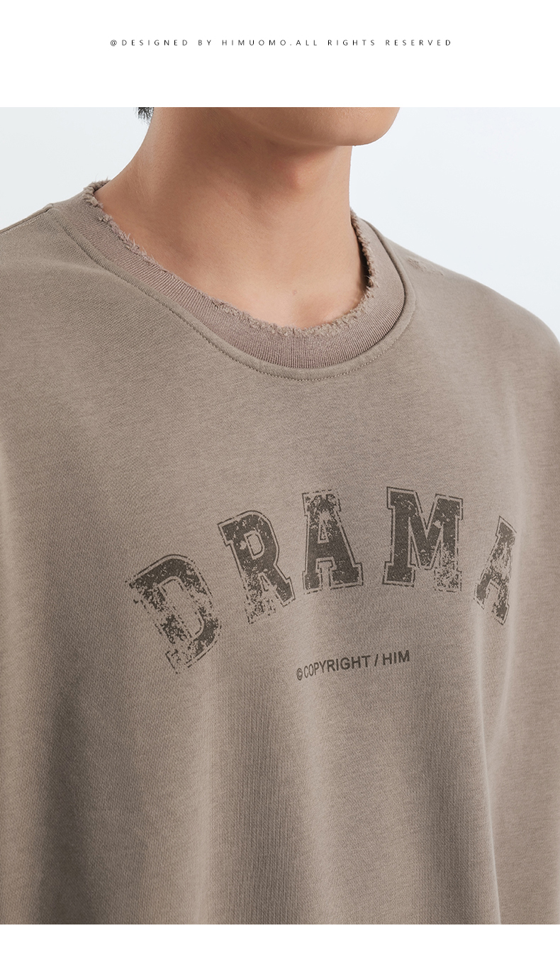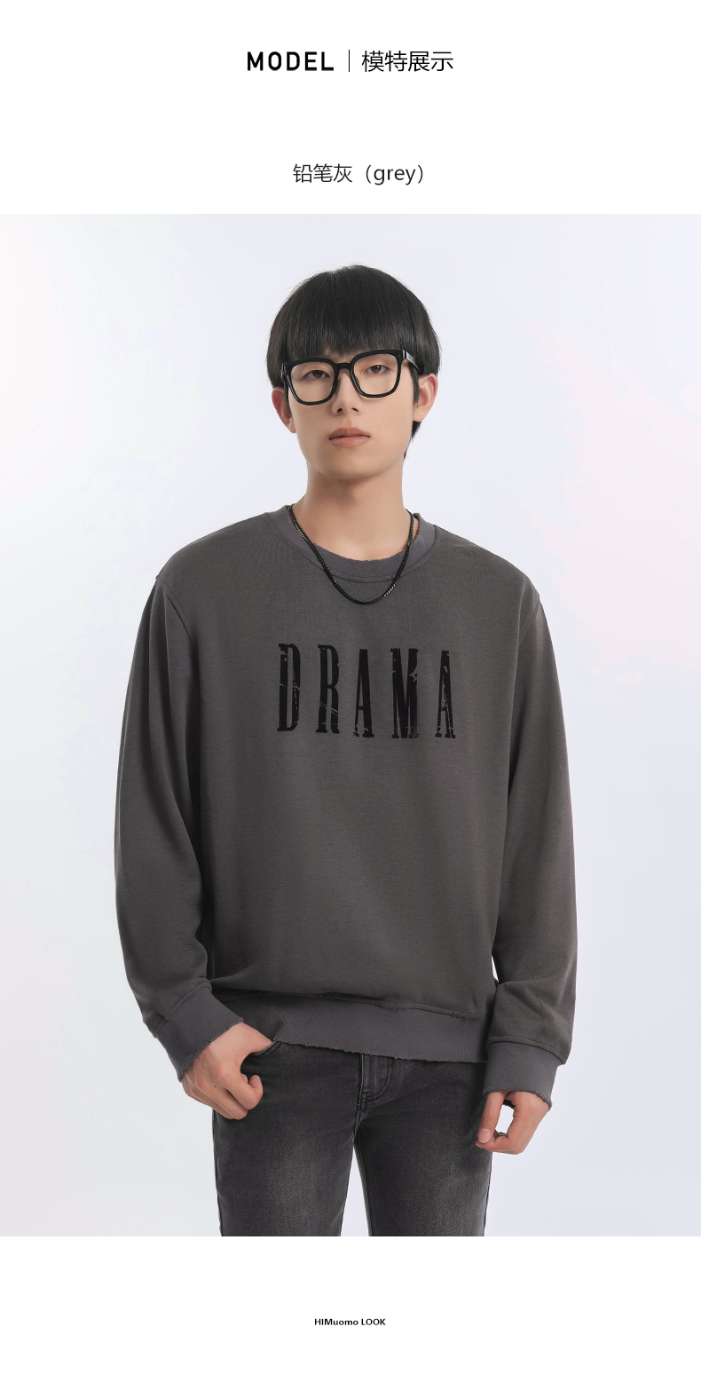 HIM漢崇 复古洗烂破损植绒印花休闲长袖圆领套头卫衣 2025秋季
