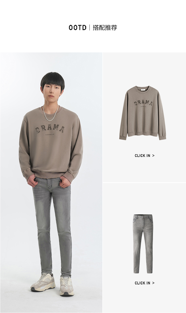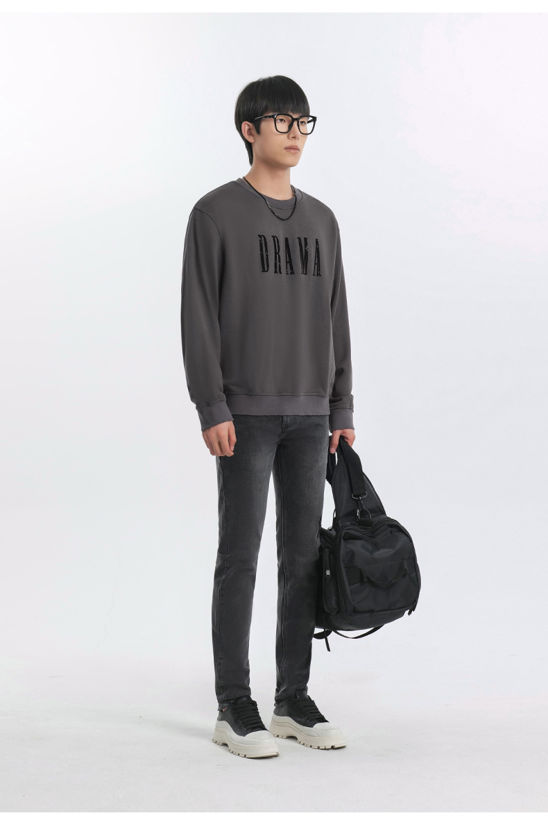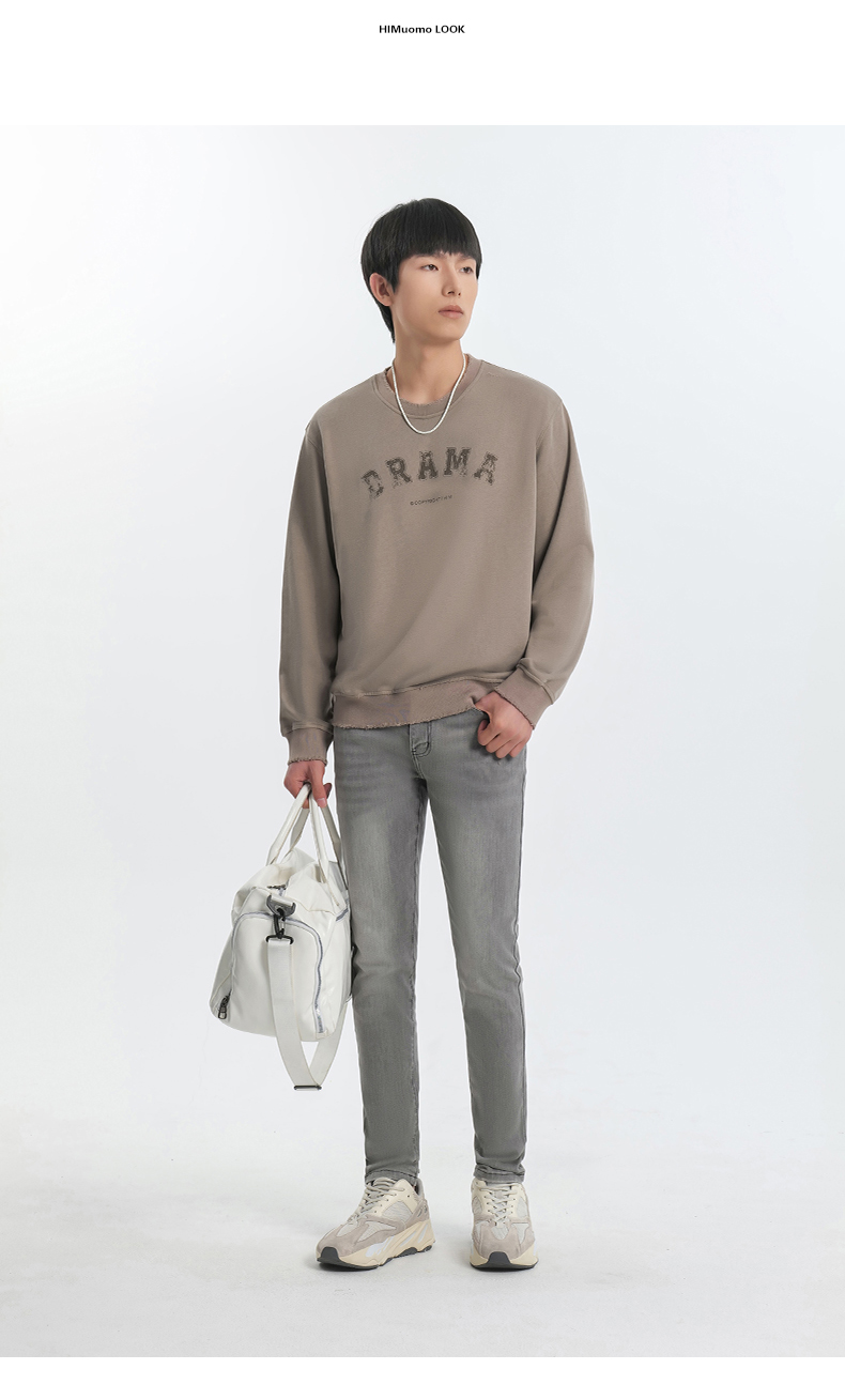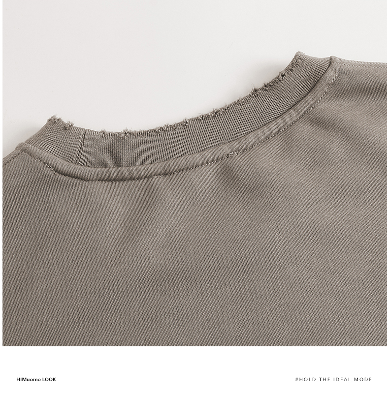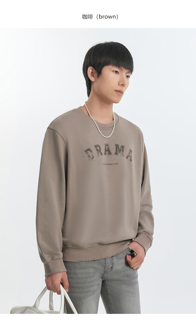 HIM漢崇 复古洗烂破损植绒印花休闲长袖圆领套头卫衣 2025秋季
