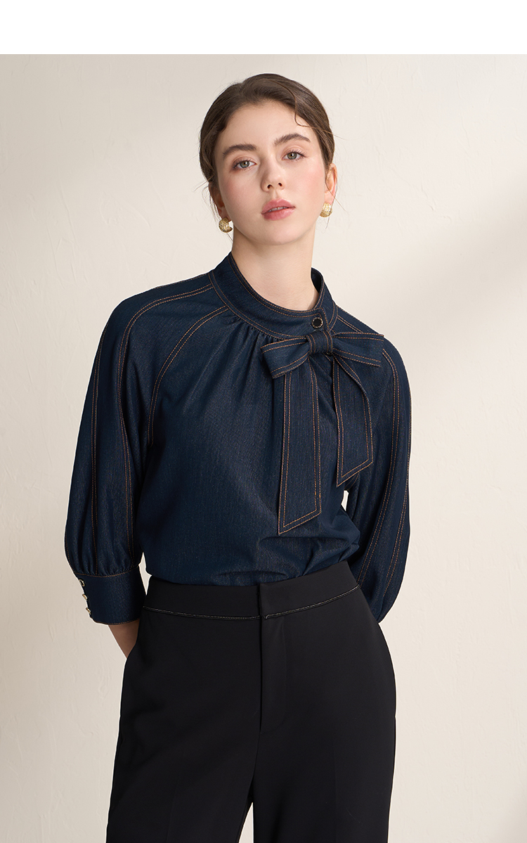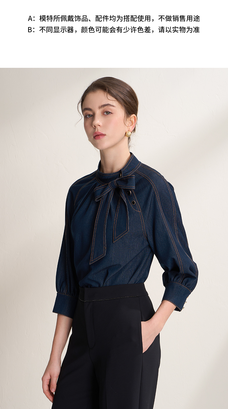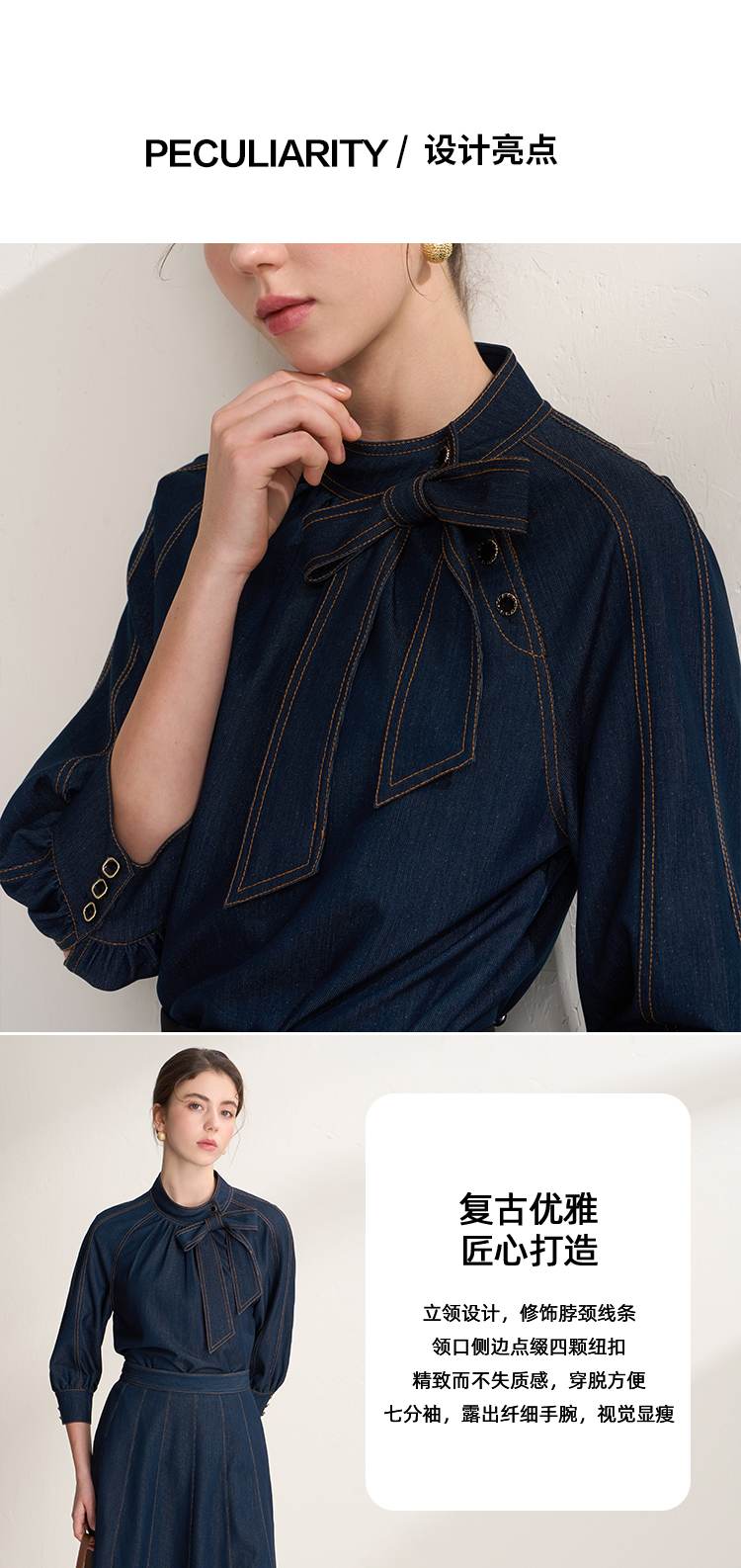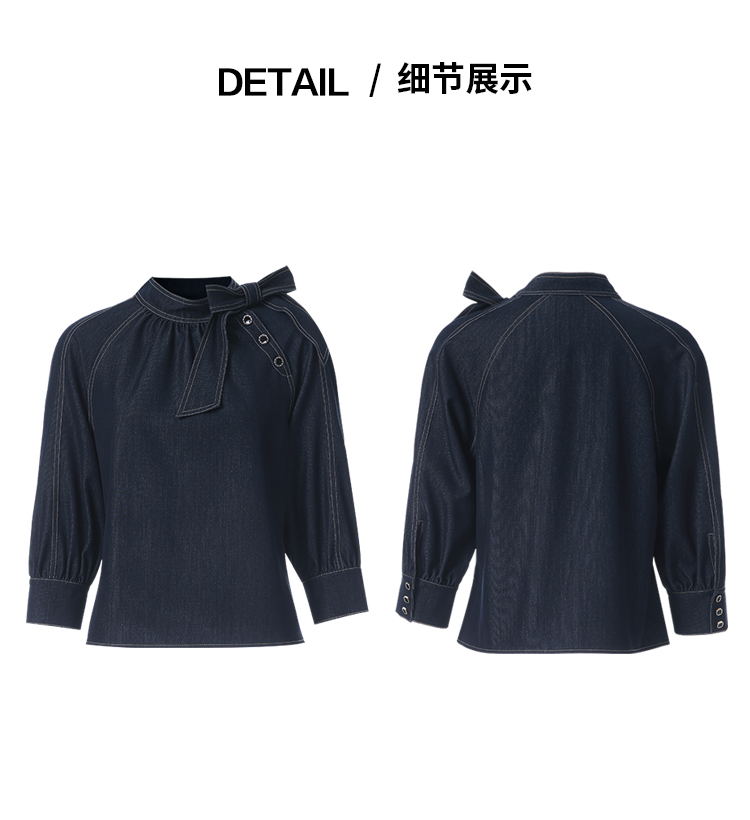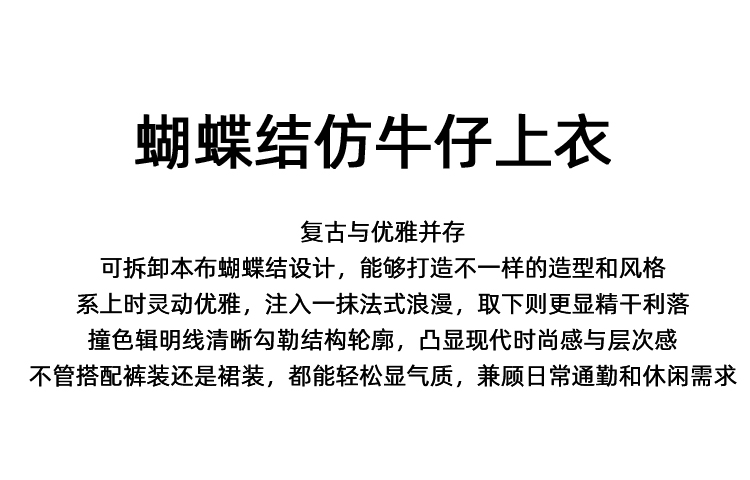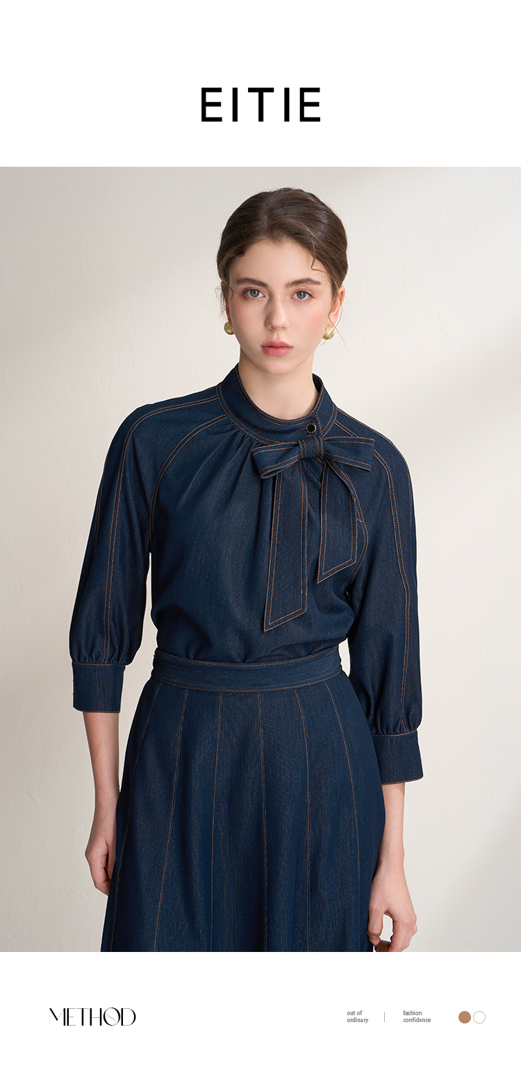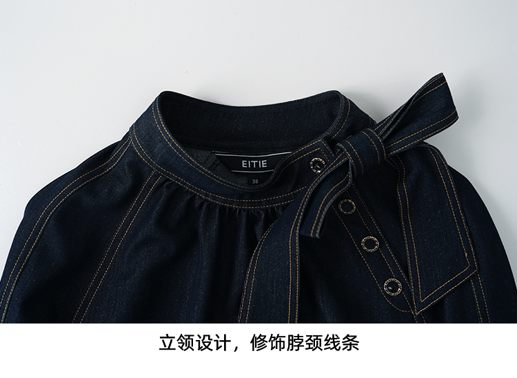 EITIE爱特爱蝴蝶结气质圆领时尚仿牛仔宽松显瘦2026春季新款小上衣A2613115