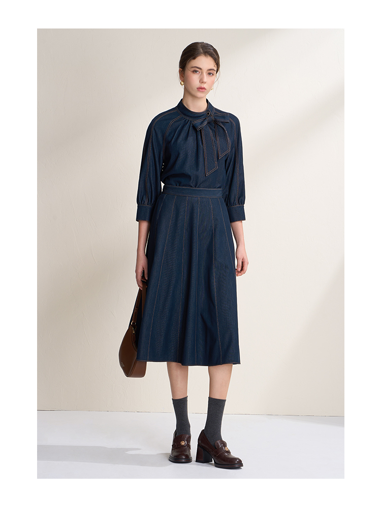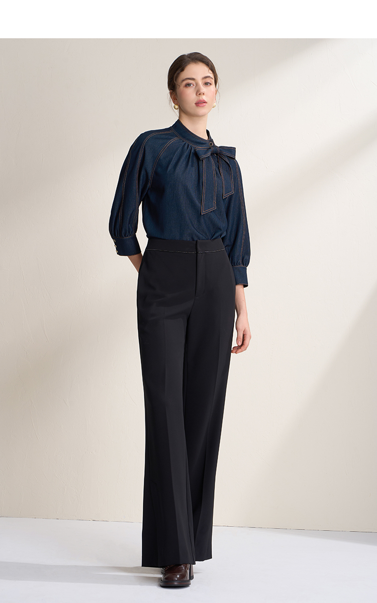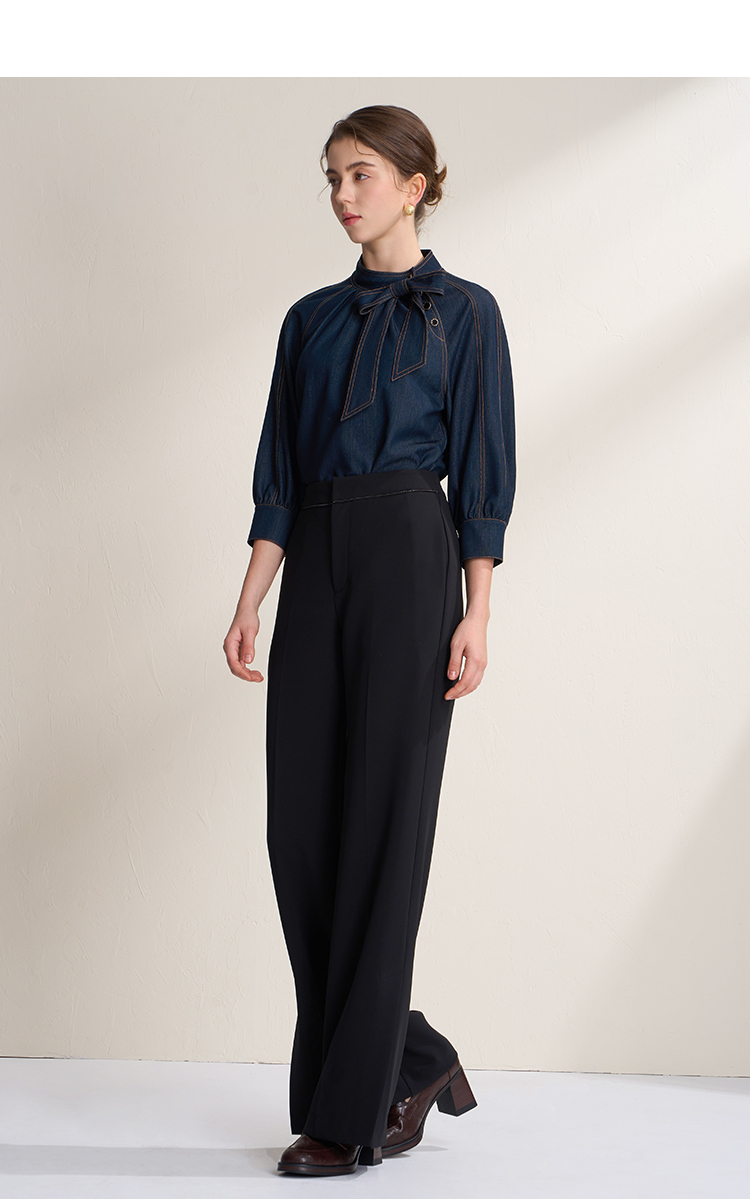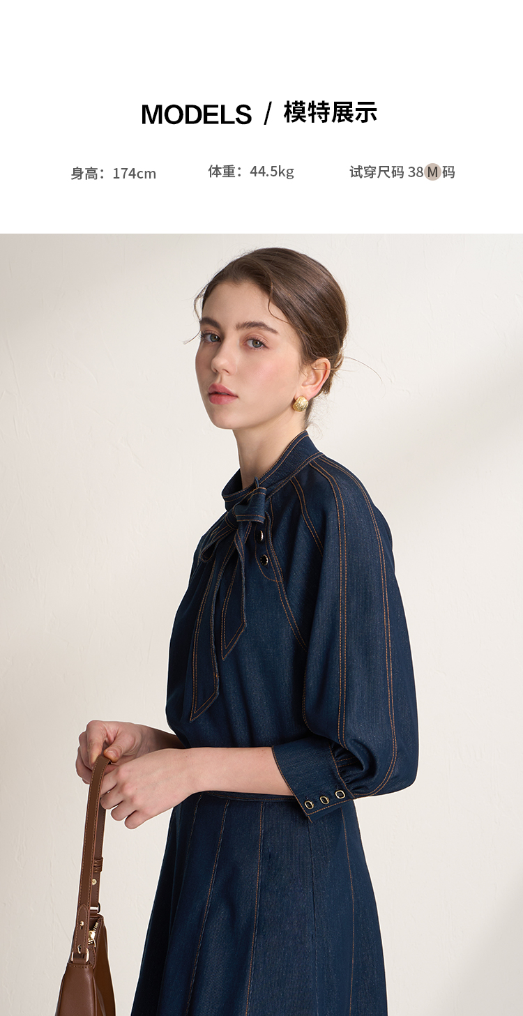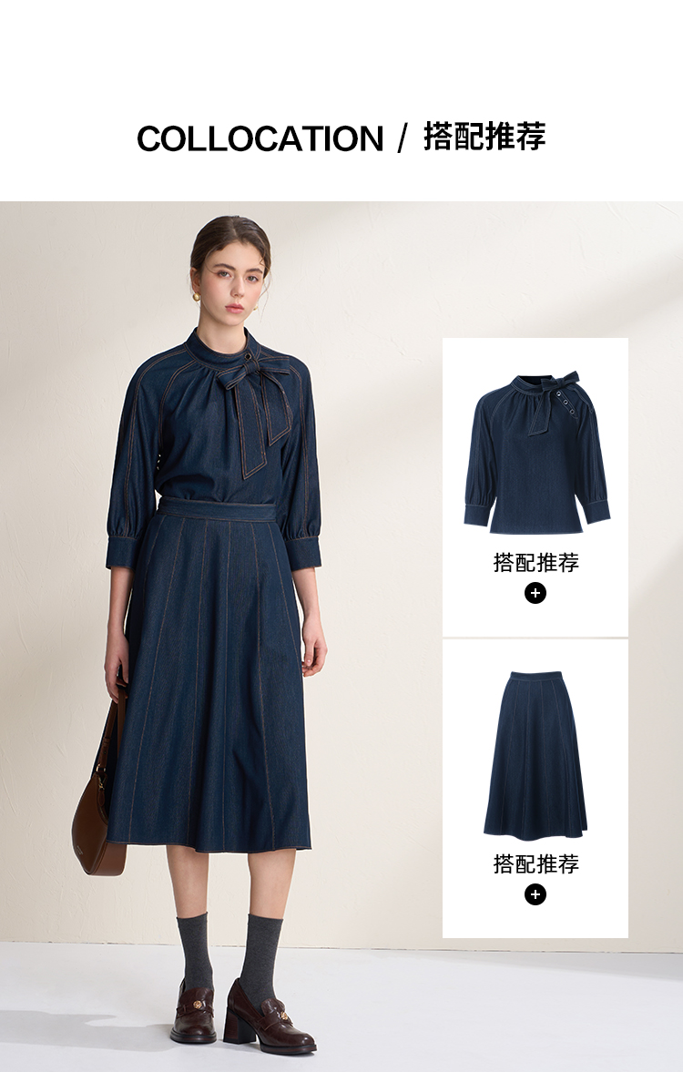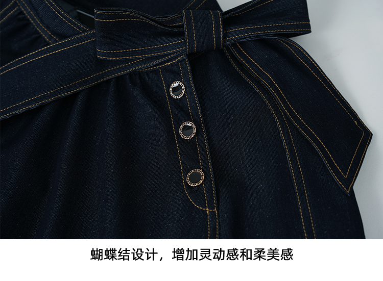 EITIE爱特爱蝴蝶结气质圆领时尚仿牛仔宽松显瘦2026春季新款小上衣A2613115