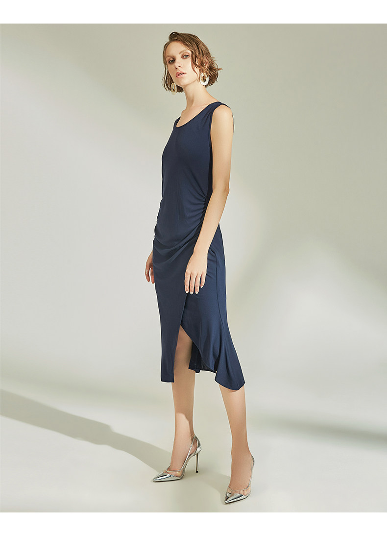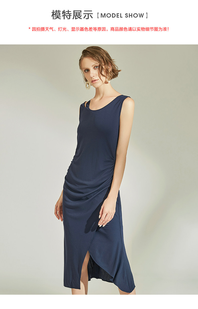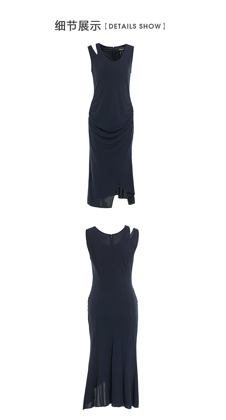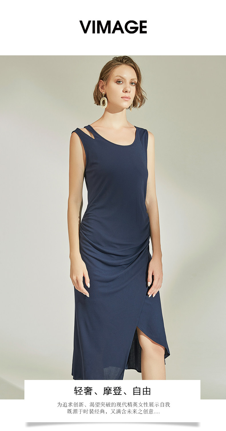 VIMAGE纬漫纪女装春季新款性感褶皱开叉气质优雅修身背心连衣裙V1107758