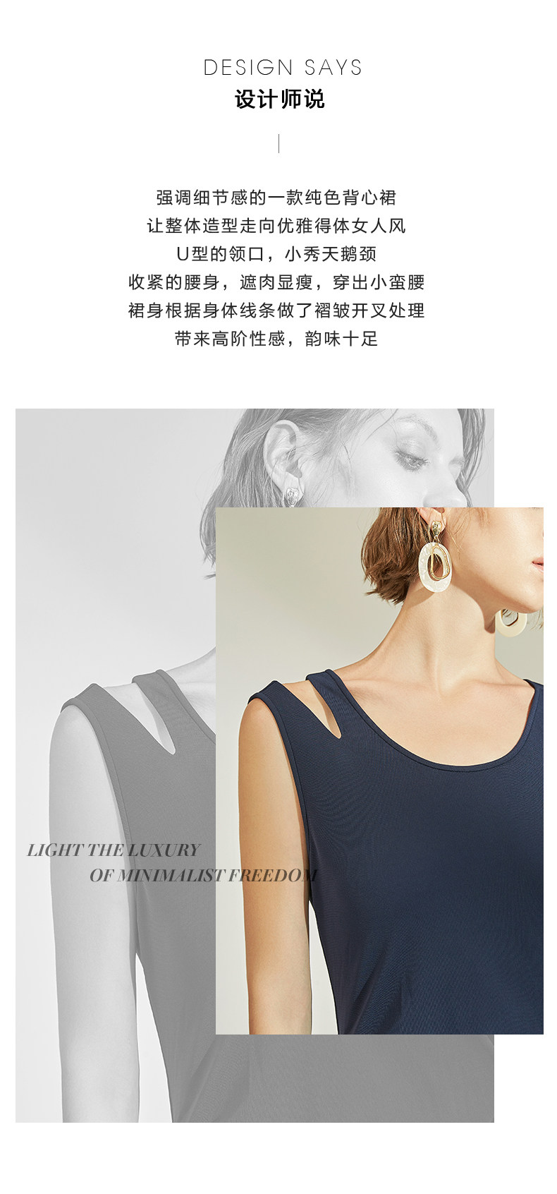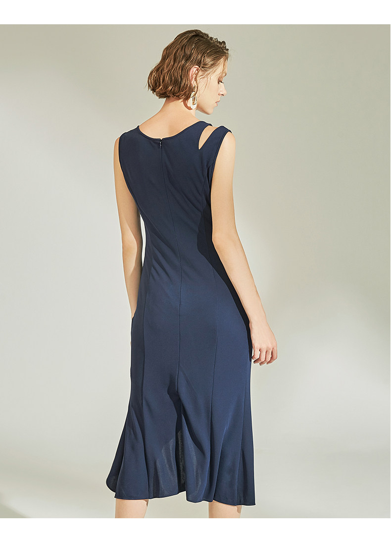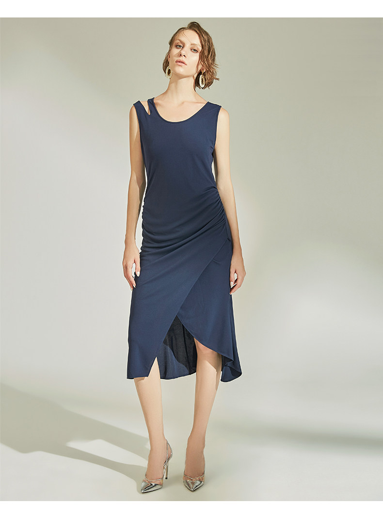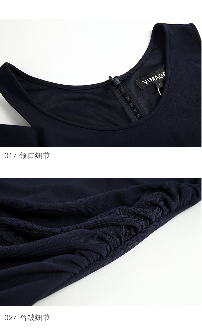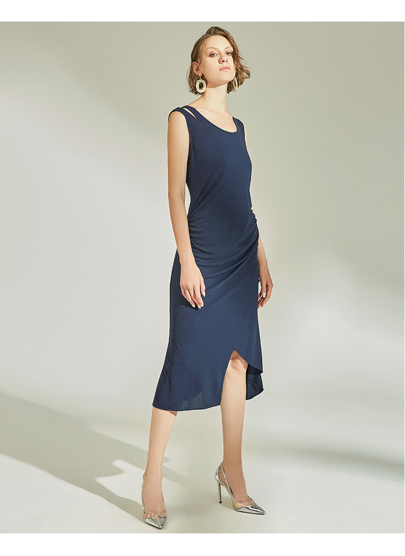 VIMAGE纬漫纪女装春季新款性感褶皱开叉气质优雅修身背心连衣裙V1107758