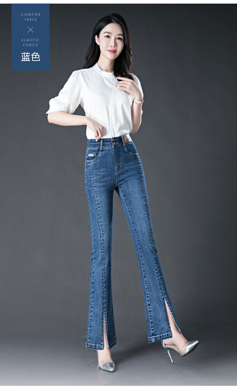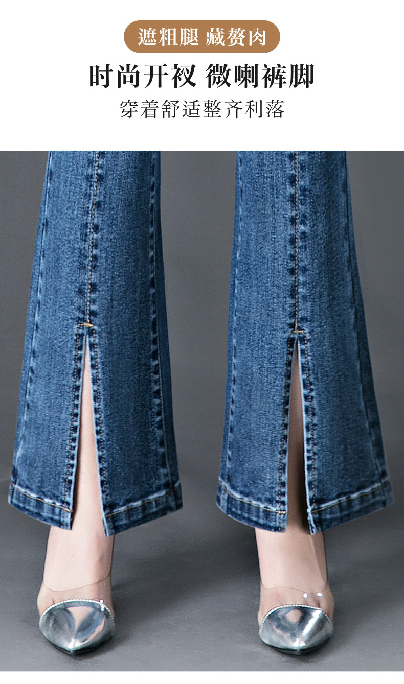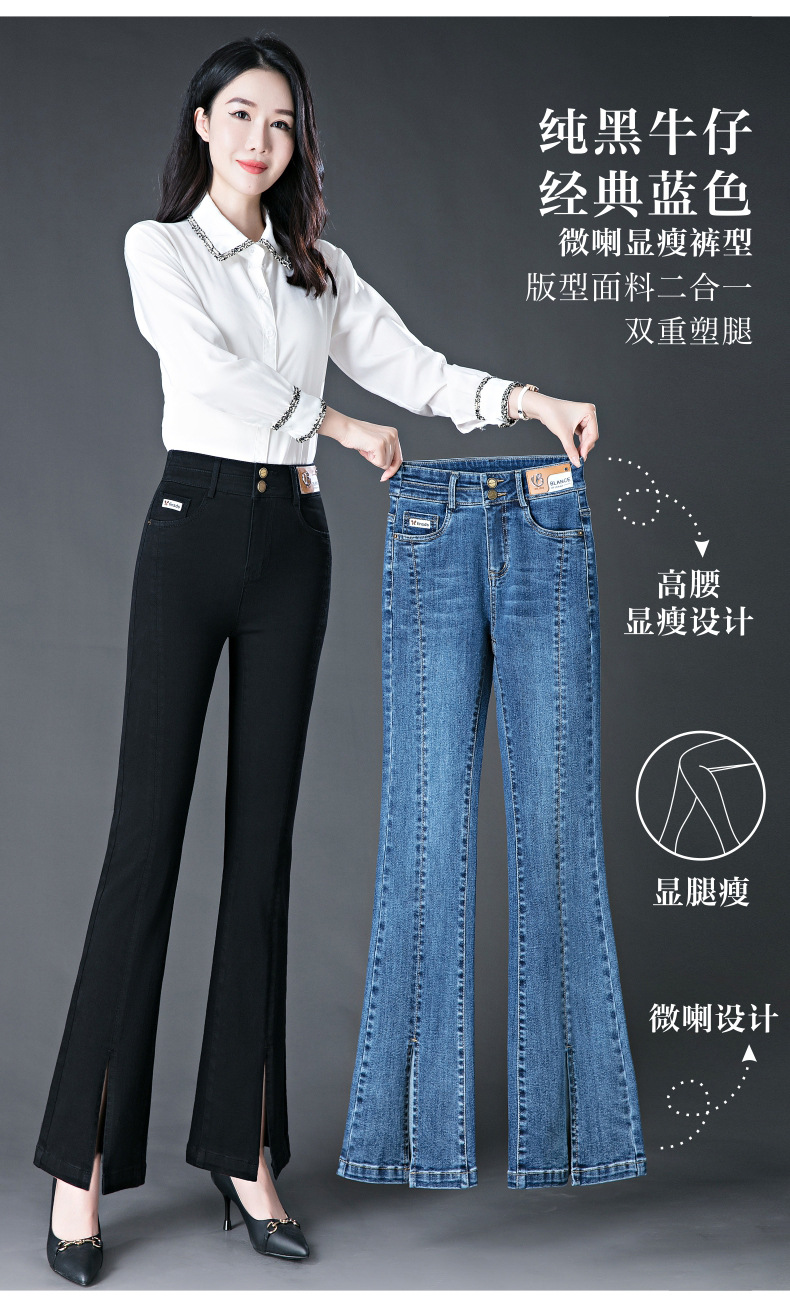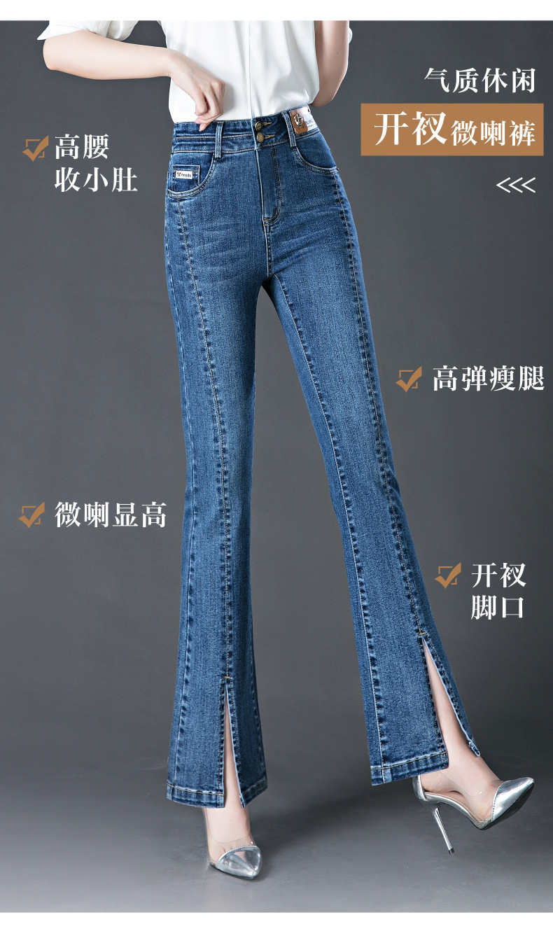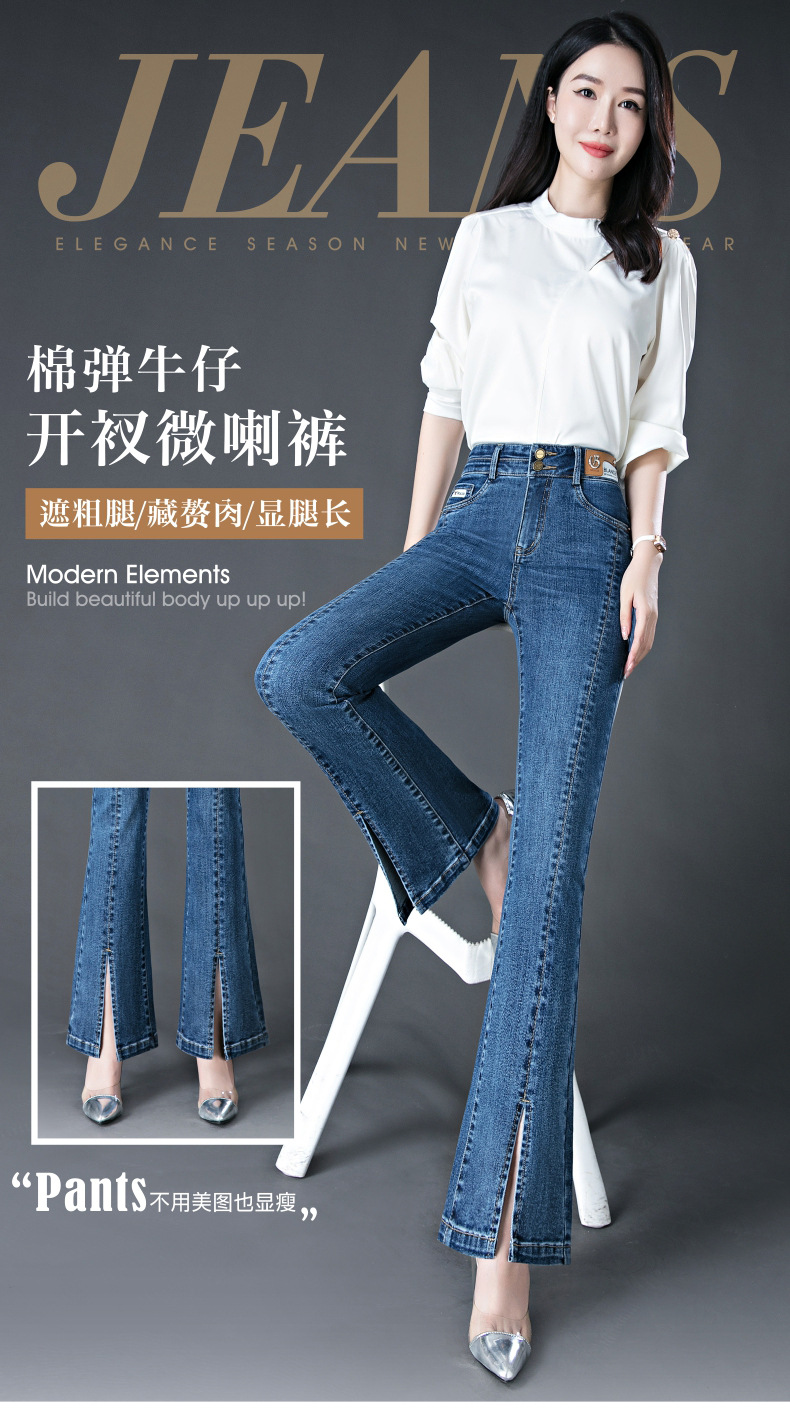 DD-前开叉牛仔微喇裤女春季新款时尚修身弹力高腰显瘦显高休闲喇叭裤