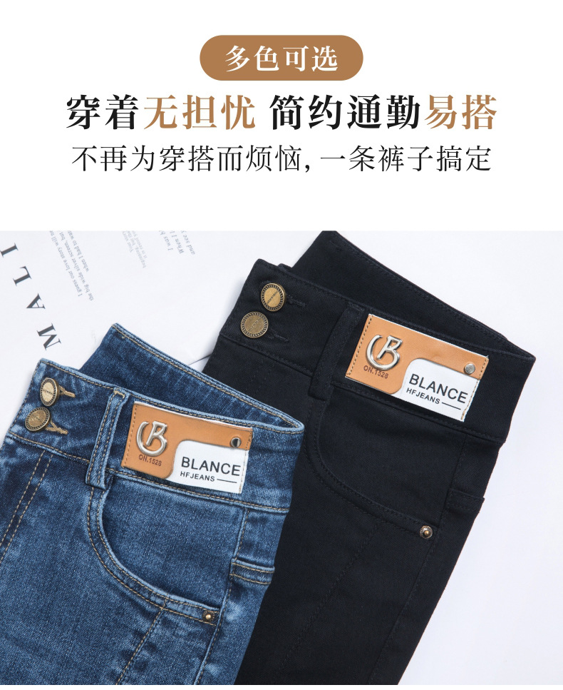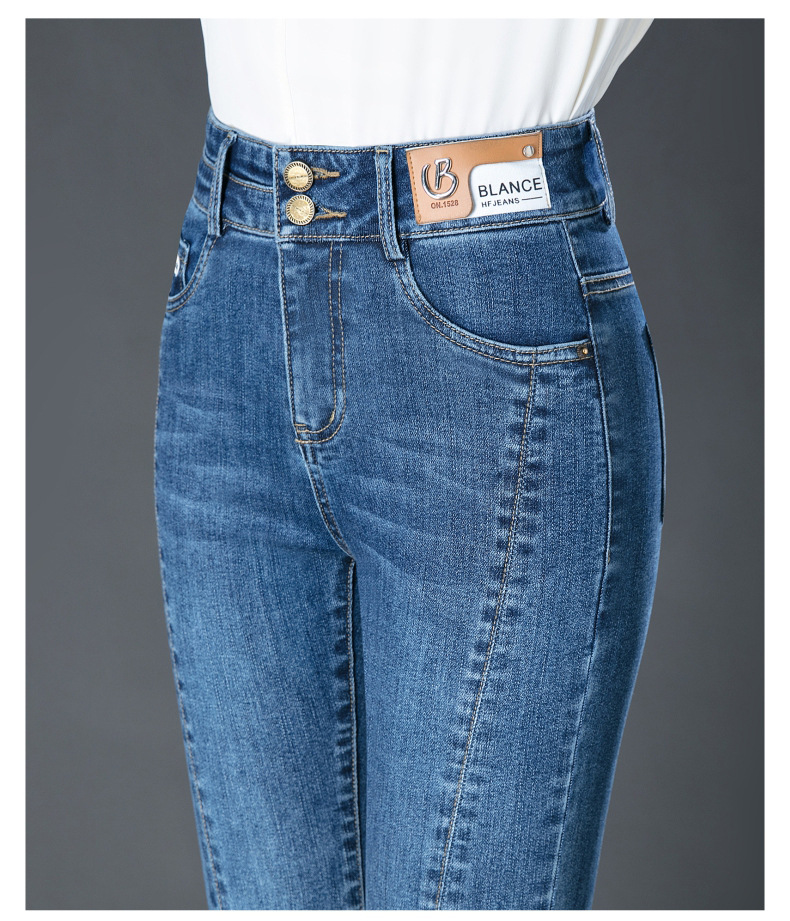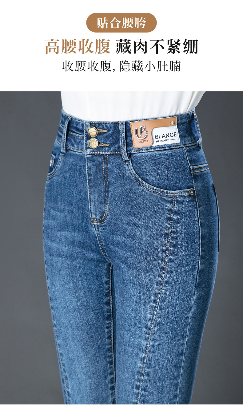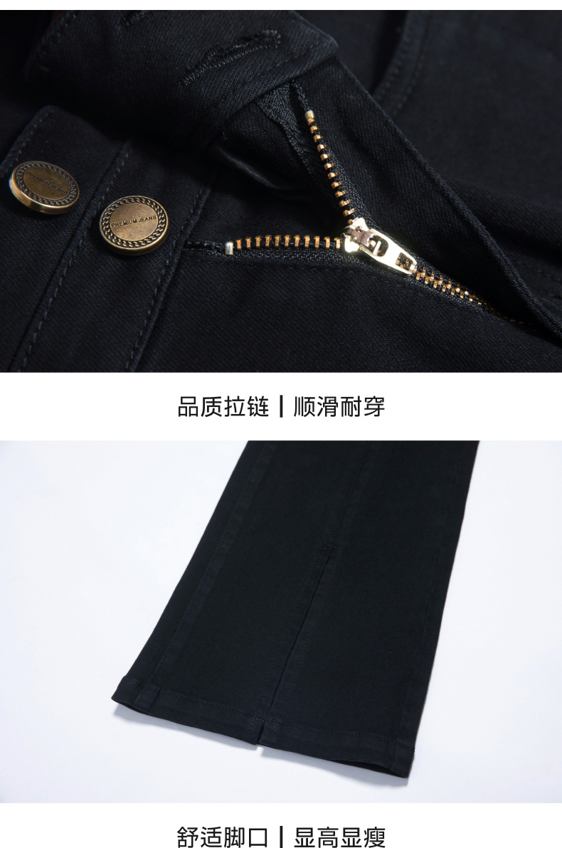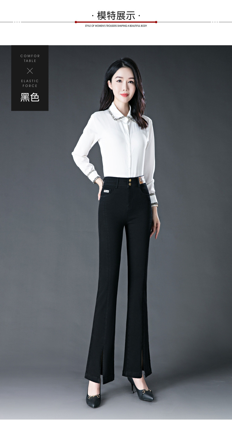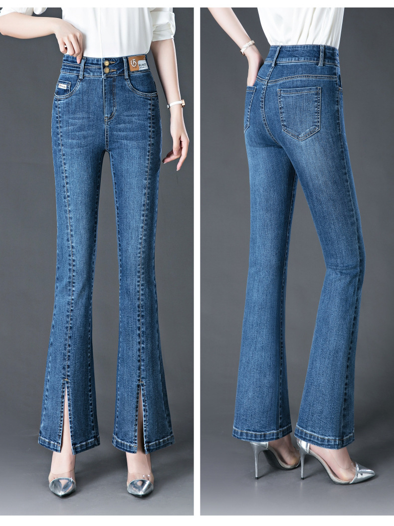 DD-前开叉牛仔微喇裤女春季新款时尚修身弹力高腰显瘦显高休闲喇叭裤