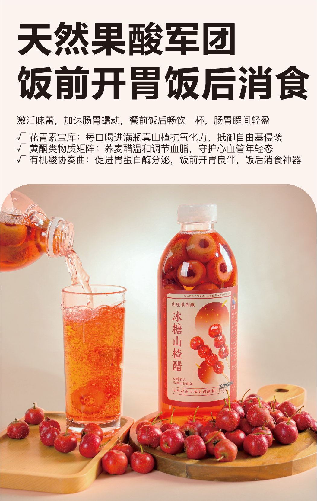 【清爽解腻 酸甜可口 0添加剂】冰糖山楂醋 1000ml×2瓶 (礼盒装)