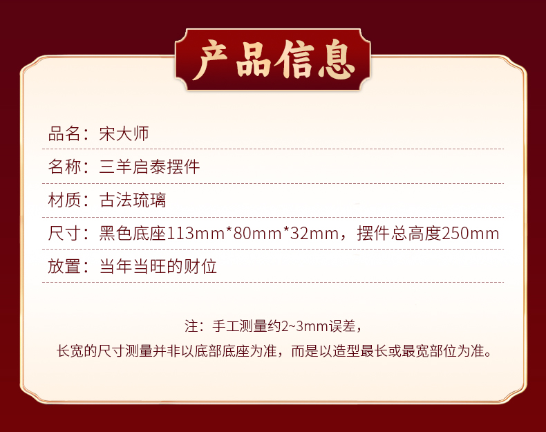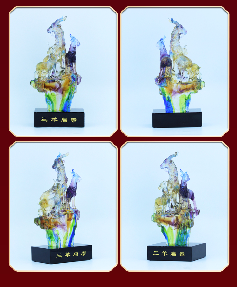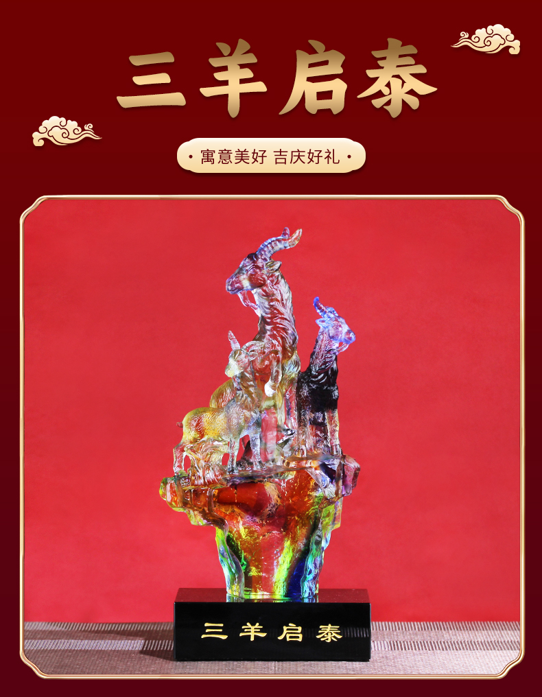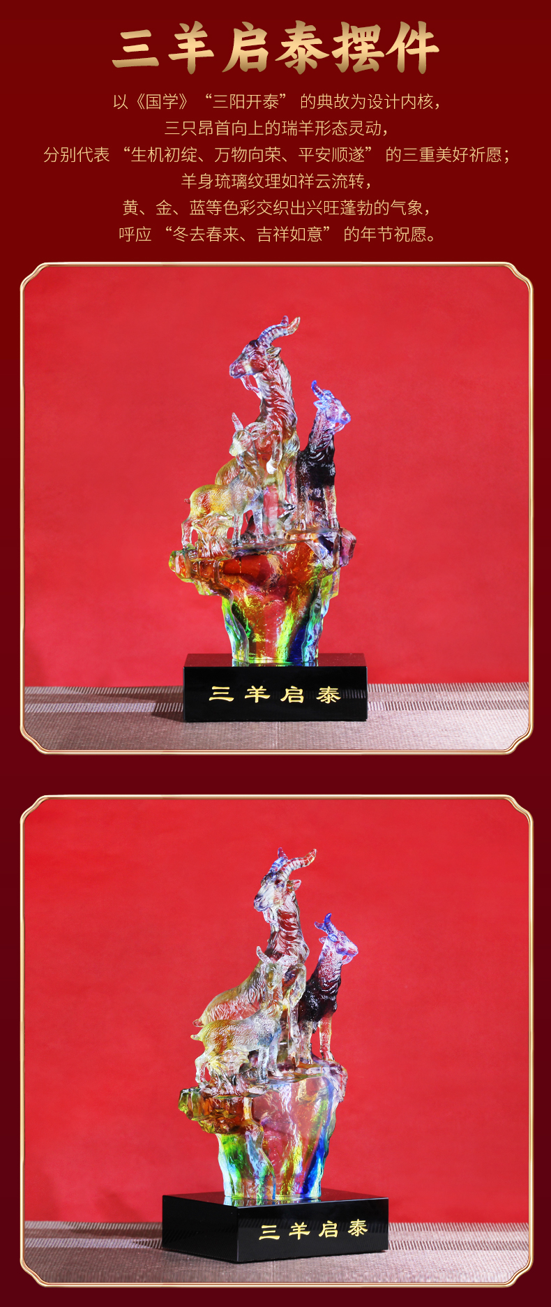 宋韶光大师 2026新款三羊启泰古法琉璃家居摆件办公室乔迁开业礼物