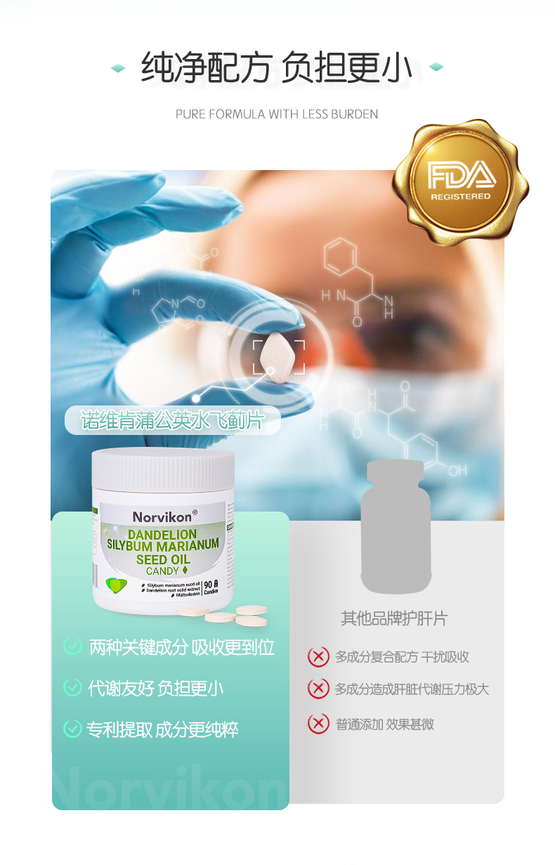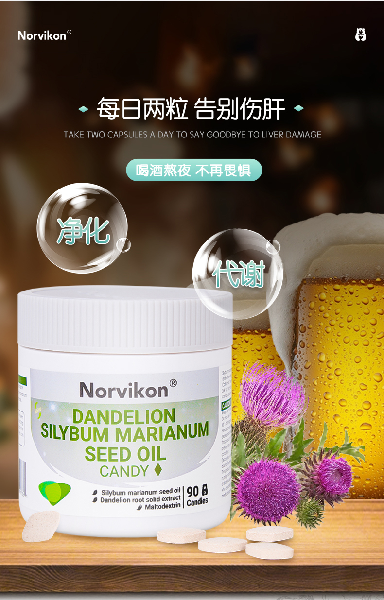 【肝净没负担】美国Norvion诺维肯蒲公英水飞蓟净肝片加班熬夜喝酒必备养肝减负加速代谢纯净配方植萃原料