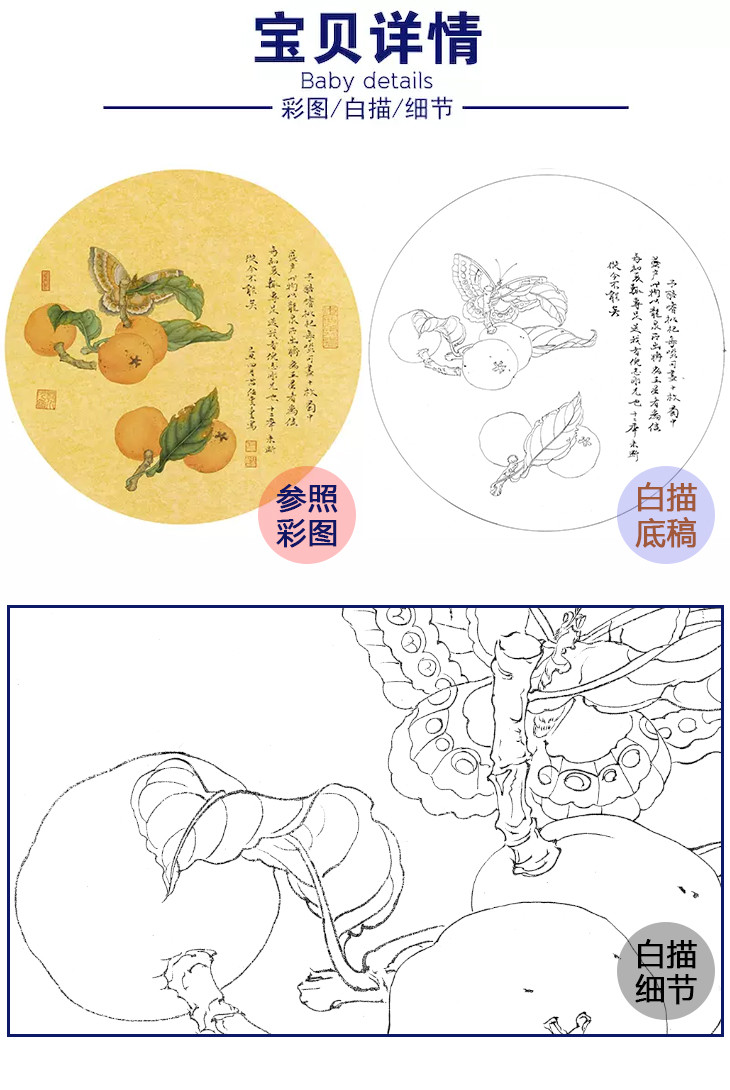 宋画工笔花鸟白描底稿-宋 林椿 枇杷山鸟图-斗方小品册页-X008