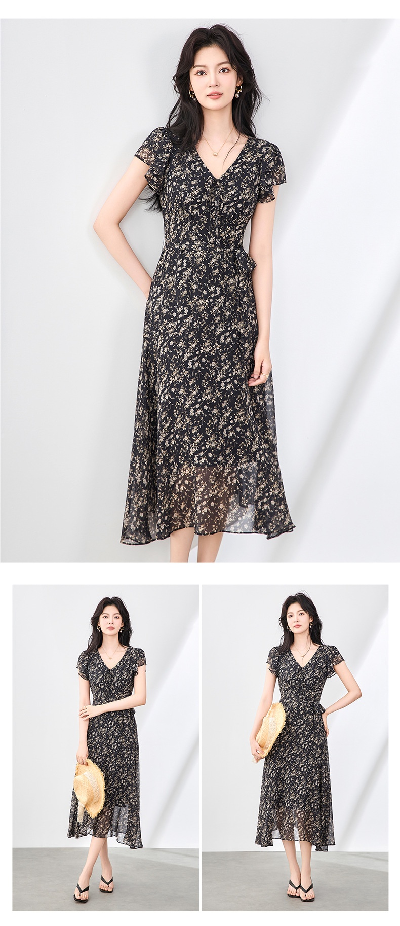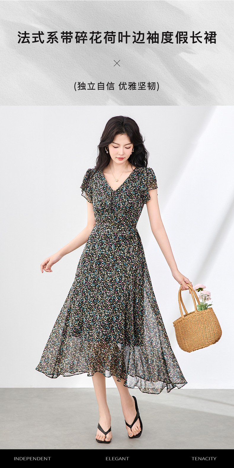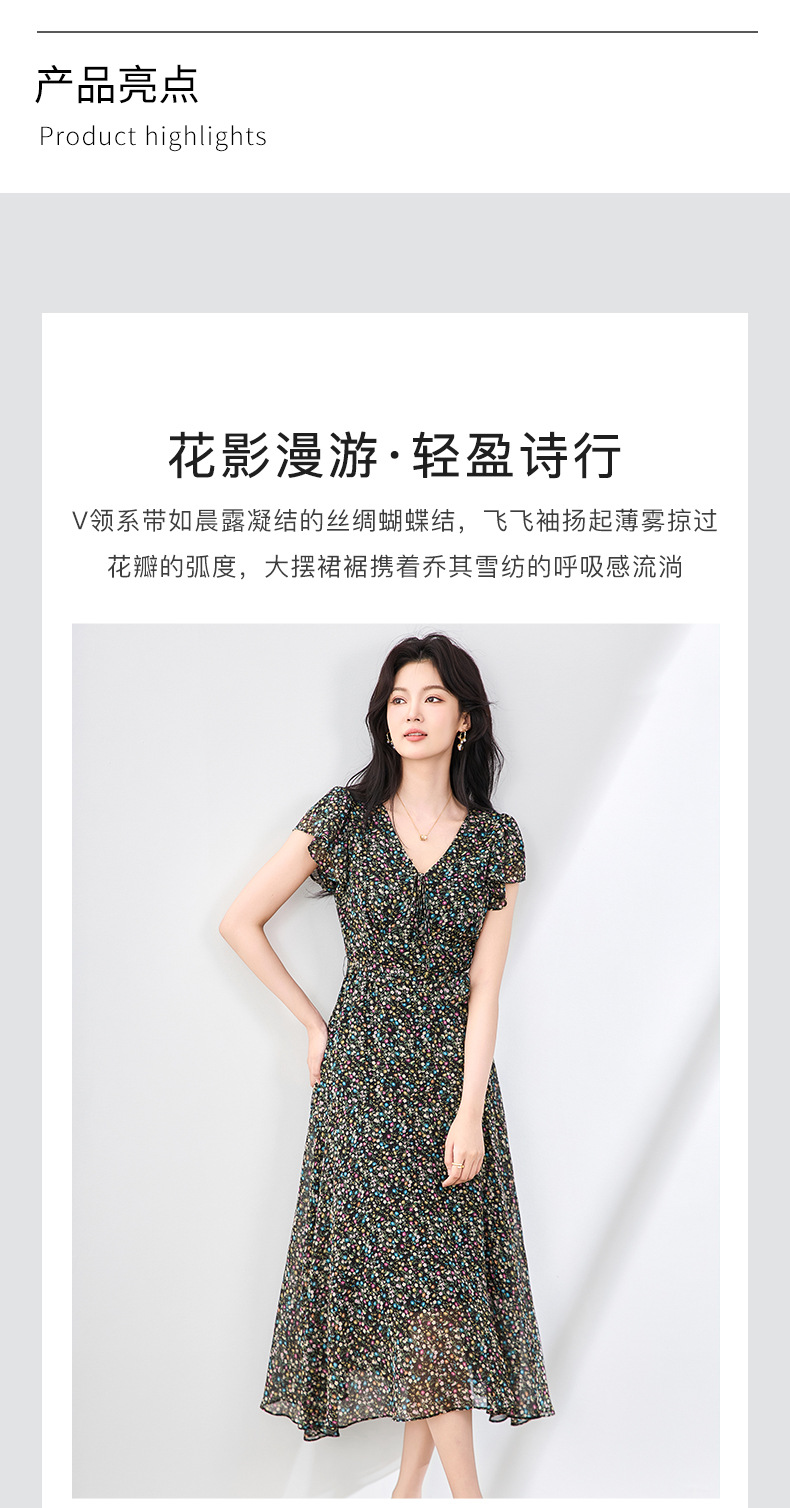 「高货wl」全新升级【铂金会员293/天猫399/差价106】(01146)洛诗琳法式浪漫复古印花连衣裙2025显瘦V领收腰大摆碎花裙wl01146