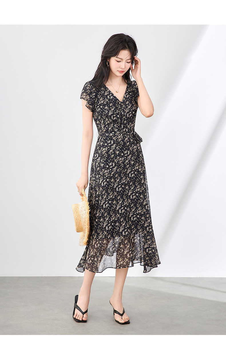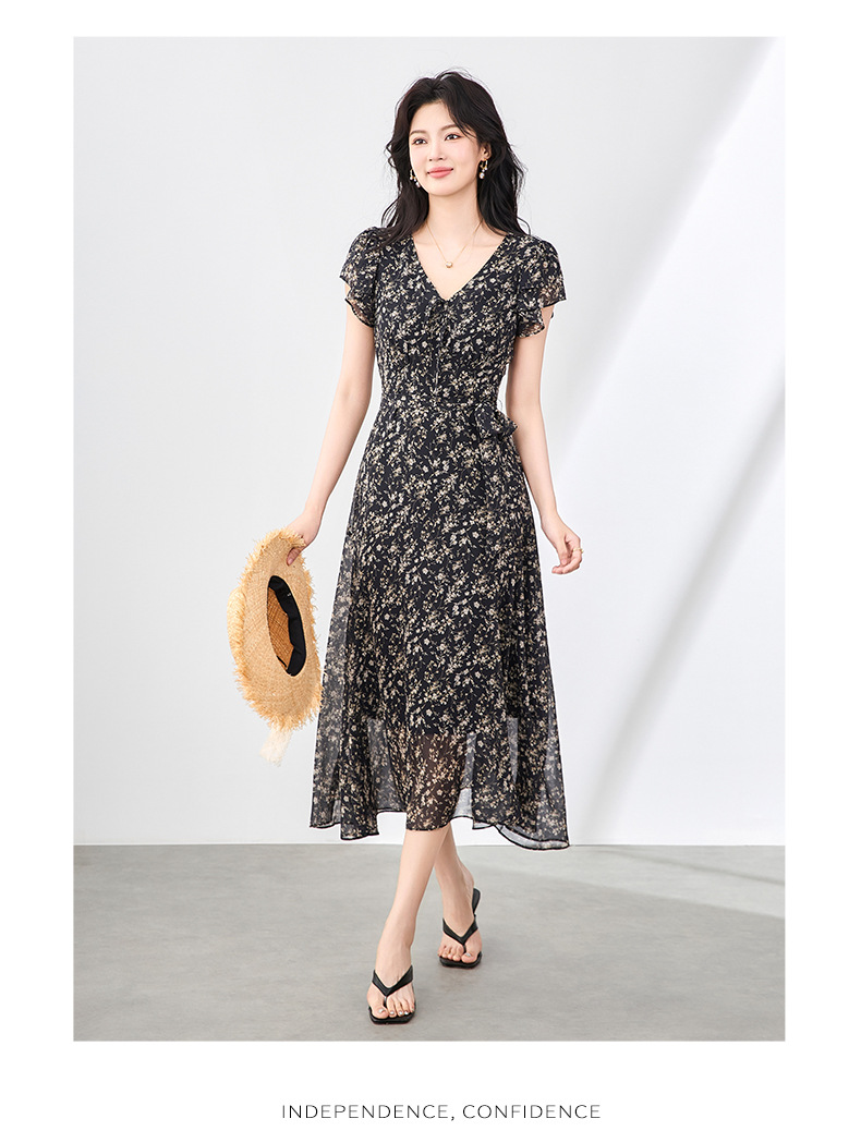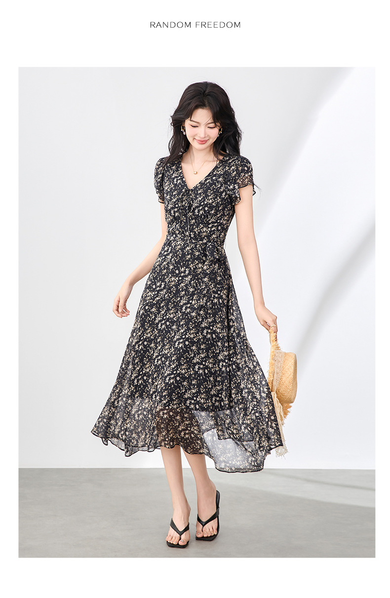 「高货wl」全新升级【铂金会员293/天猫399/差价106】(01146)洛诗琳法式浪漫复古印花连衣裙2025显瘦V领收腰大摆碎花裙wl01146