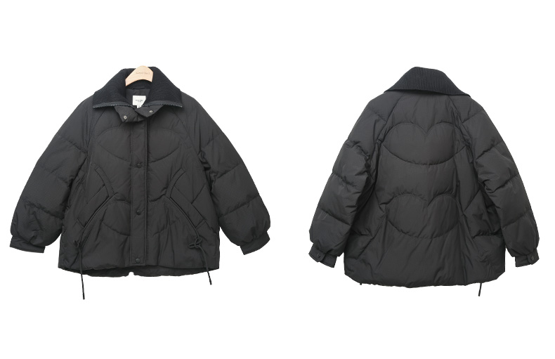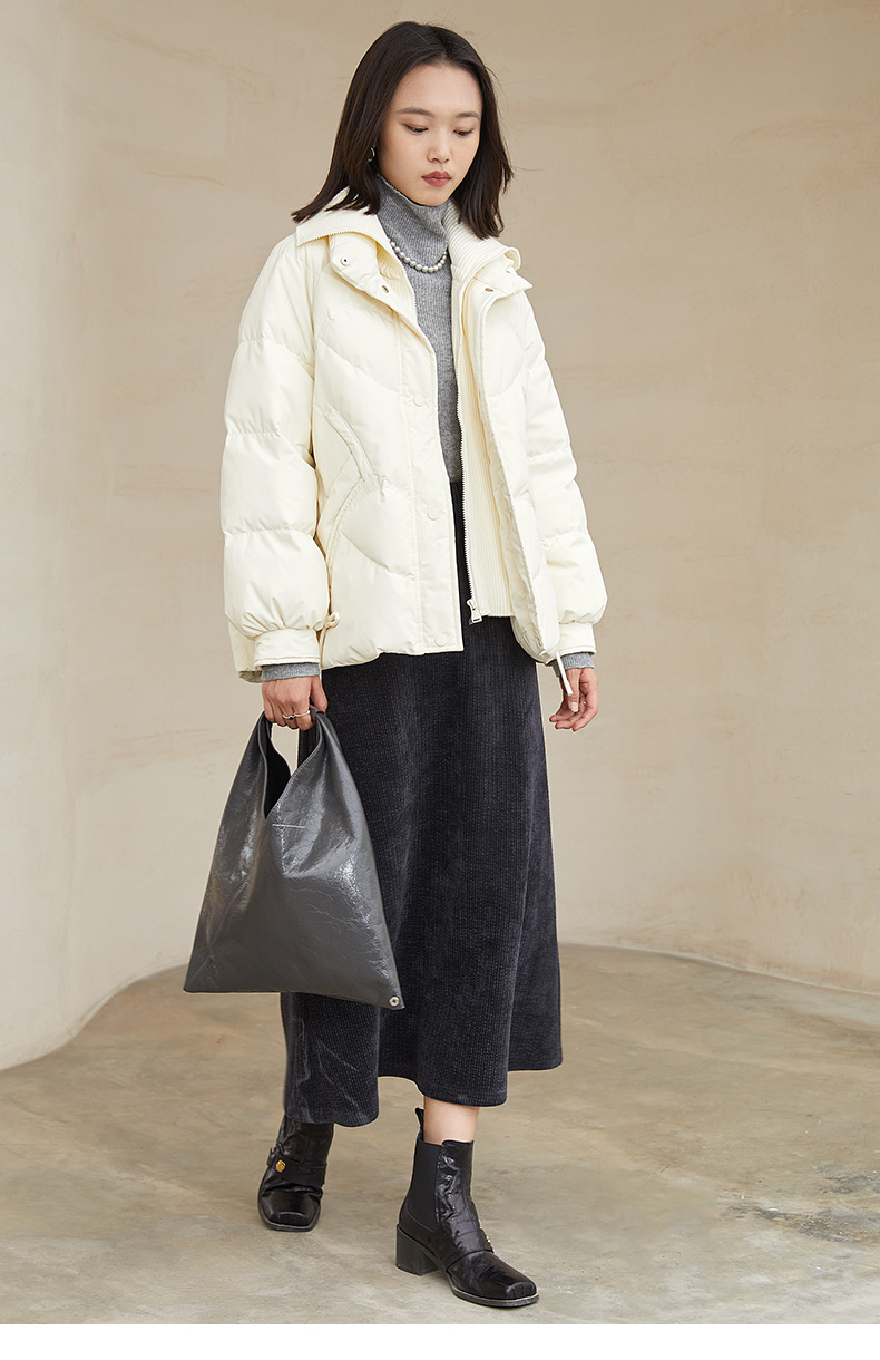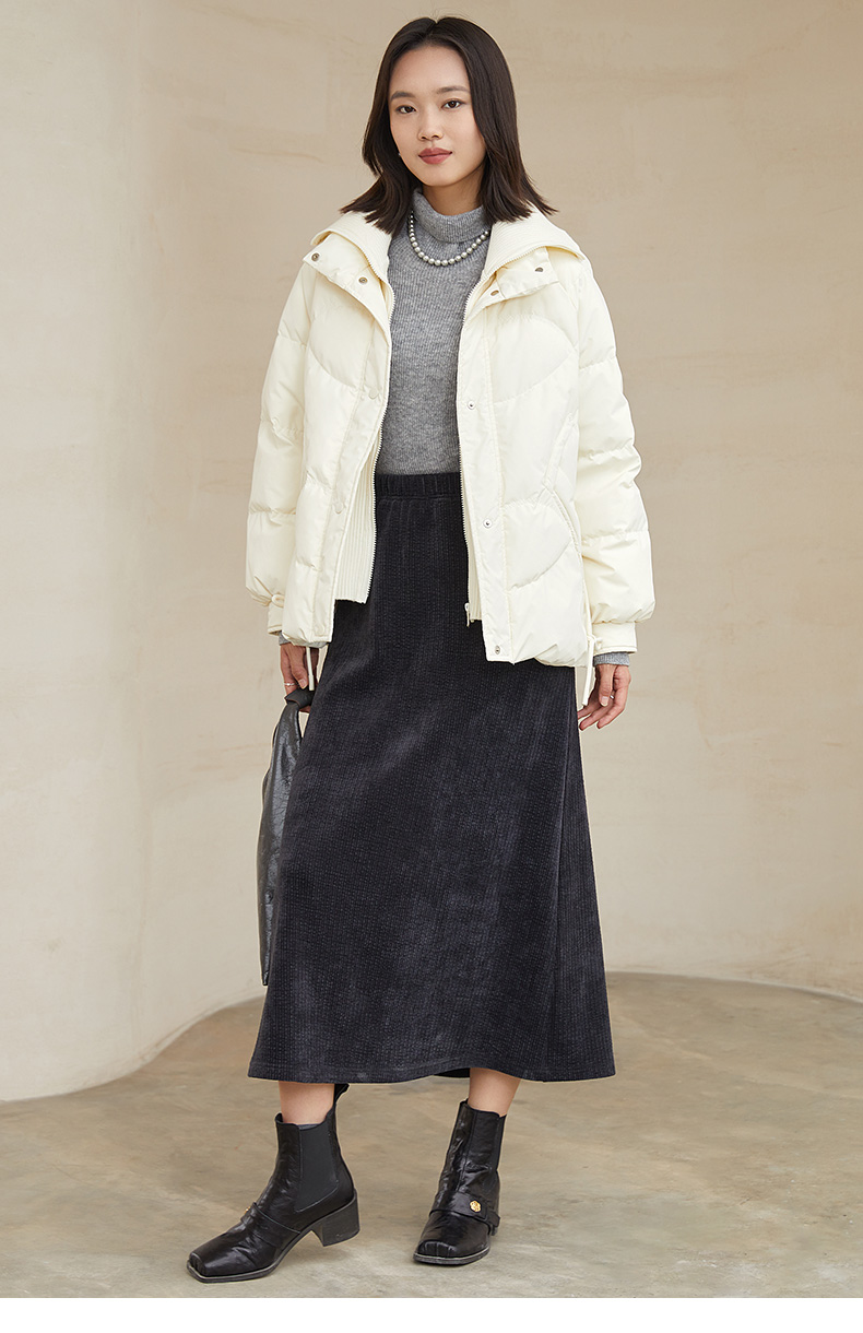 黑色灯芯绒领短款羽绒服,爱心绗缝设计 + 抽绳收腰 + 多口袋,解锁冬日出街的甜酷气质与保暖刚需穿搭