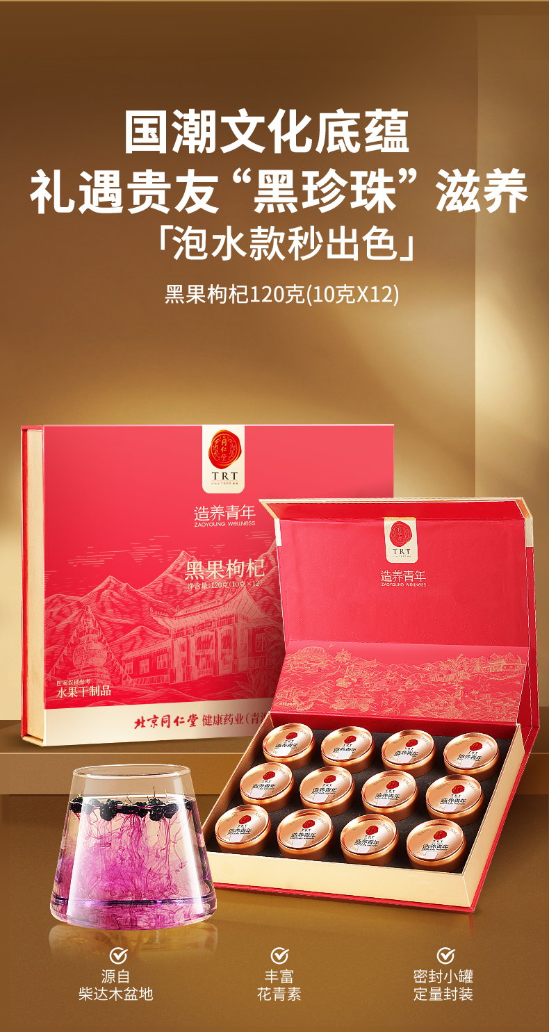 【正宗同仁堂品牌】北京同仁堂 黑果枸杞-120克(10克×12)牛头果 密封锁鲜 匠心传承SY