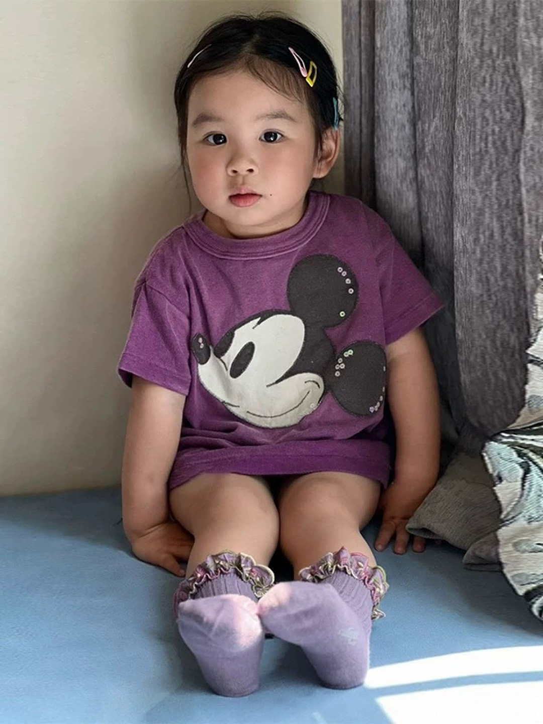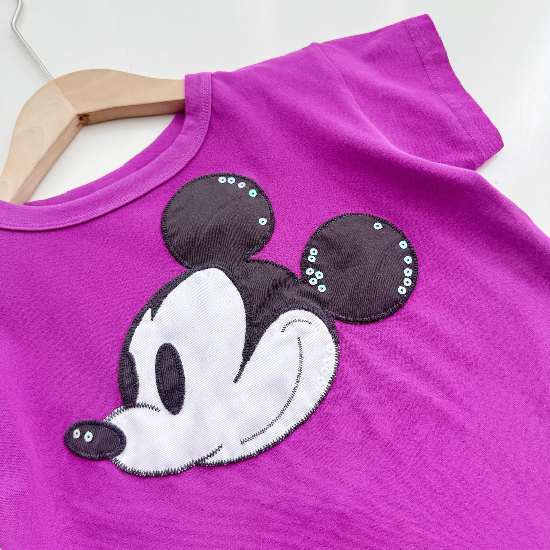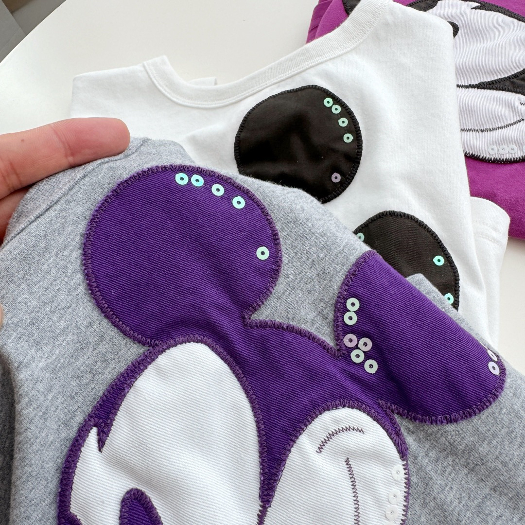 ✅正面是超显眼的可爱米奇头像,给人感觉是简洁又不是童趣感,搭配亮片 就是很吸睛一下子就抓住目光~