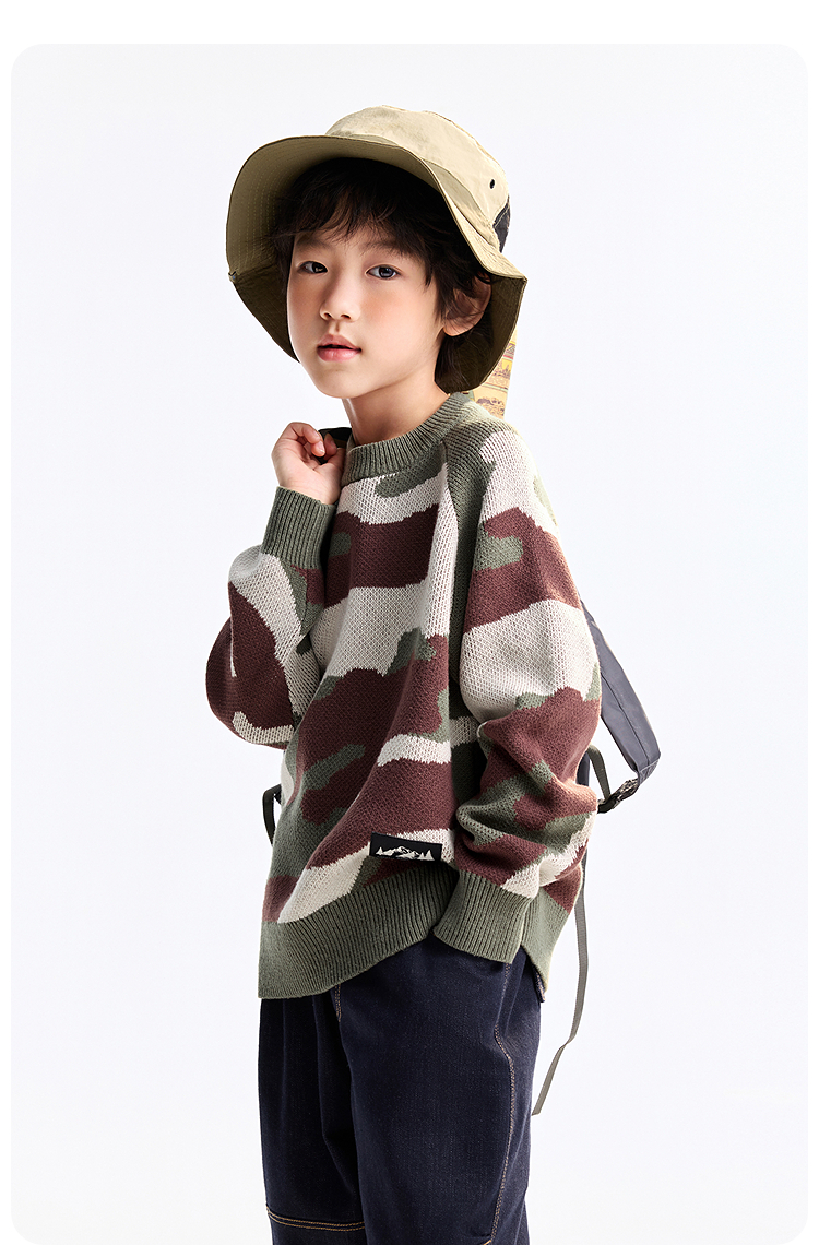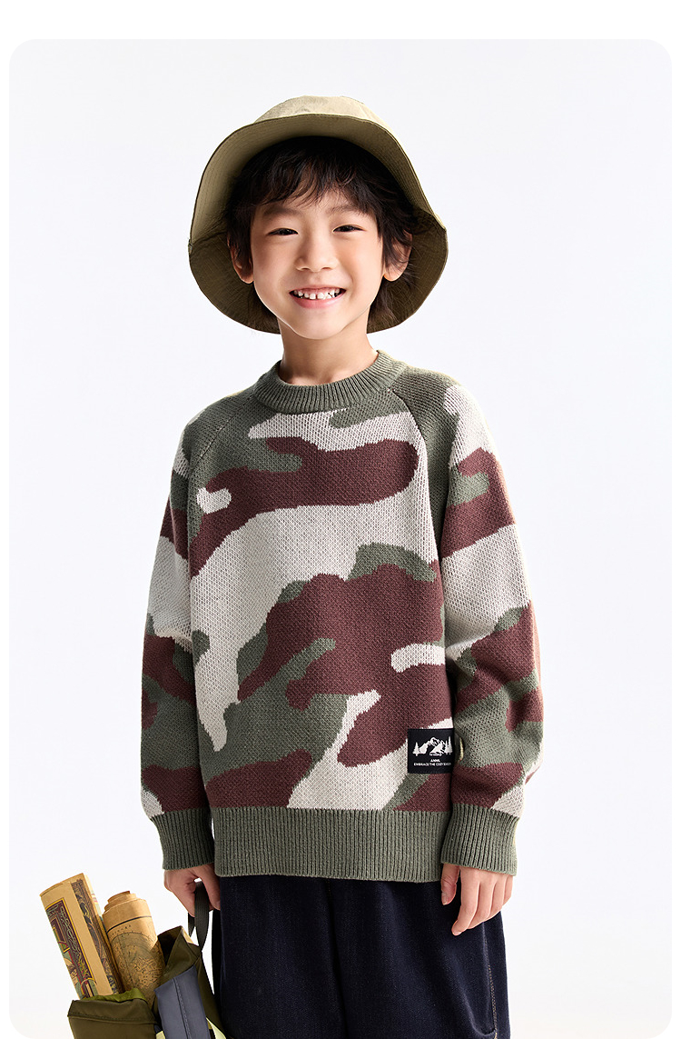 【炫酷迷彩毛衣】男童圆领长袖针织衫冬季新款安奈儿童装EB544549