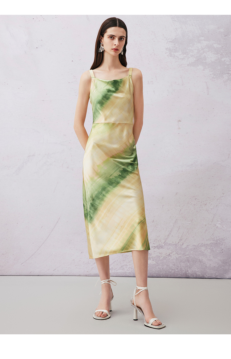 VIMAGE纬漫纪夏季新款晕染修身法式气质吊带连衣裙V2107727