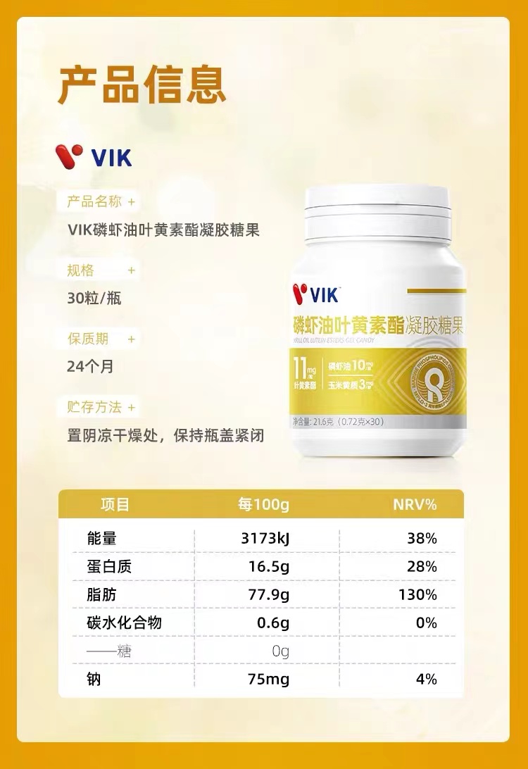 VIK磷虾油叶黄素酯凝胶软糖果