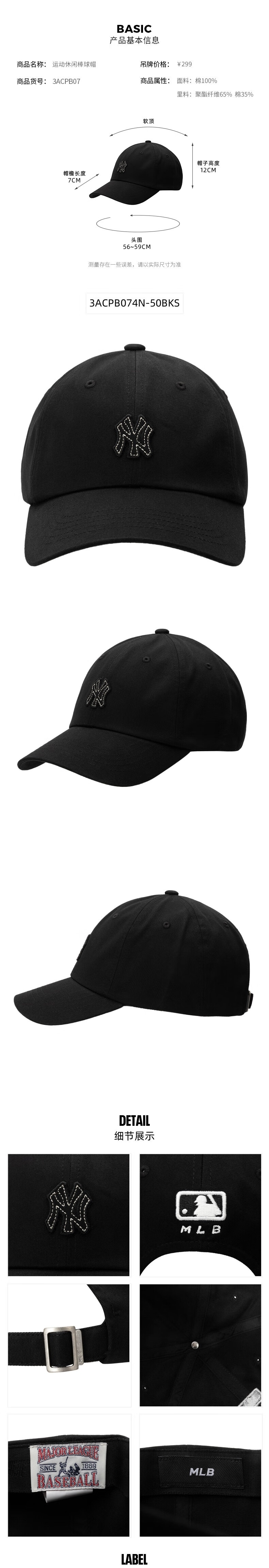 MLB 男女同款帽子 3ACPB074N-50BKS