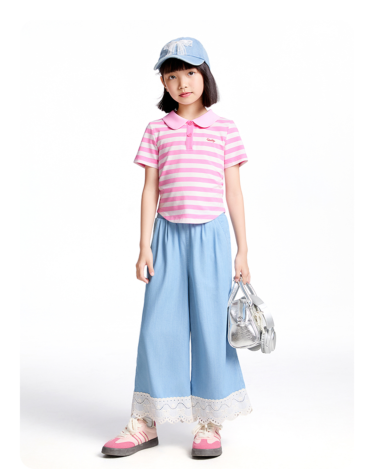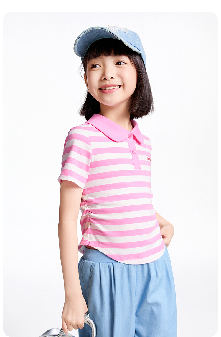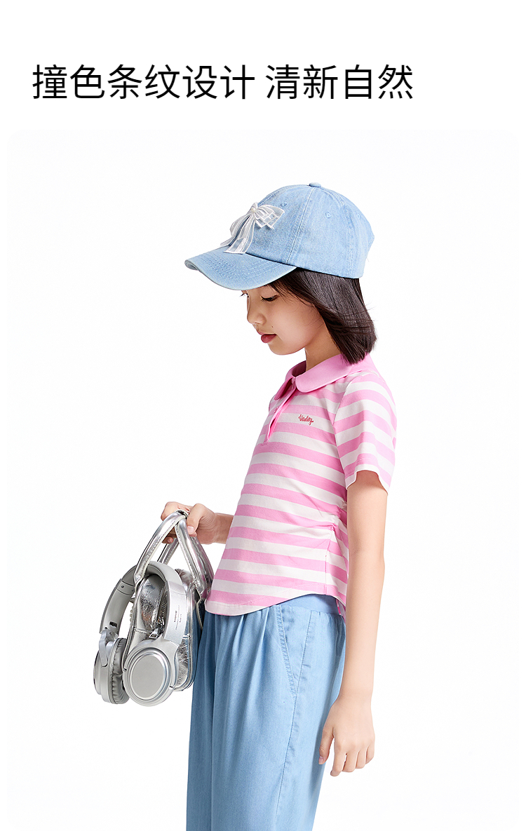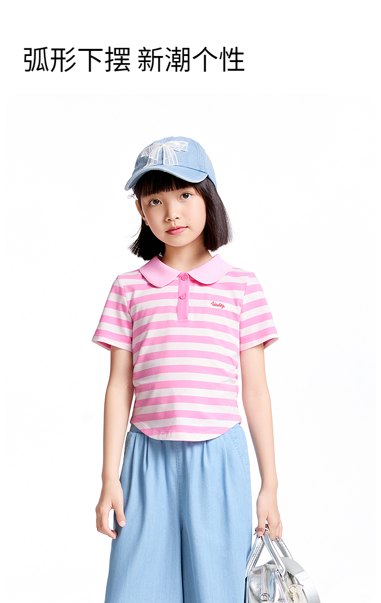 【实体店同款】女童翻领短袖针织衫夏季新款安奈儿童装AG521718