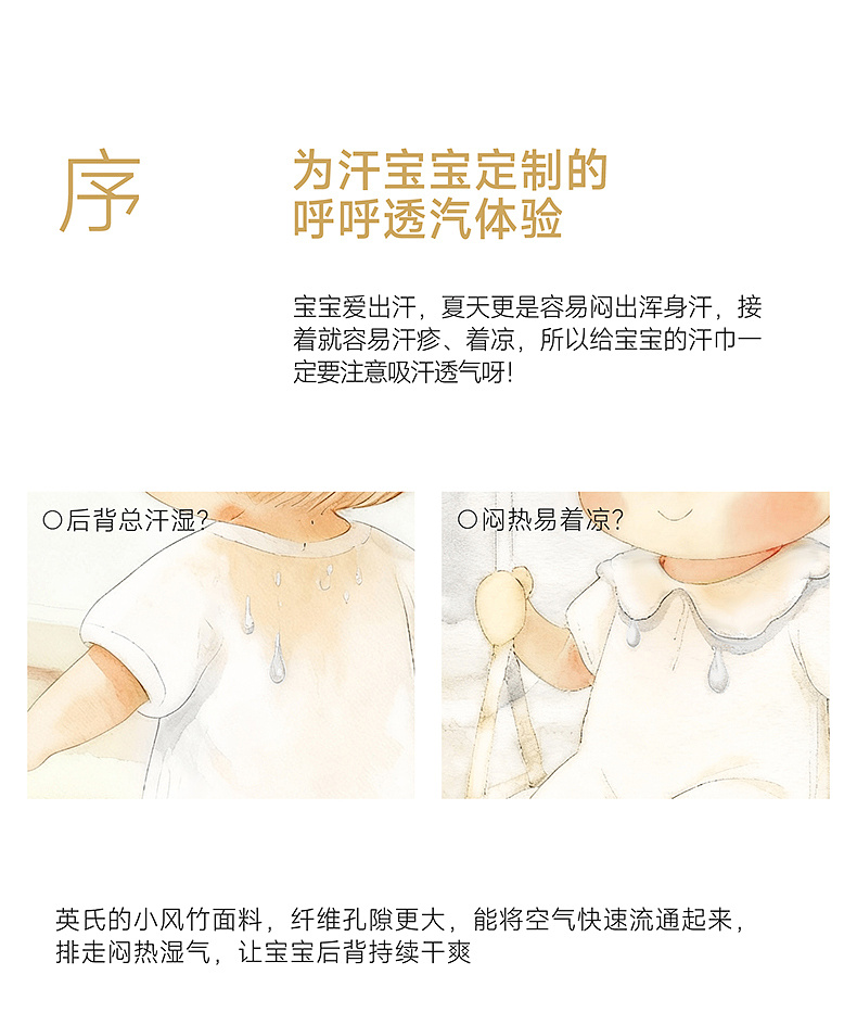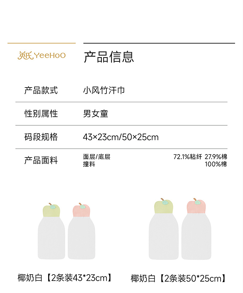【商场同款】英氏婴儿吸汗巾纱布巾a类抗菌宝宝垫背巾2条装新款