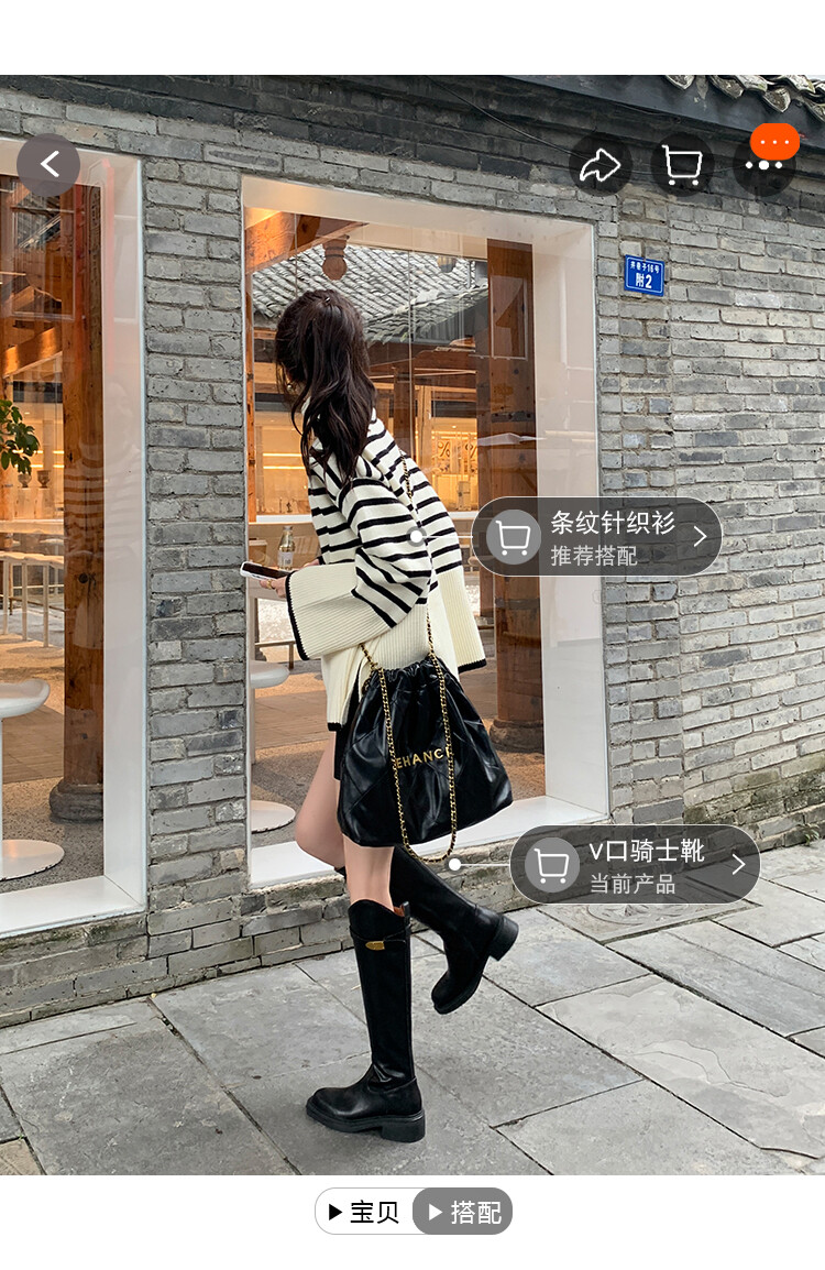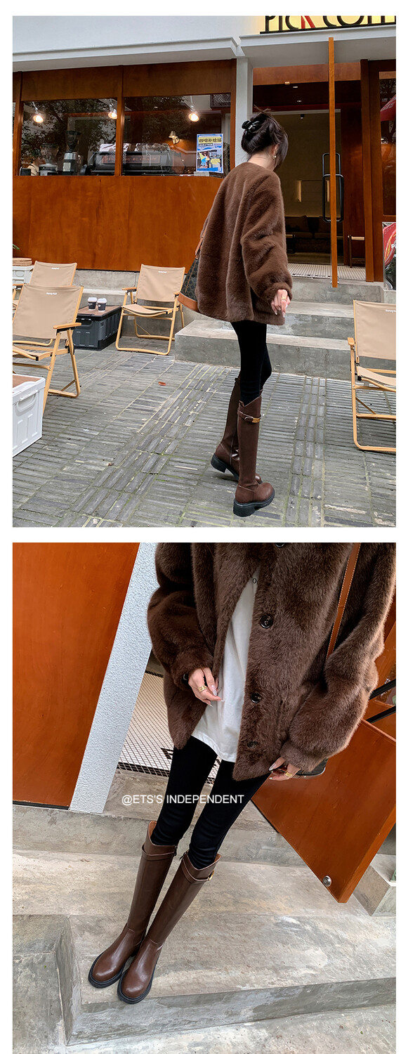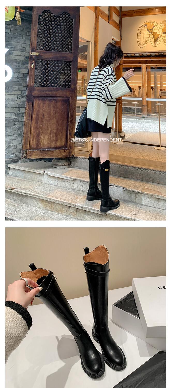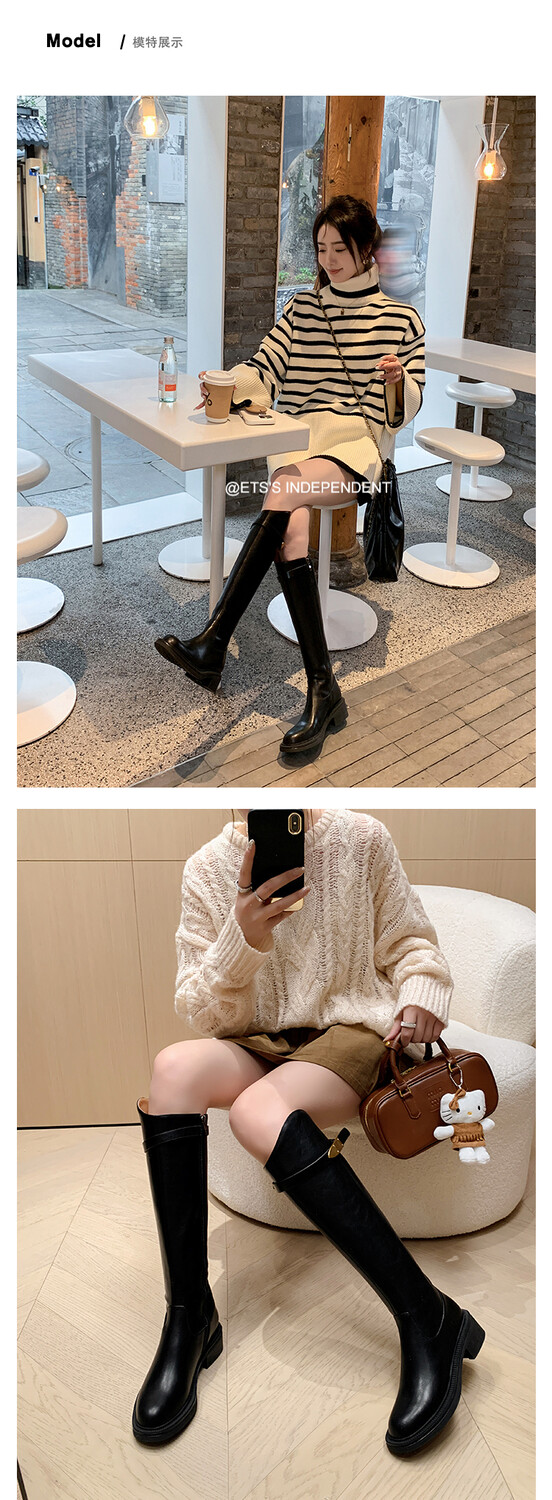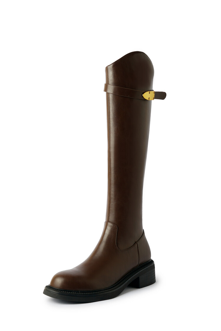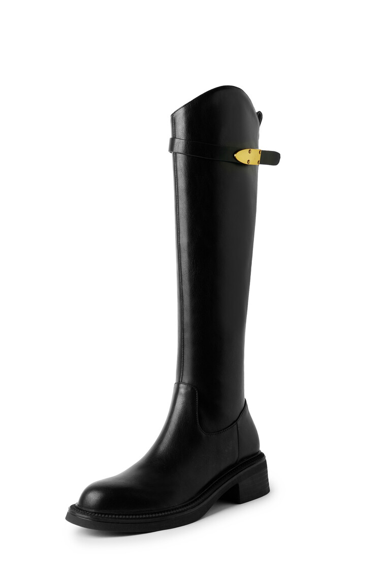 【预售7天】牛皮洋气百搭金属扣骑士靴秋冬圆头粗中跟V口真皮高筒长靴女DY&8405