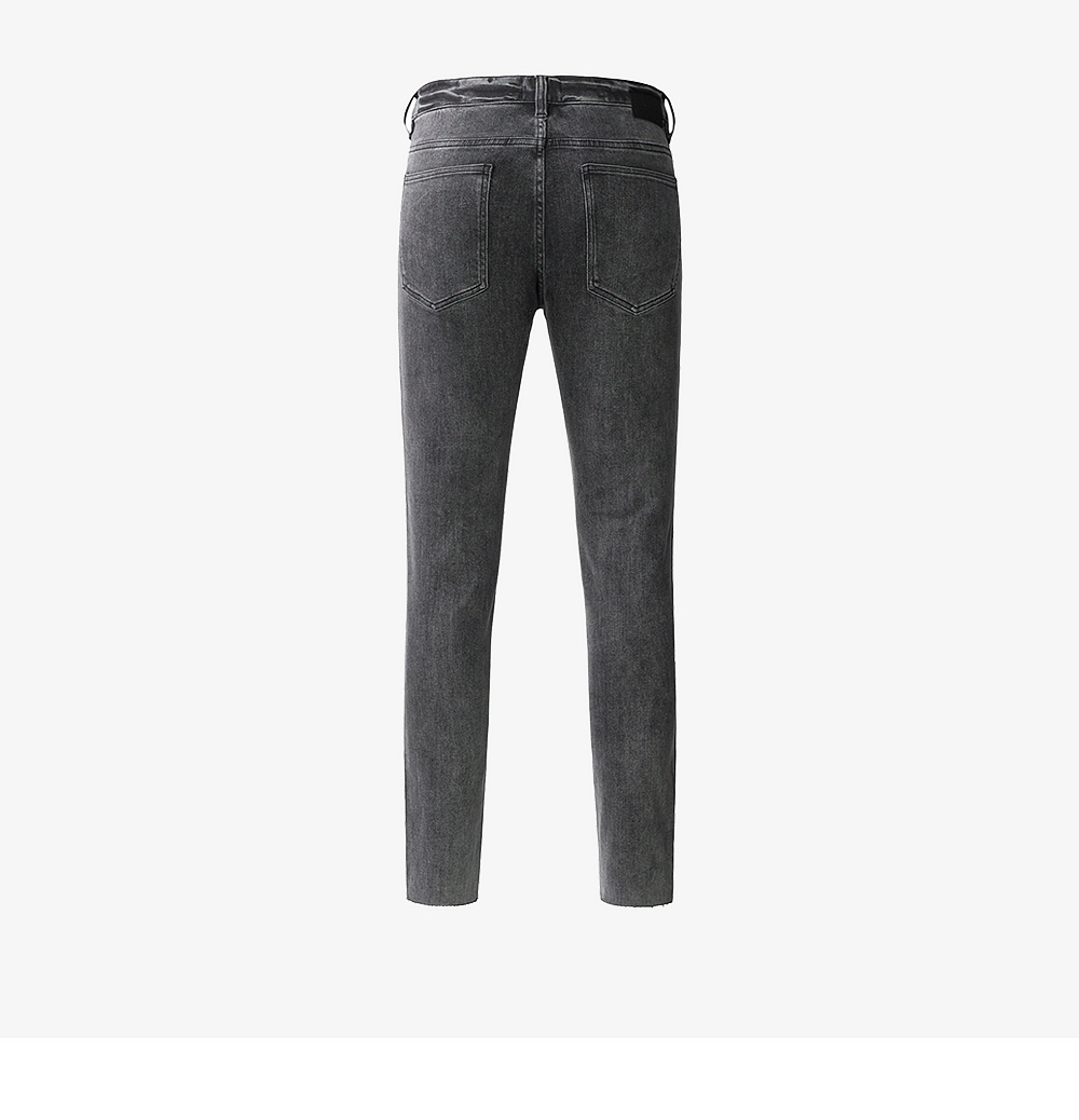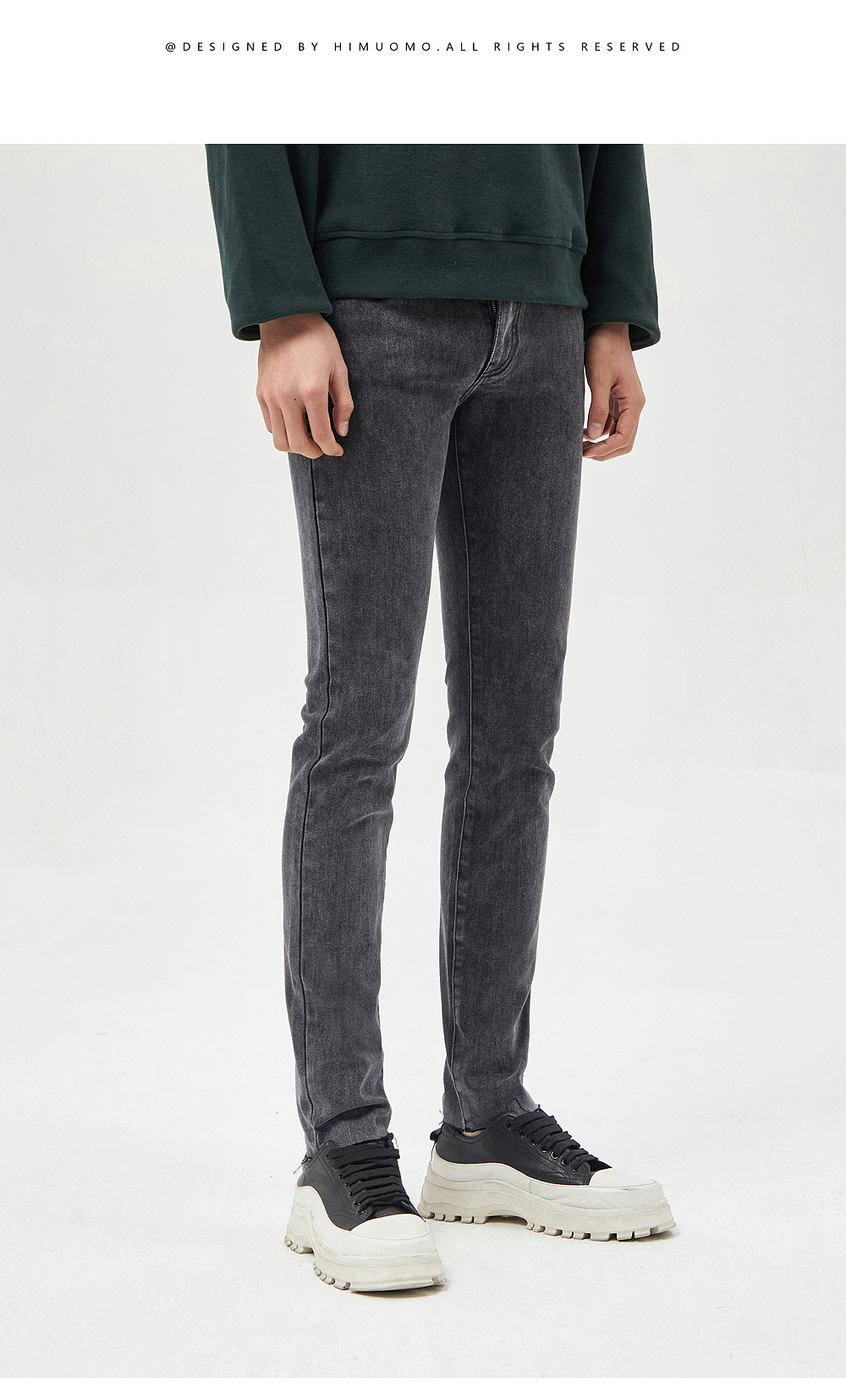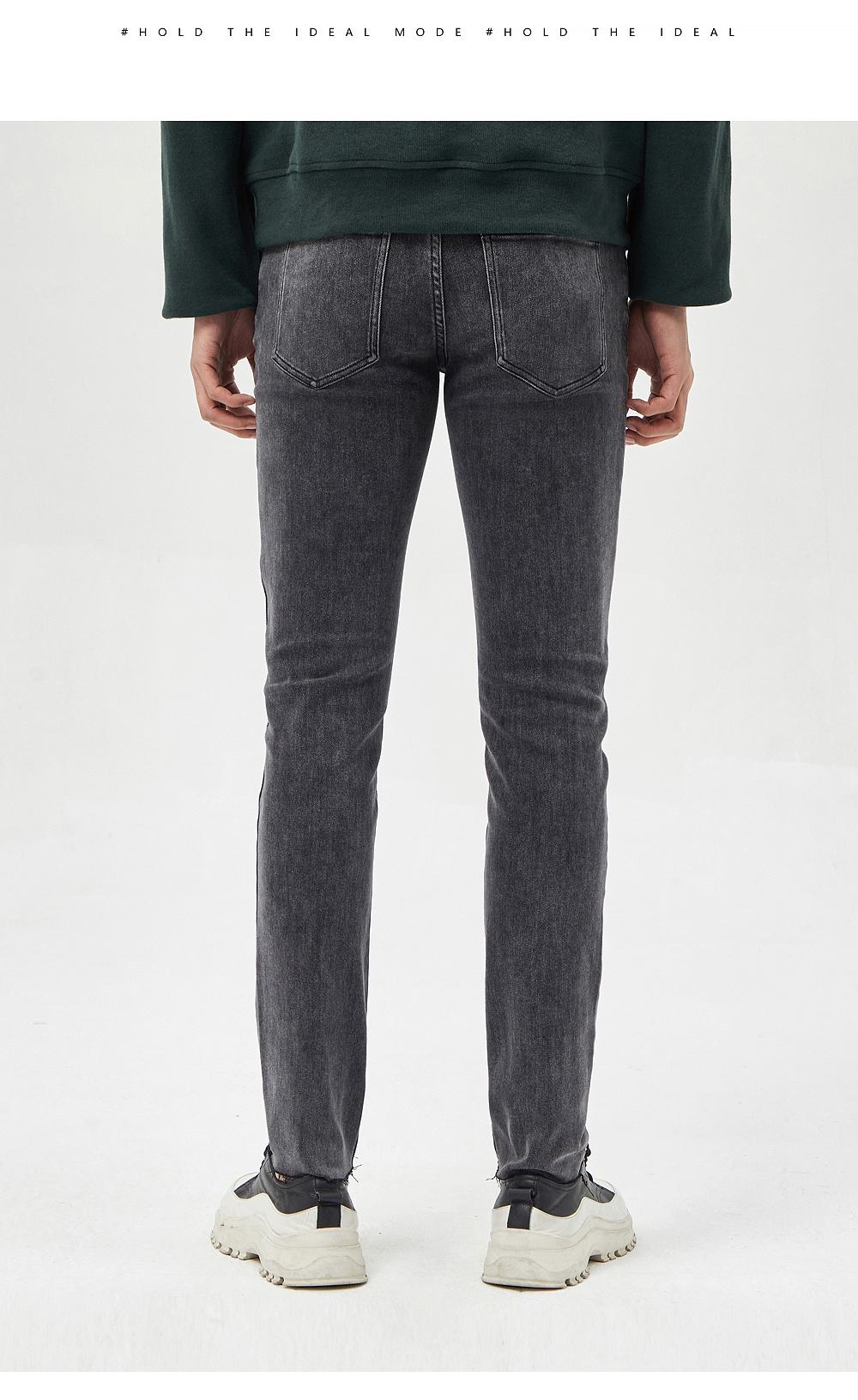 HIM漢崇 小脚洗水牛仔裤男士潮流修身微弹磨烂休闲长裤 秋季新款