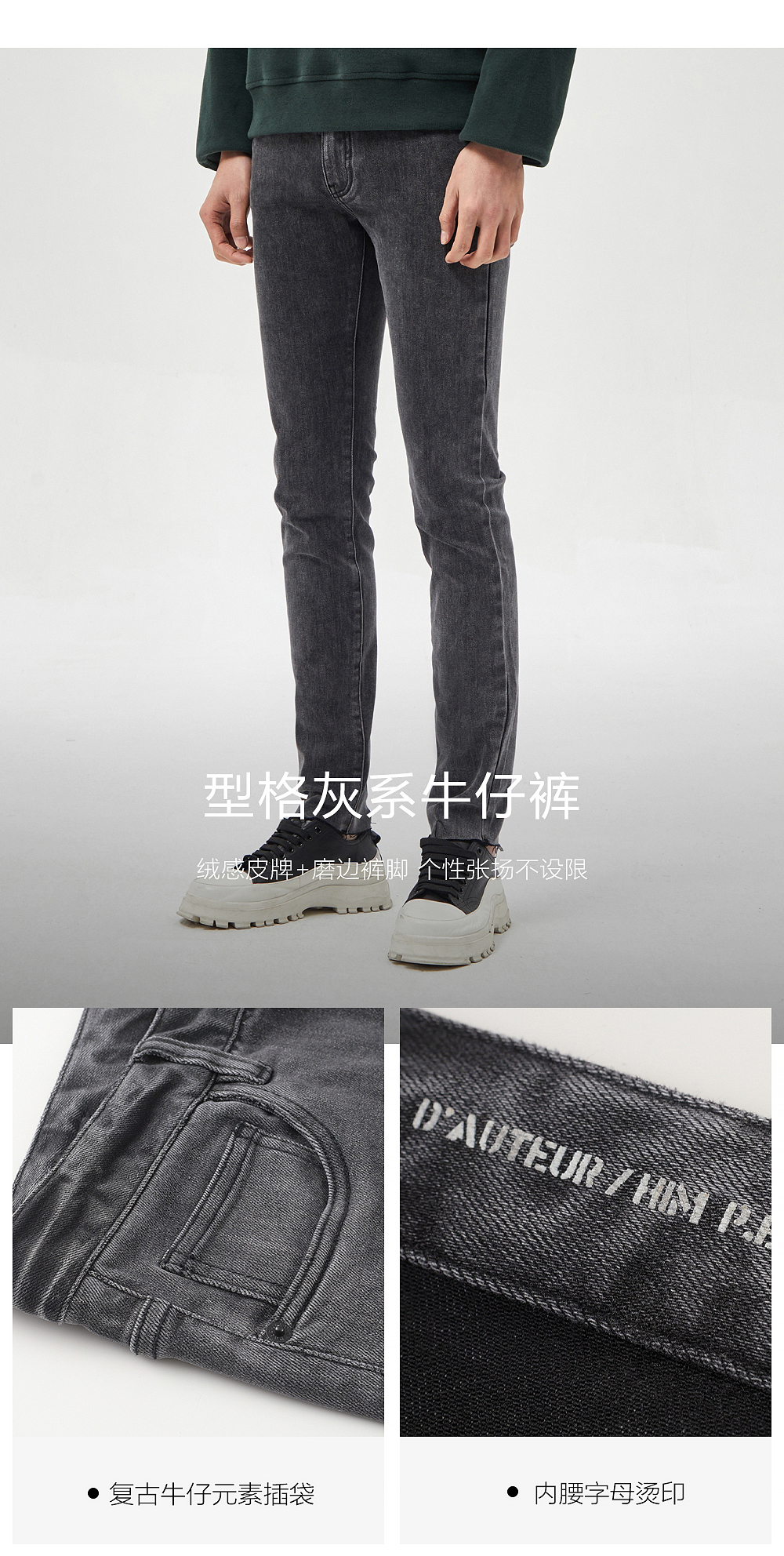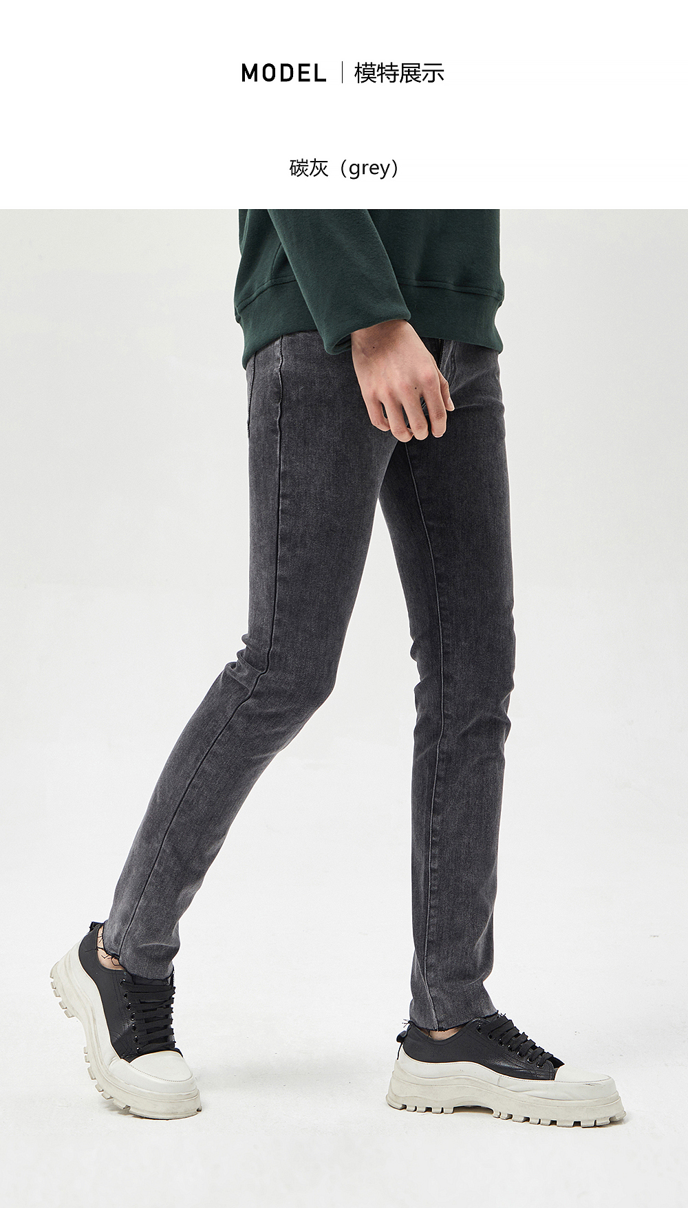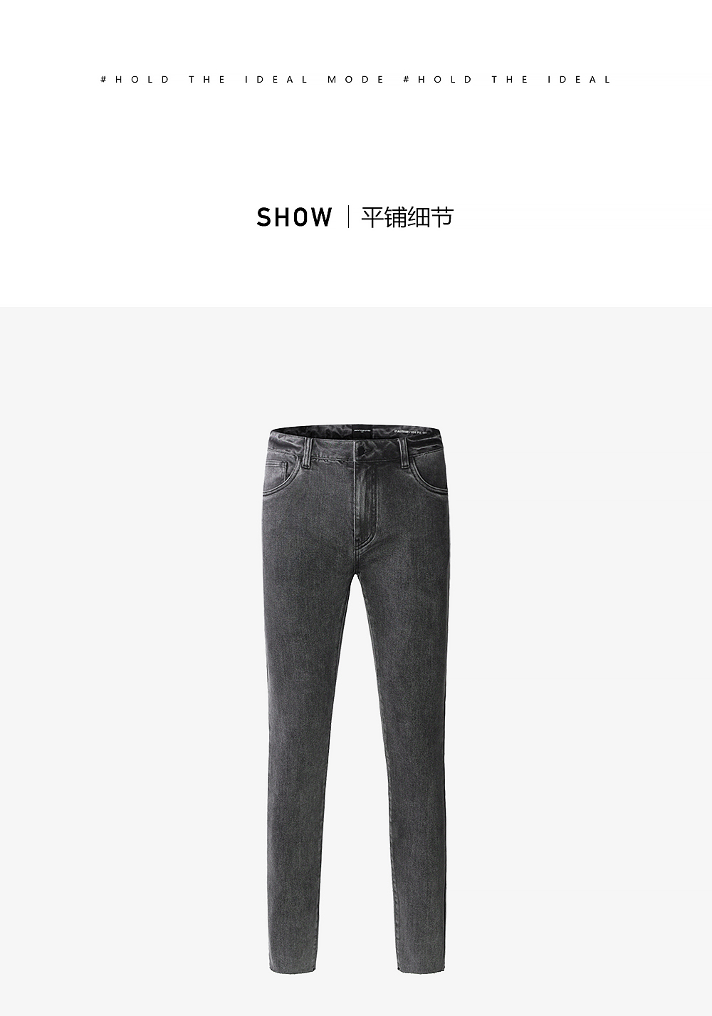 HIM漢崇 小脚洗水牛仔裤男士潮流修身微弹磨烂休闲长裤 秋季新款