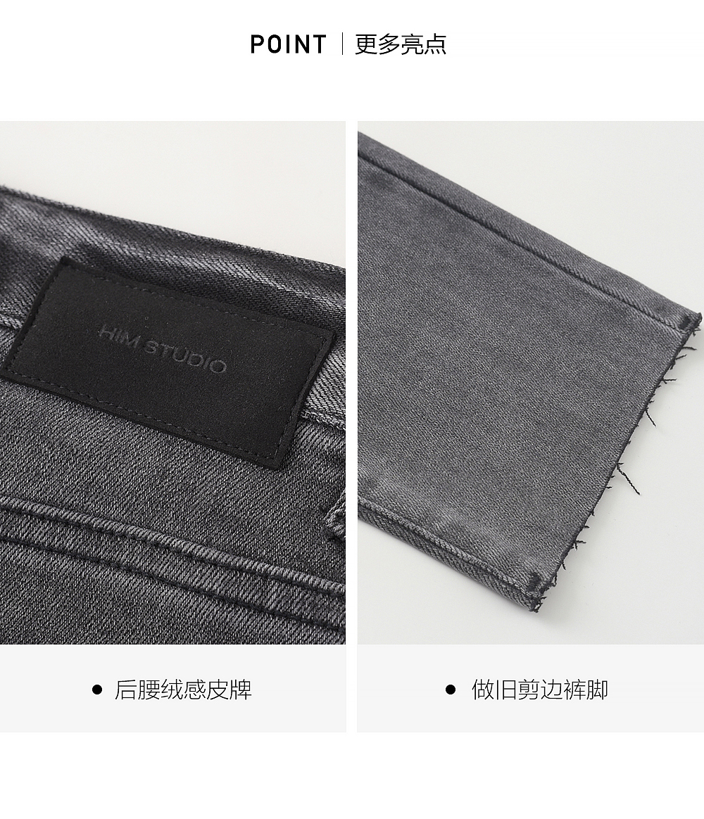 HIM漢崇 复古做旧洗水牛仔裤潮流高街舒适修身休闲裤男 2025秋季