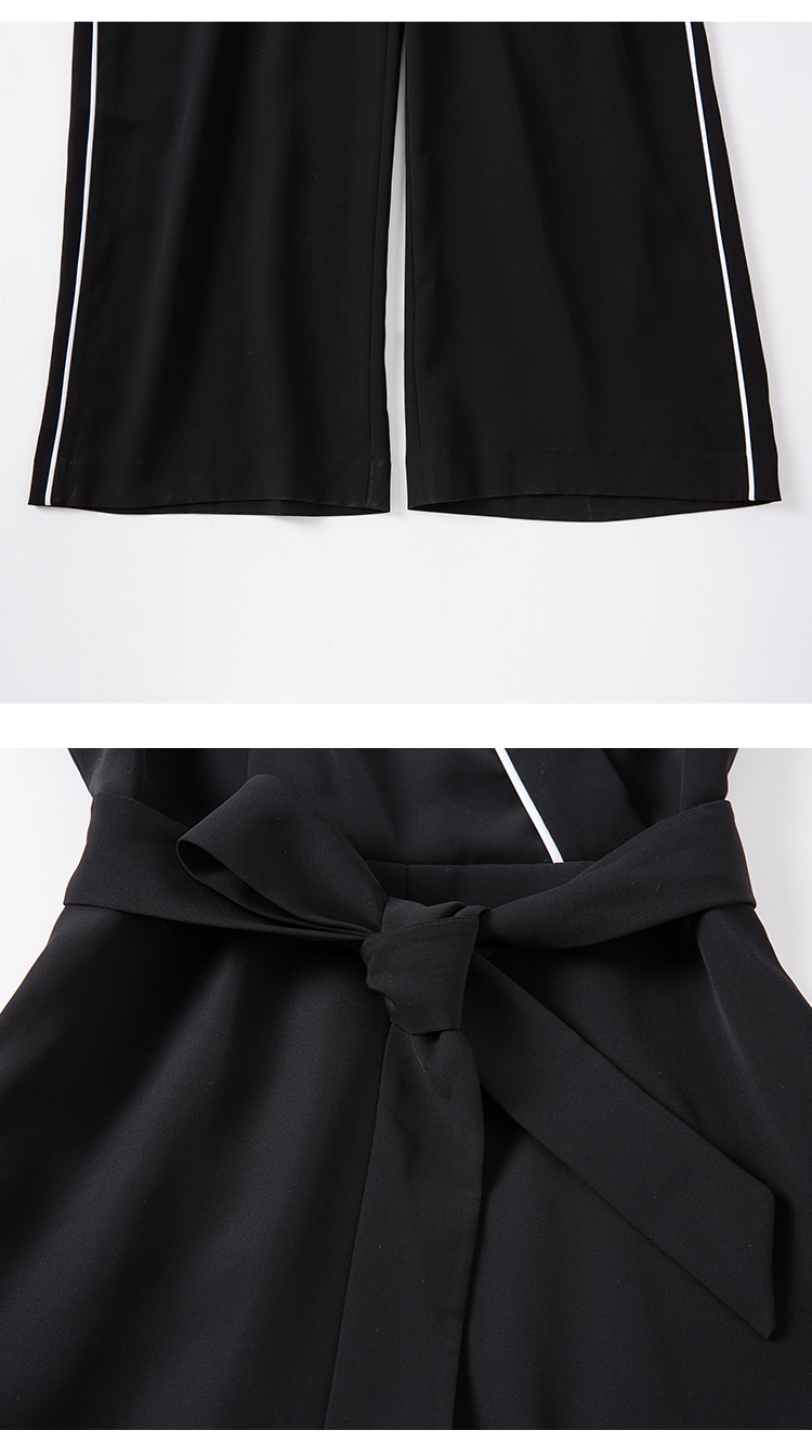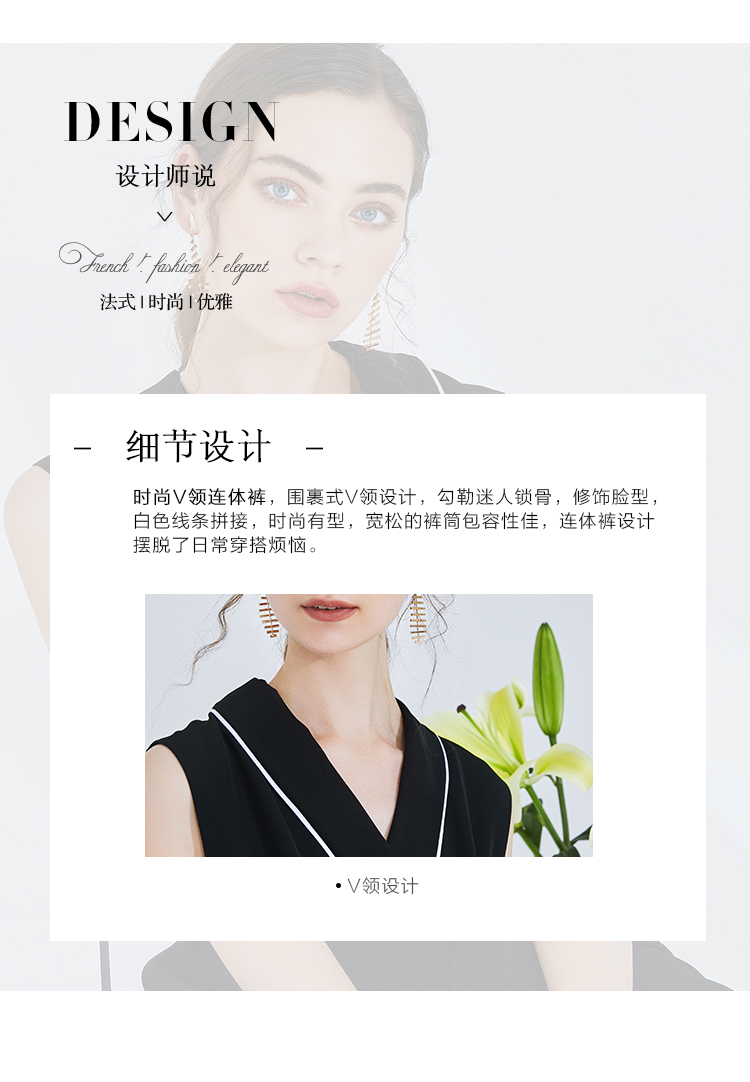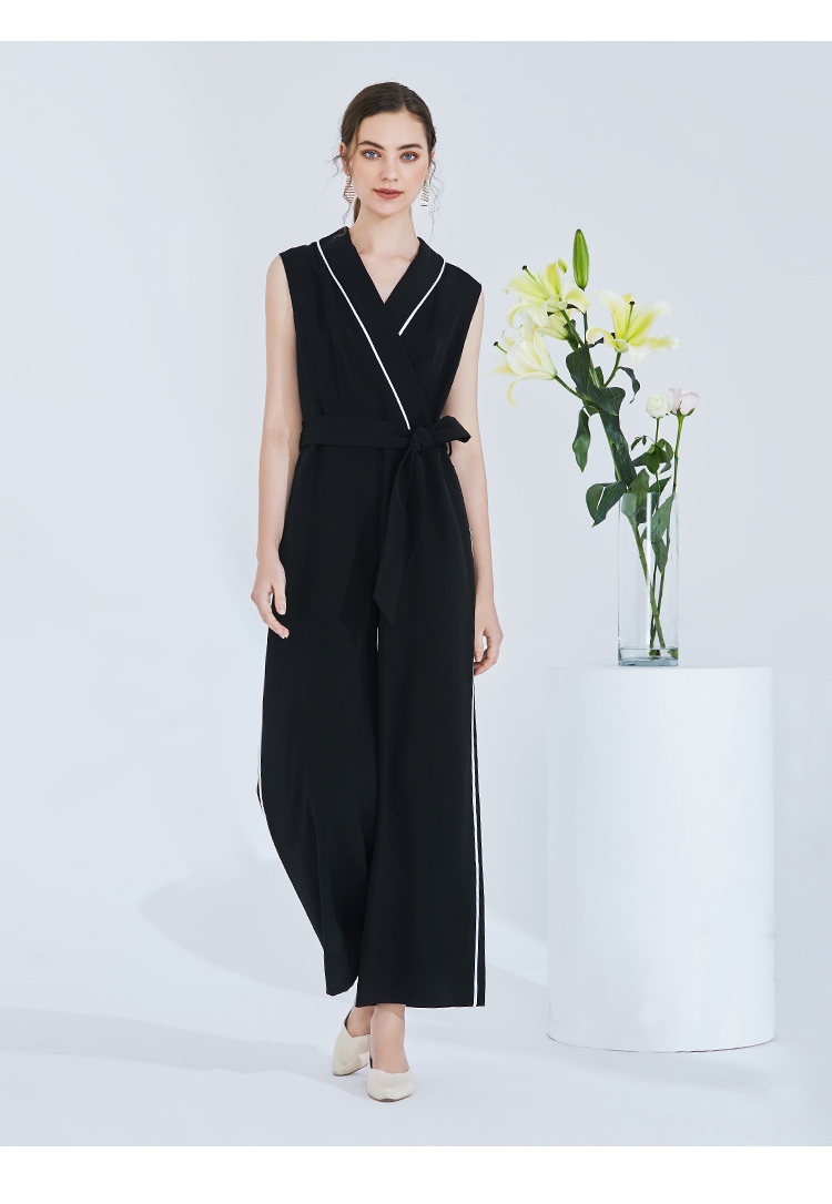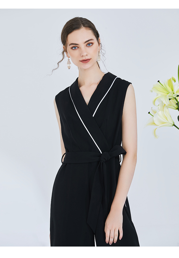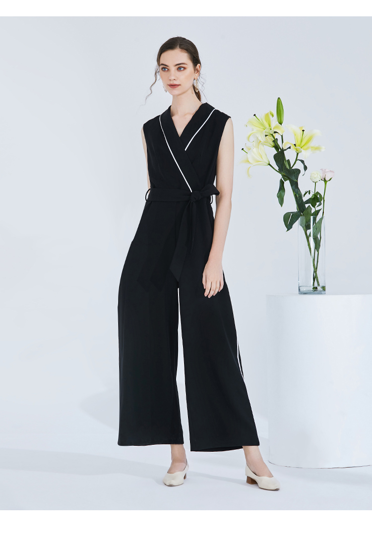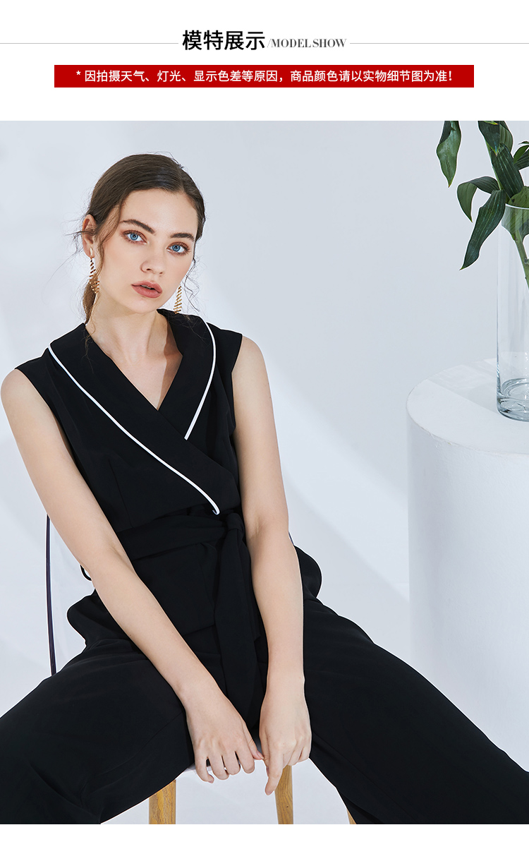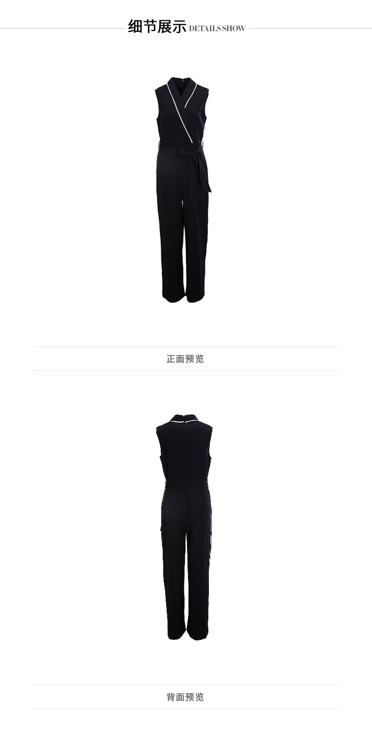 EITIE爱特爱女装春季白色线条拼接时尚V领无袖连体裤长裤5707436