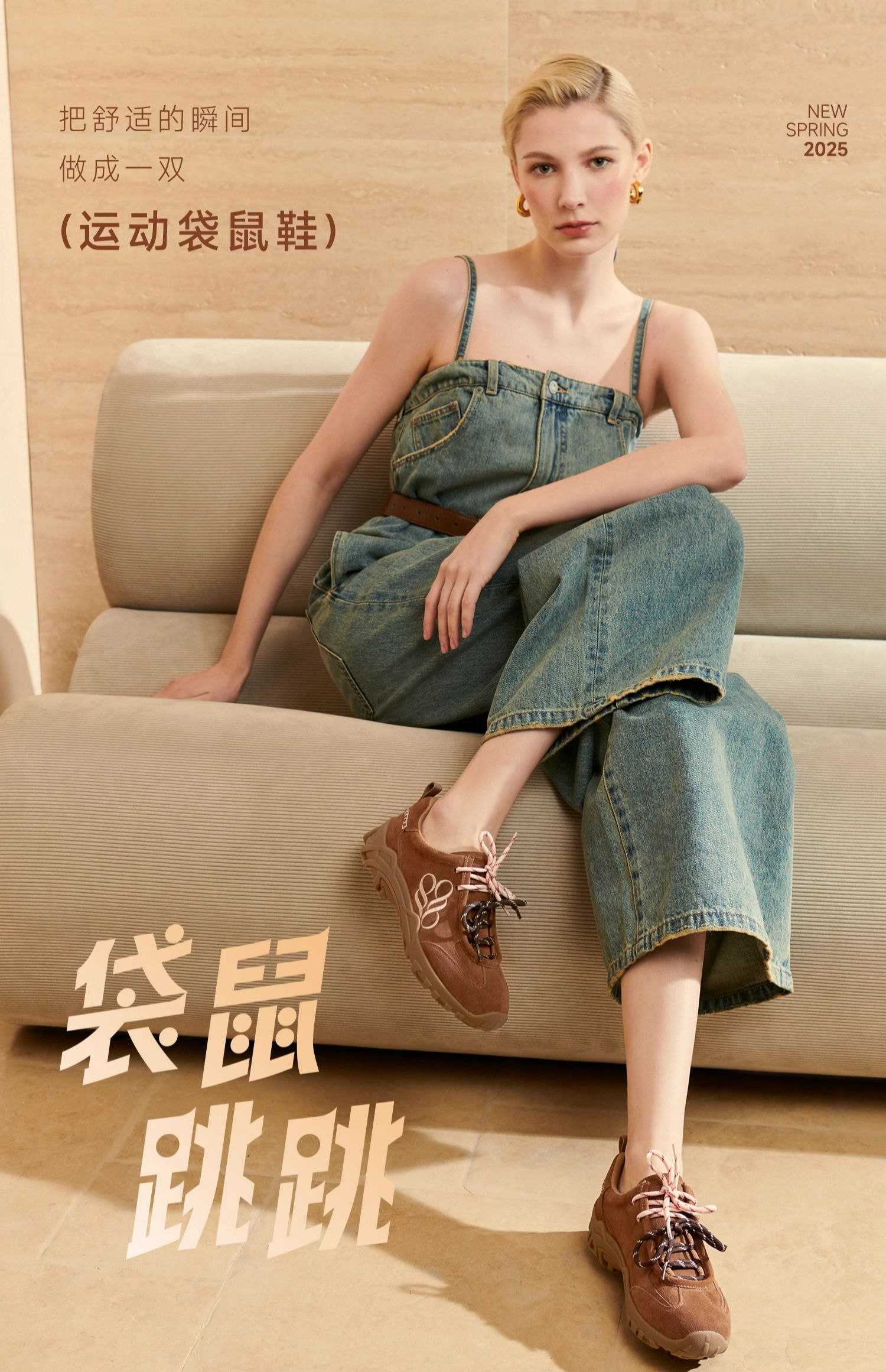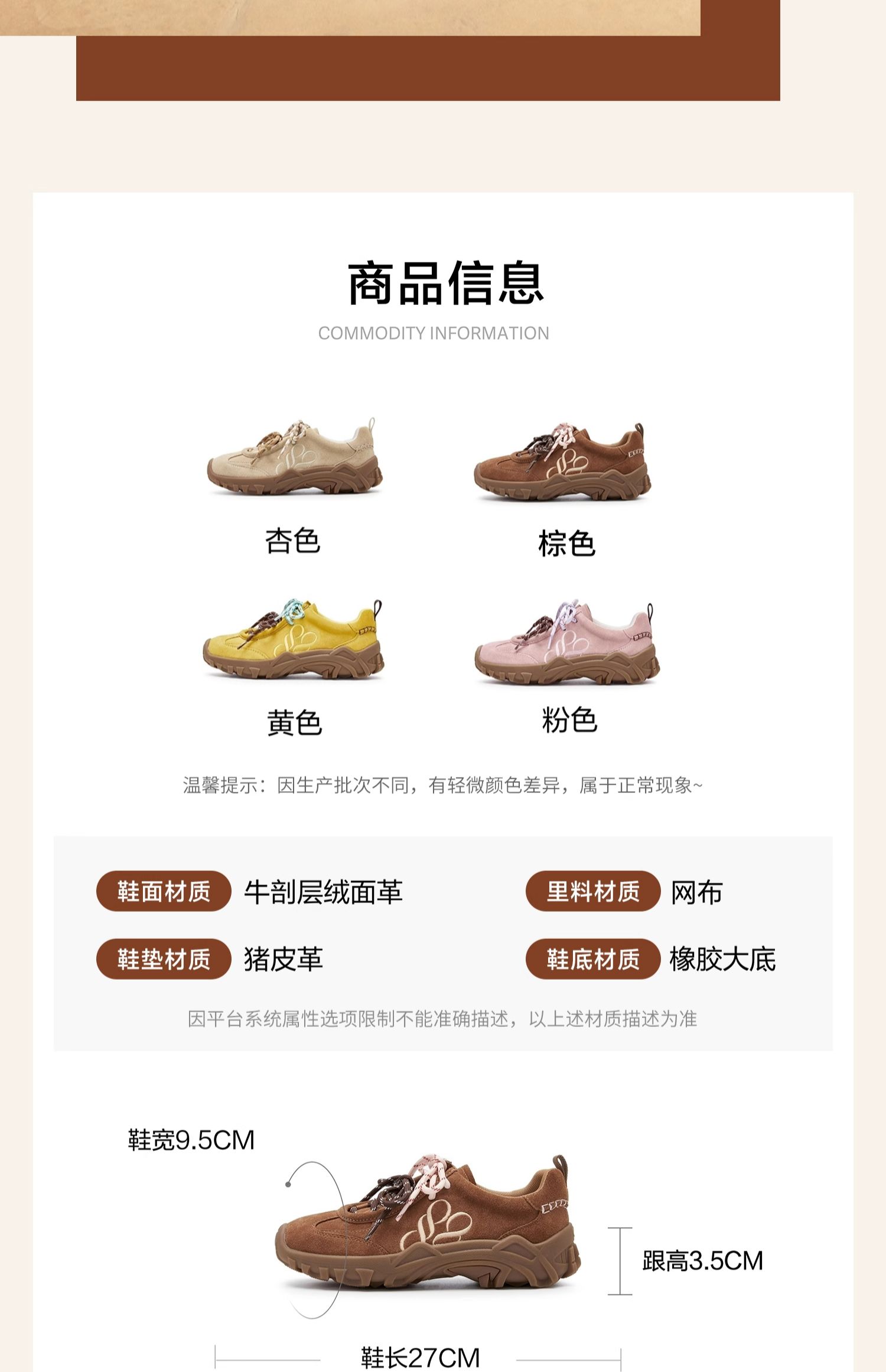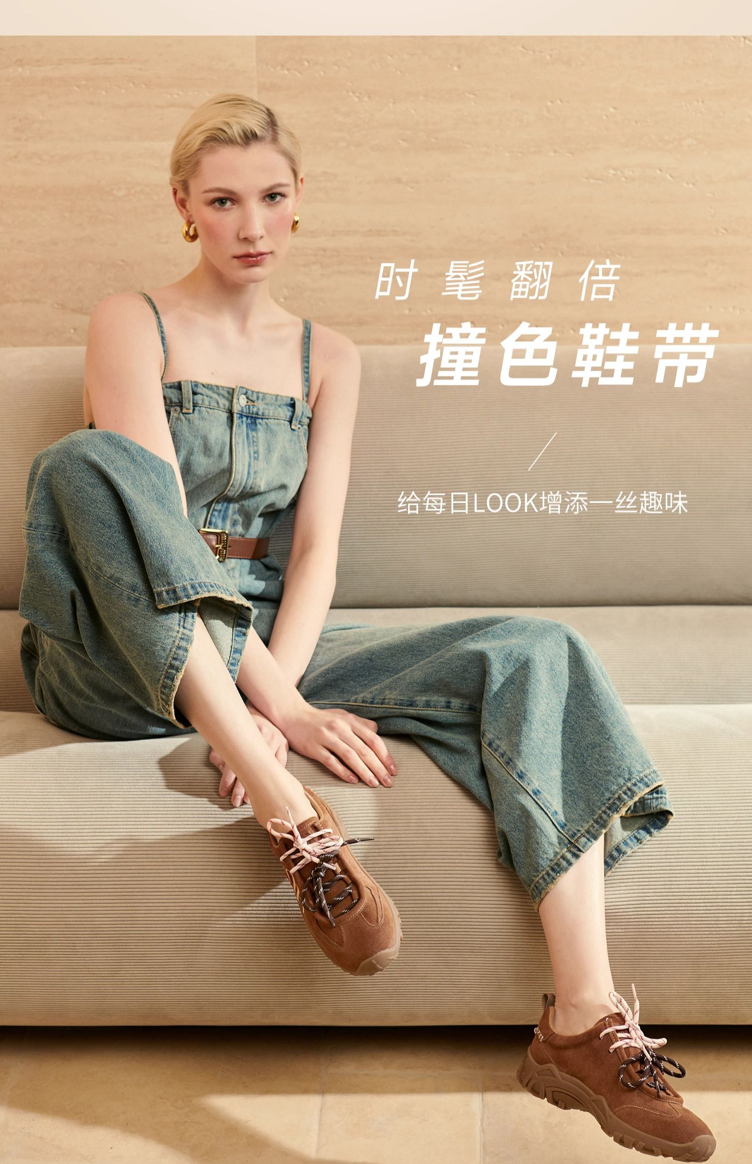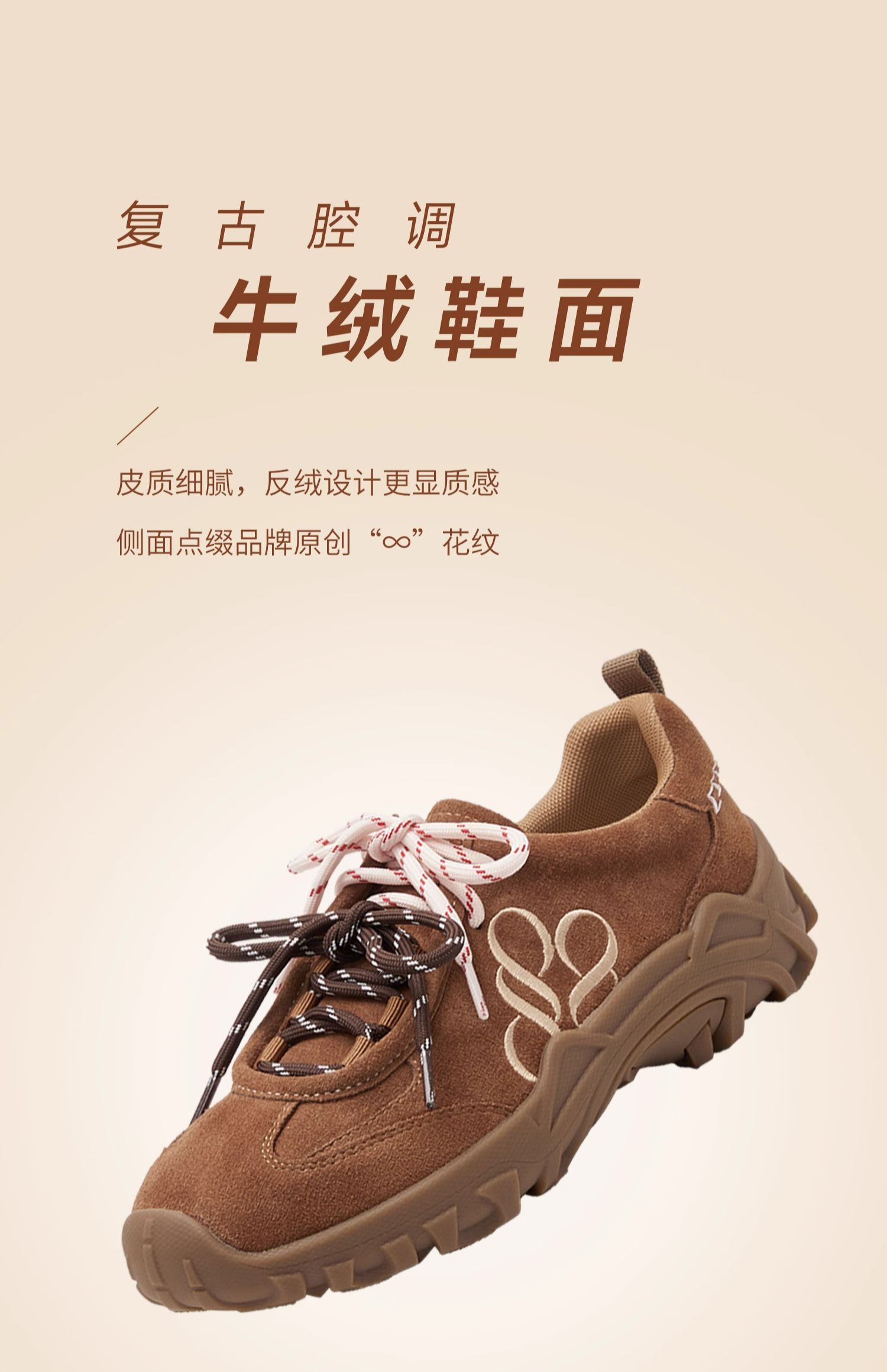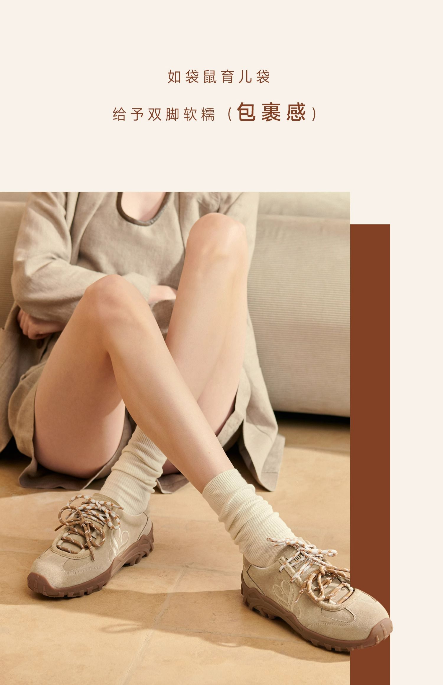 Joy&peace真美诗 董洁同款真美诗袋鼠跳跳2025春季新款复古厚底休闲鞋运动袋鼠鞋女