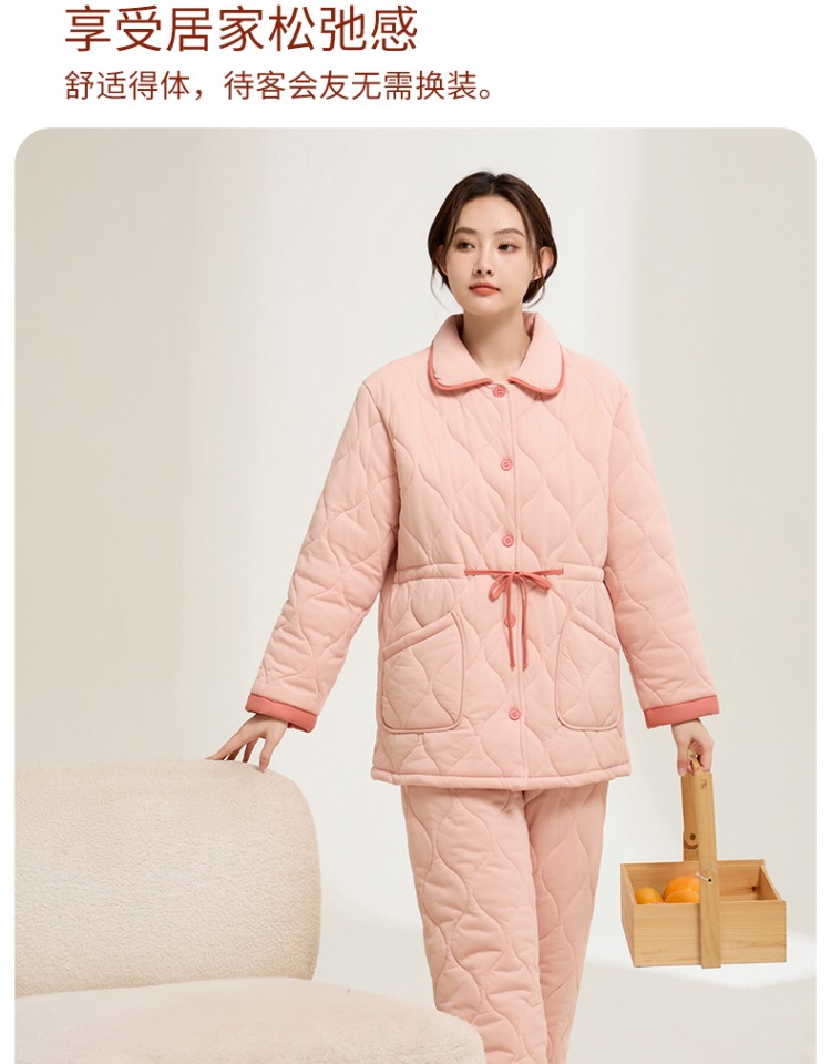 康妮雅女式长裤长袖开襟套装