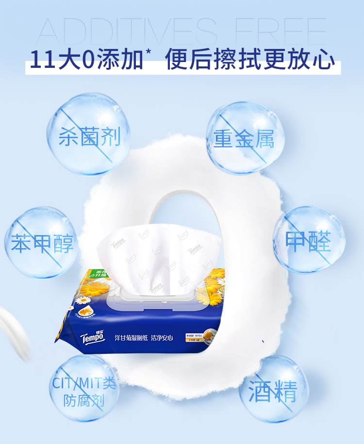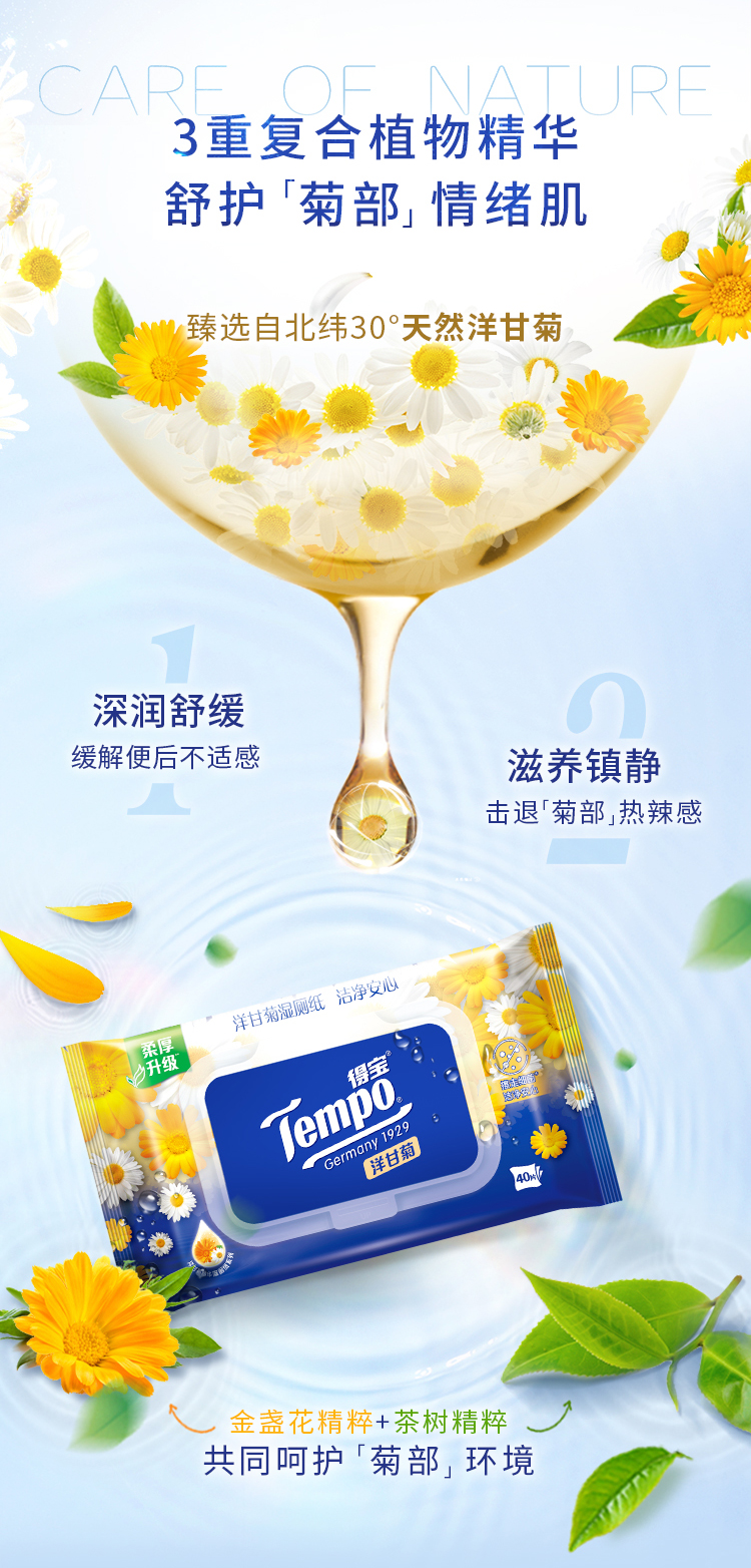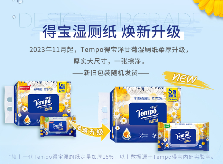 f『得宝Tempo』洋甘菊湿厕纸40片/包*5包 时刻净享呵护