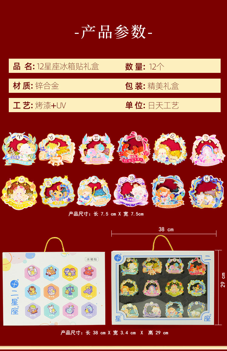 【十二星座金属流沙冰箱贴】创意磁吸国风纪念品文创礼盒套装国潮