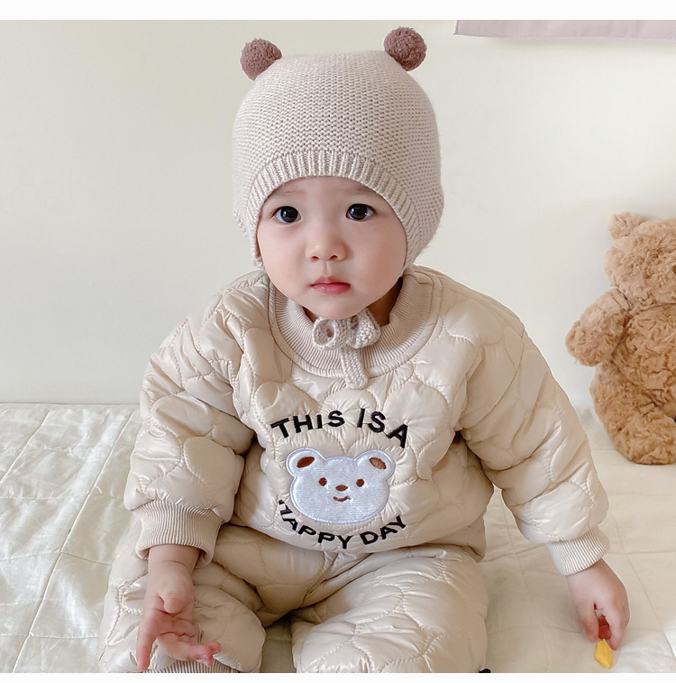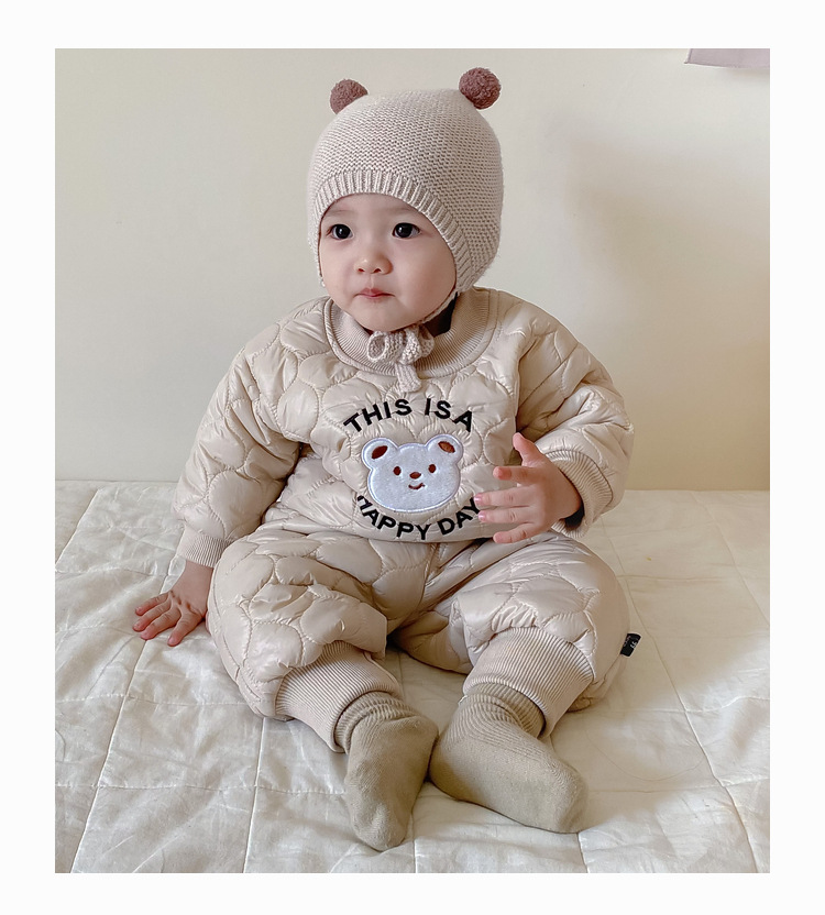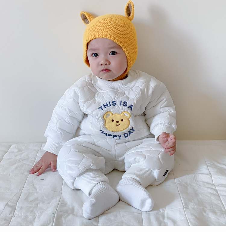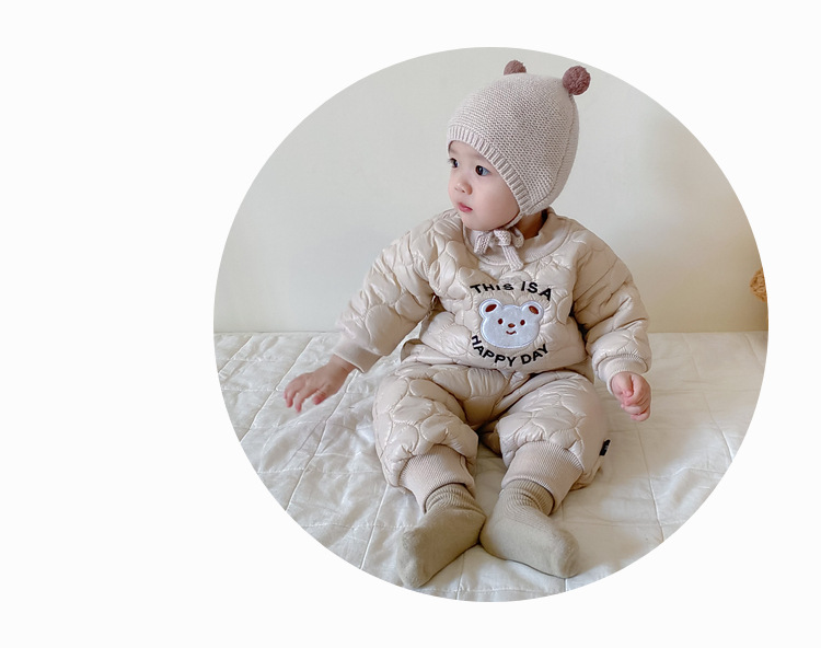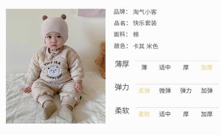 【韩版快乐套装!时尚舒适】婴儿衣服秋冬童装新生宝宝,0-3岁加厚套装男童套装,时尚卡通绗棉材质,温暖呵护新生宝宝肌肤,温暖加倍,舒适伴随成长lm