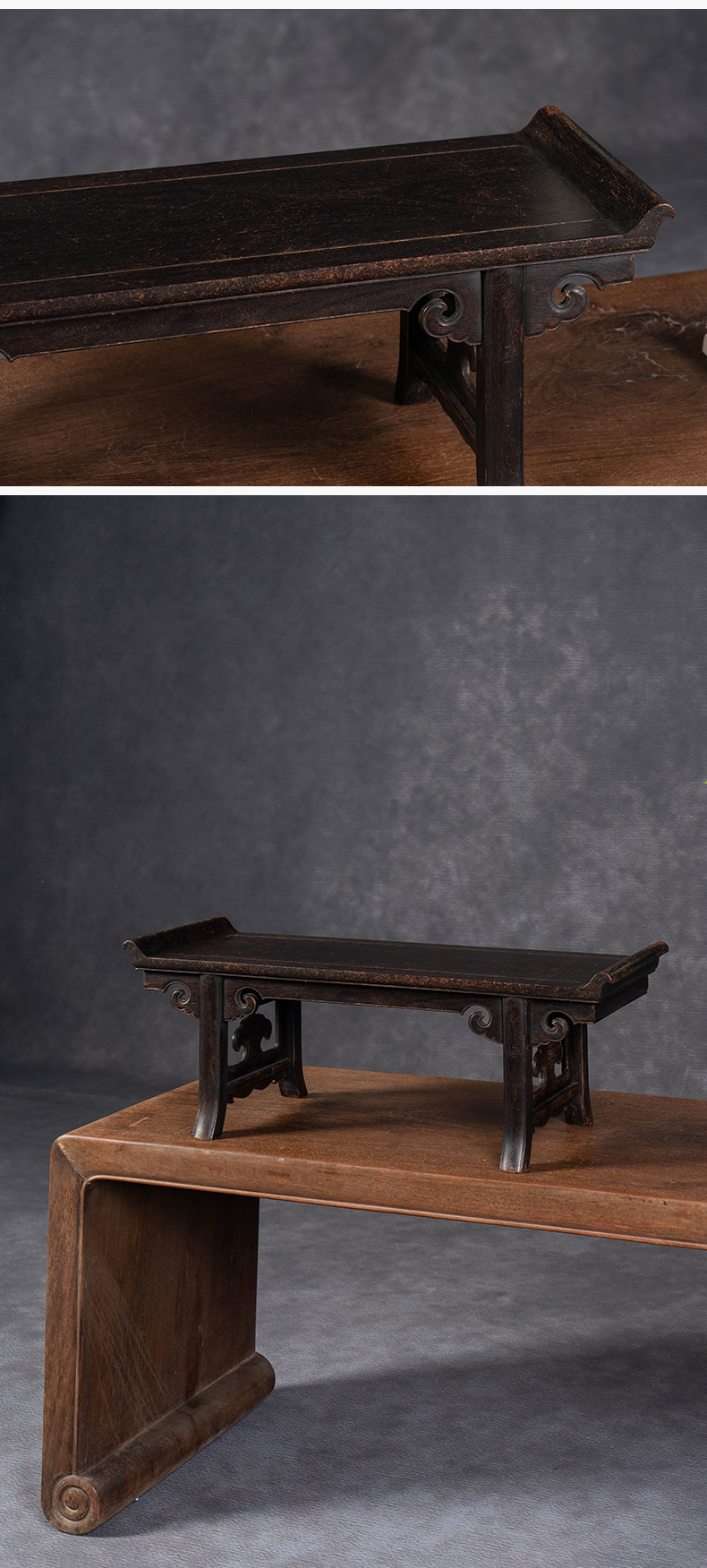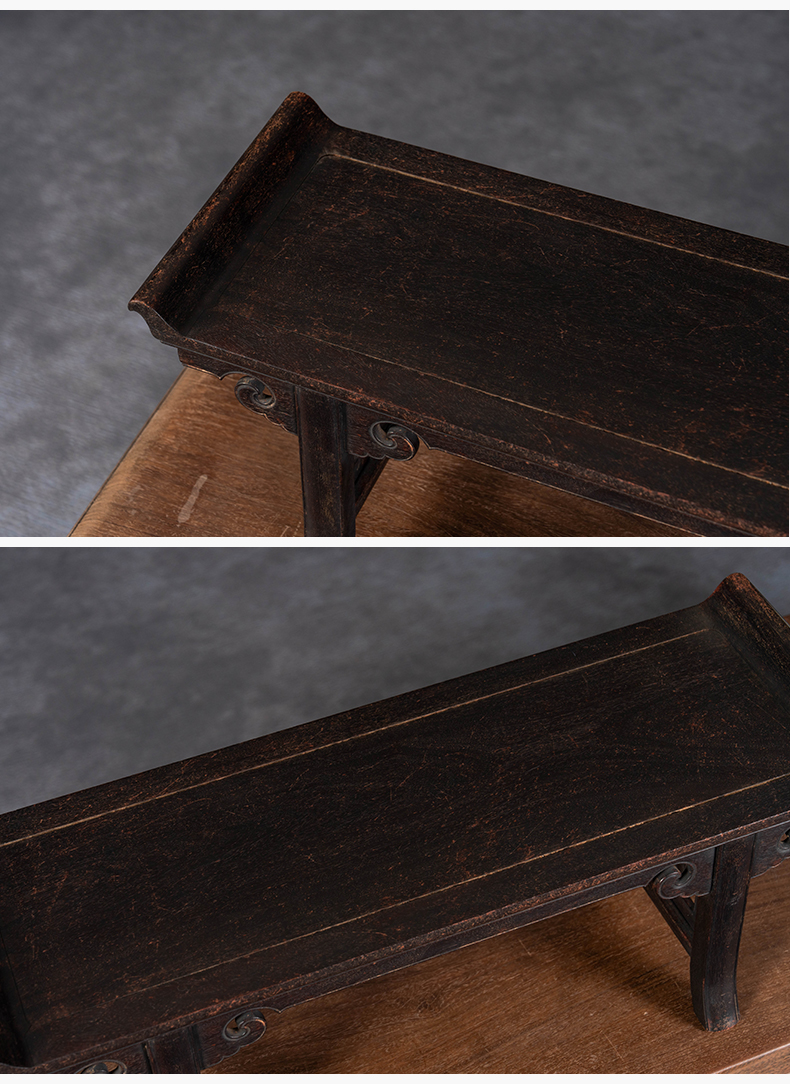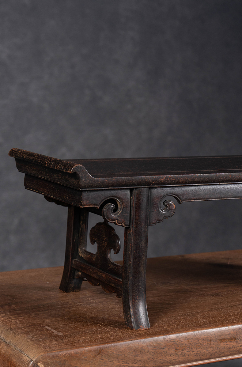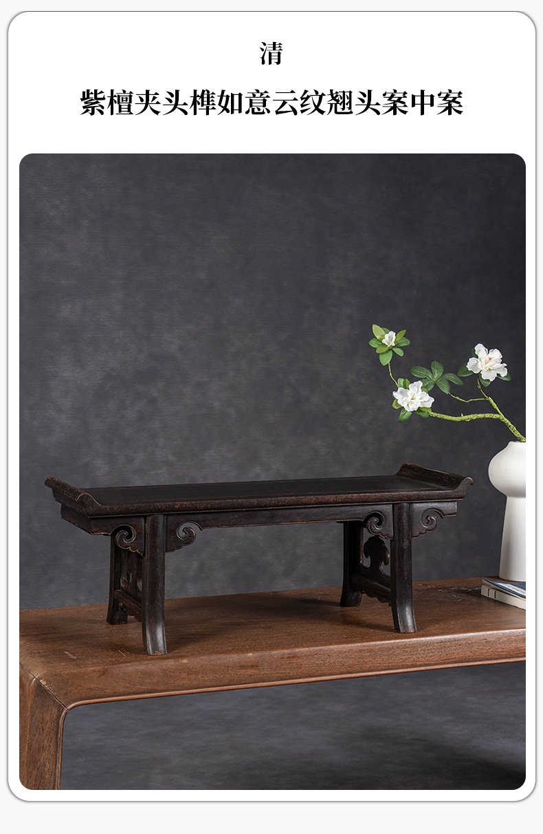 清 紫檀夹头榫如意云纹翘头案中案