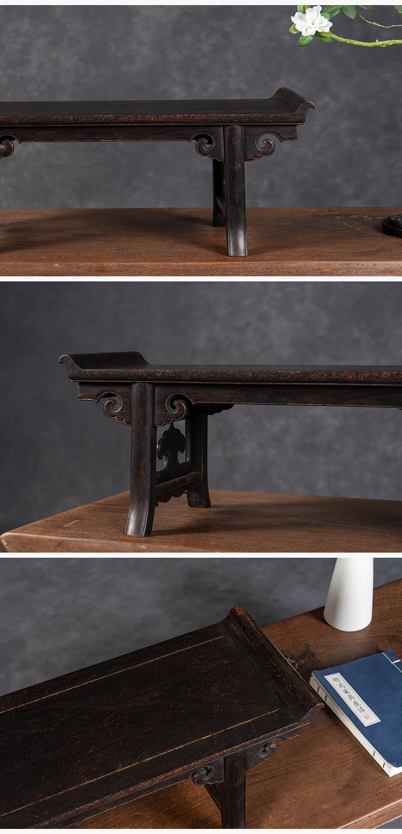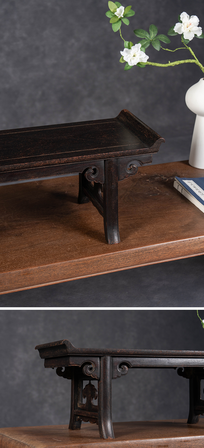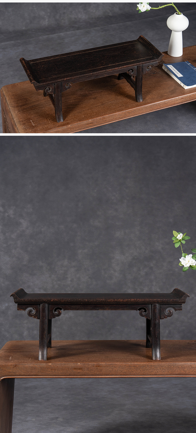 清 紫檀夹头榫如意云纹翘头案中案