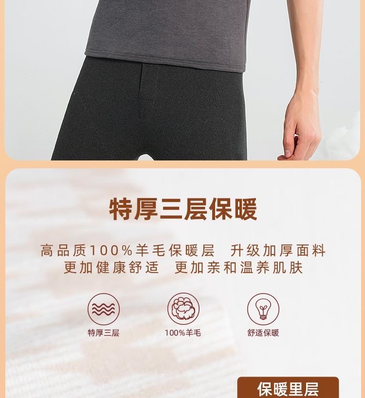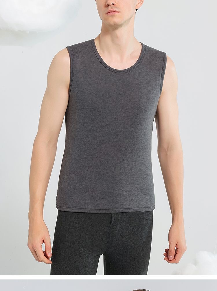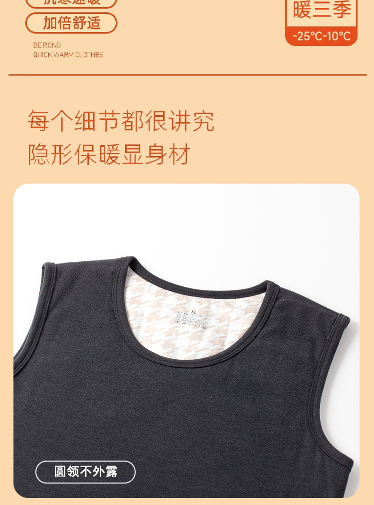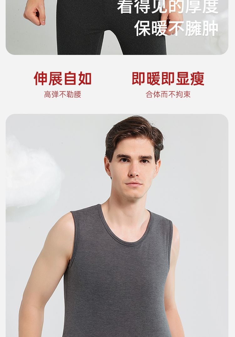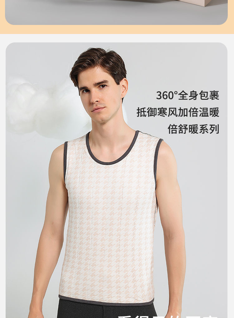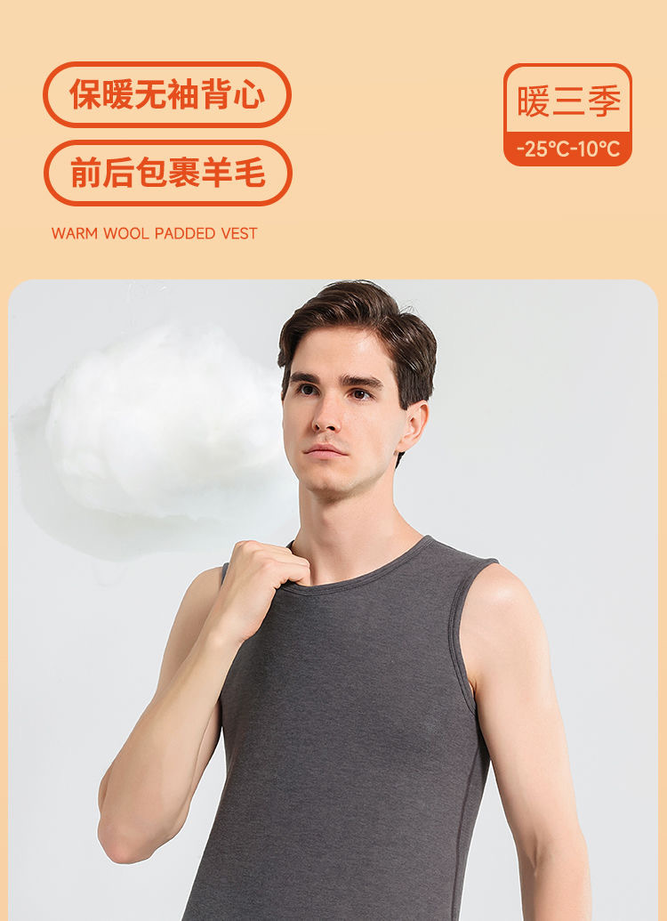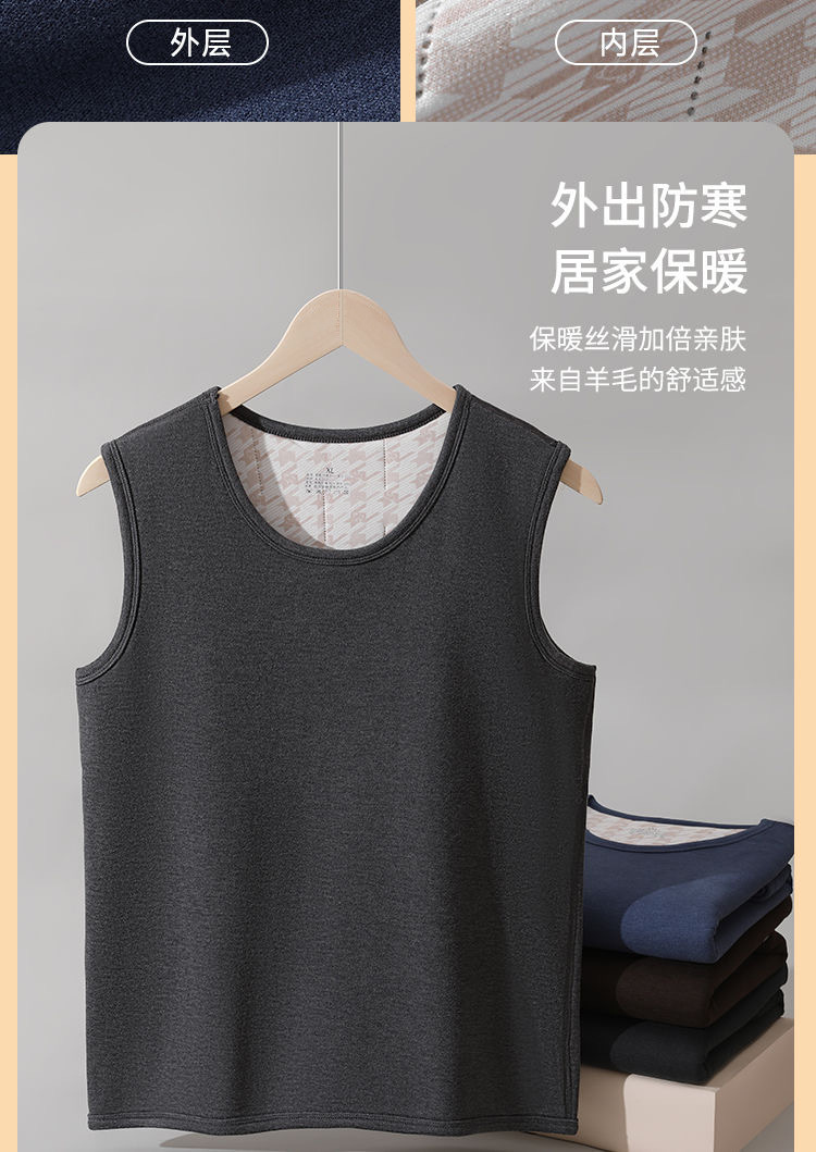 雀说【100%羊毛贴片】秋冬季保暖背心男防寒加绒加厚圆领打底上衣内衣AL2883