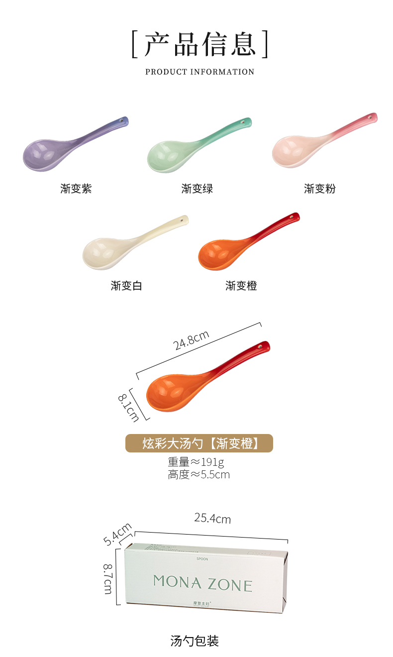 摩登主妇MONAZONE大汤勺陶瓷家用粥勺大号盛稀饭喝汤汤匙长柄勺子
