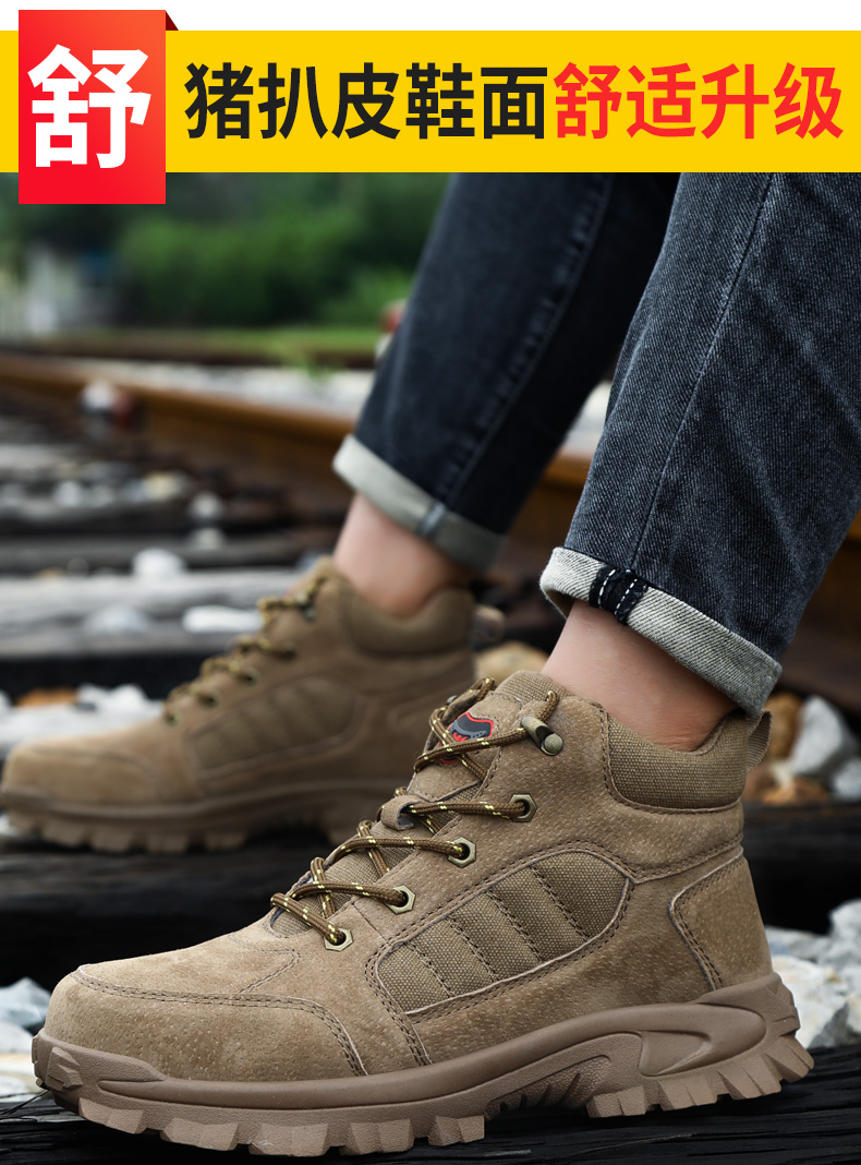 劳保鞋男防砸防刺防烫猪扒皮钢包头橡胶底安全鞋工作鞋