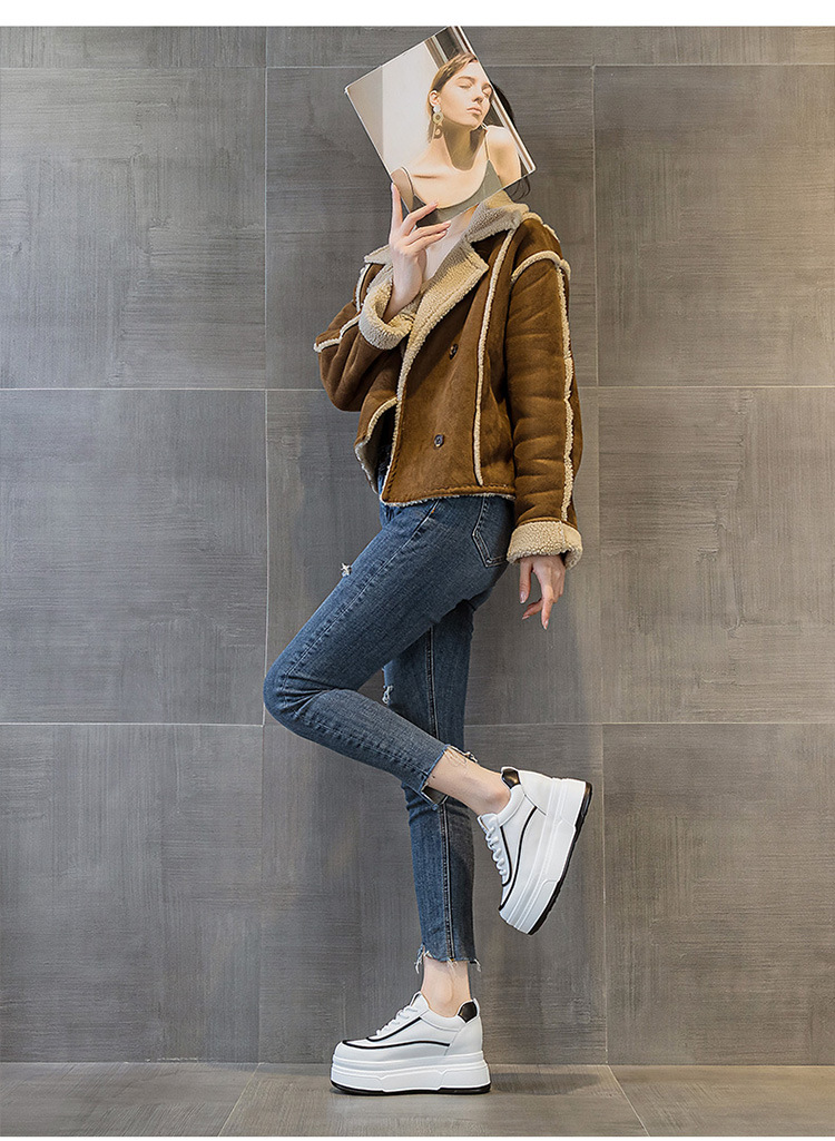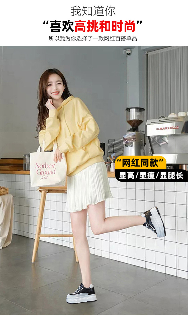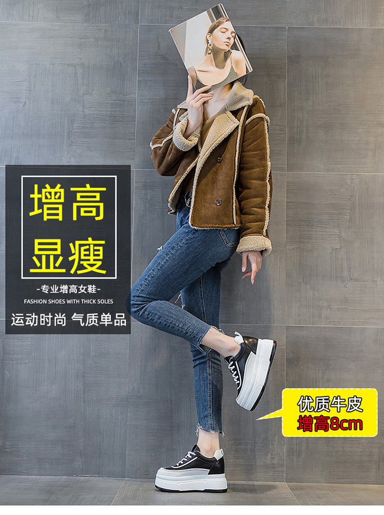 坡跟松糕厚底内增高小白鞋短靴加绒AM-527