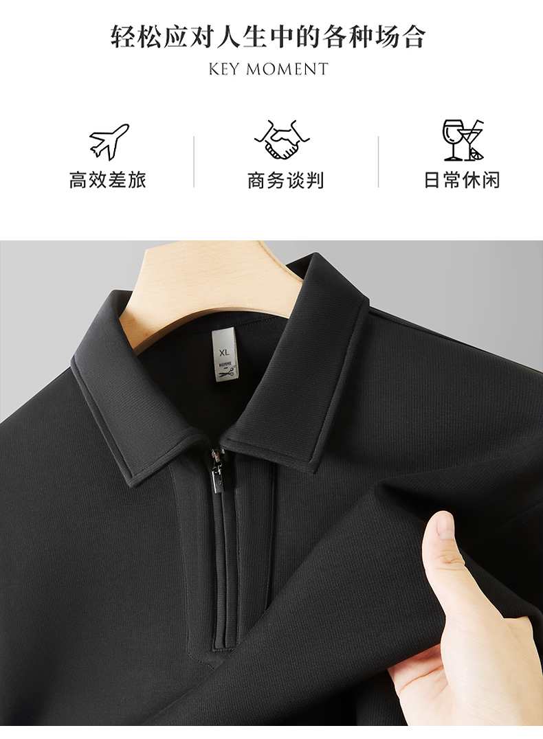 【DDP】大依优型大码男装长袖POLO衫半拉链翻领长袖卫衣棉质秋季休闲运动商务
