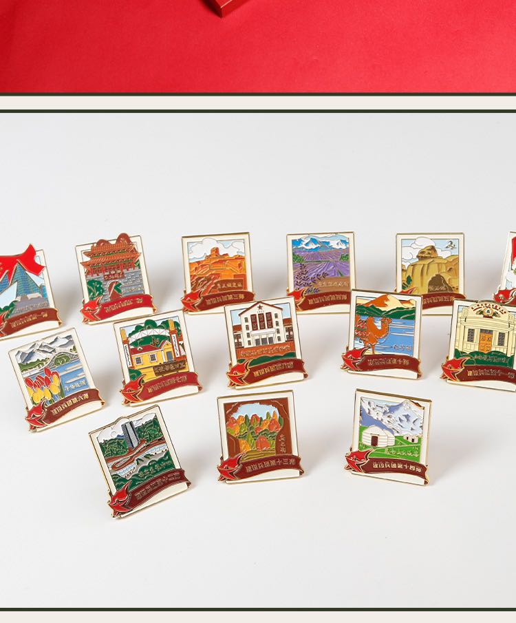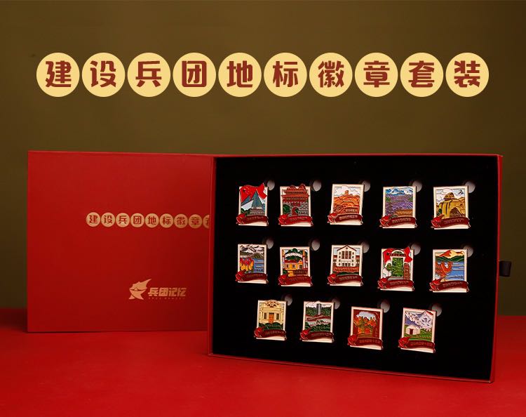 新疆生产建设兵团地表景点会长套装烤漆胸针配饰纪念品创意礼14枚