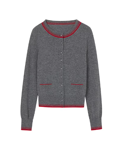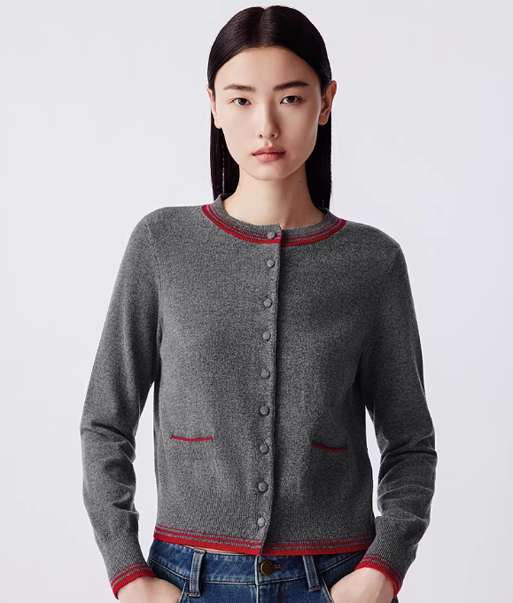 朗姿 【羊毛羊绒】撞色圆领针织开衫LAJH02KCD468